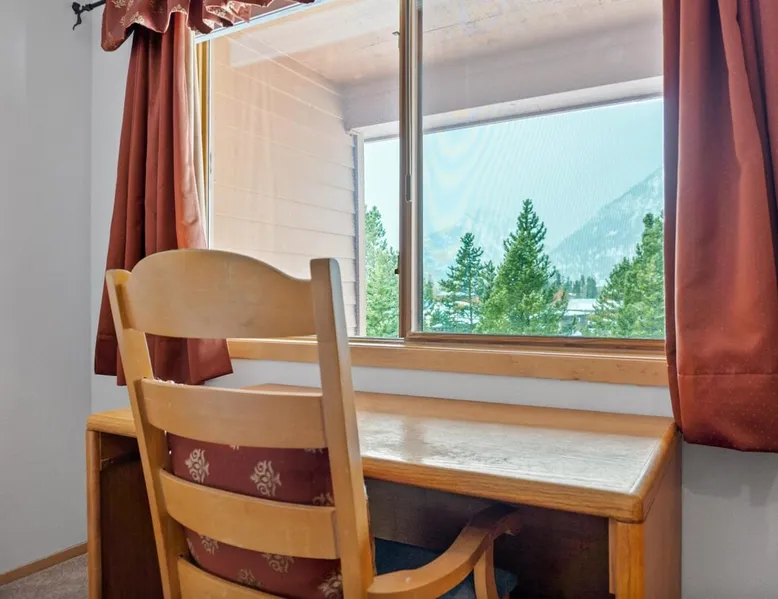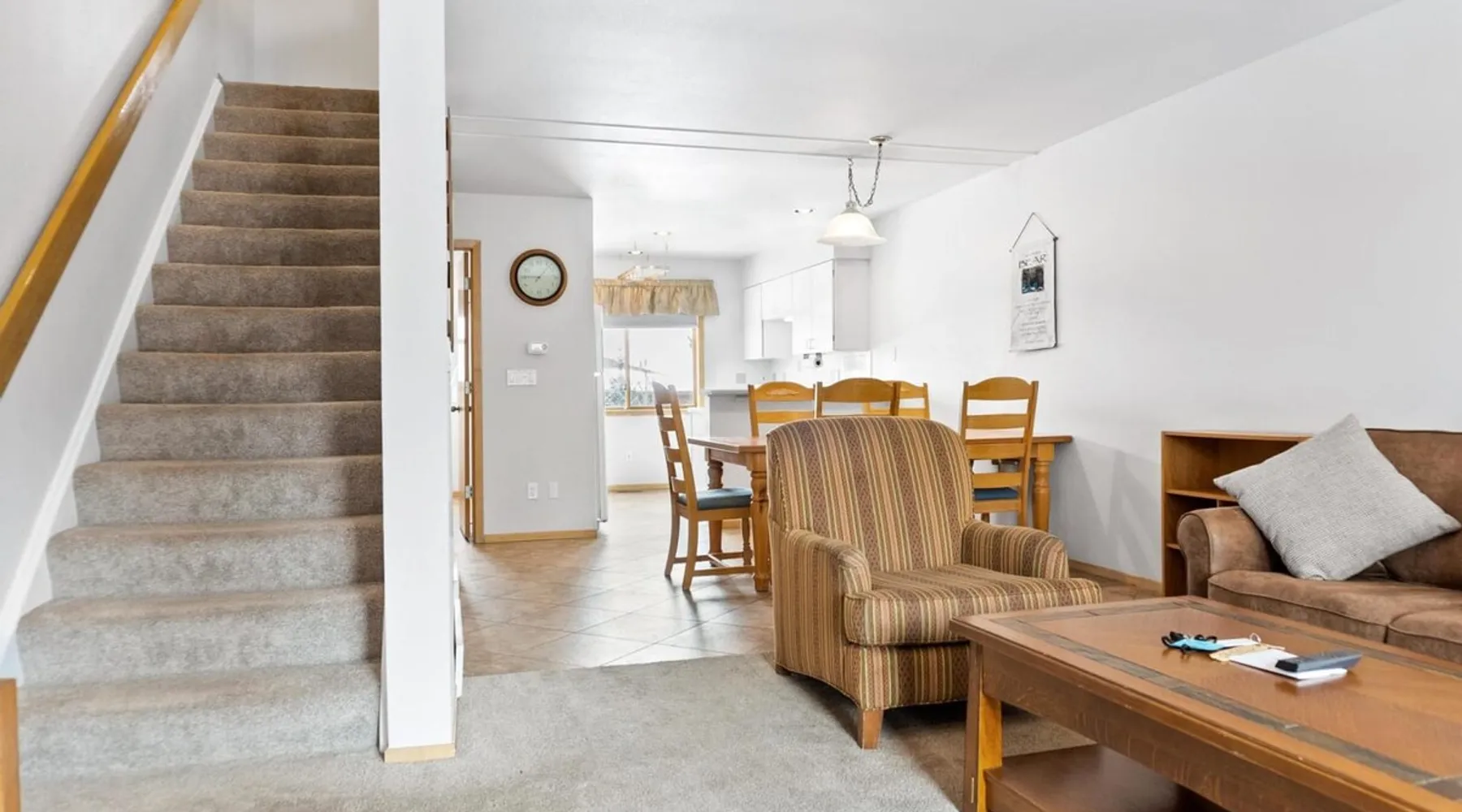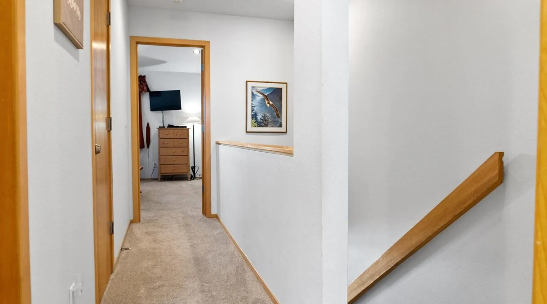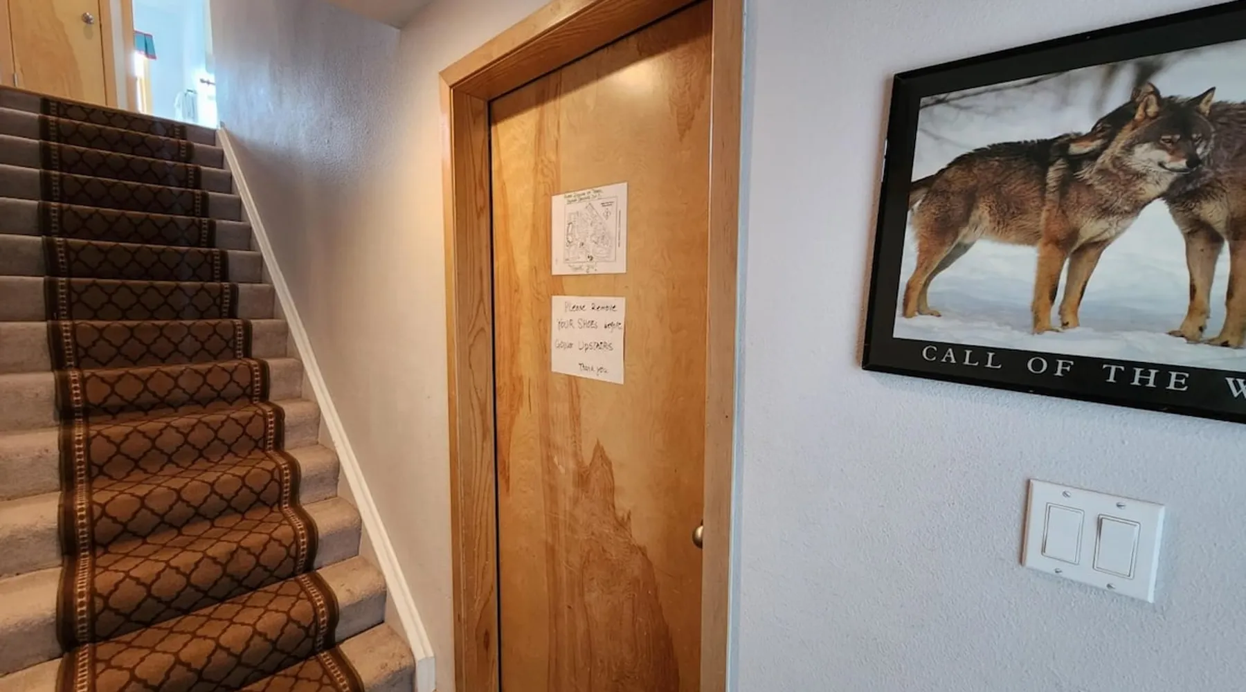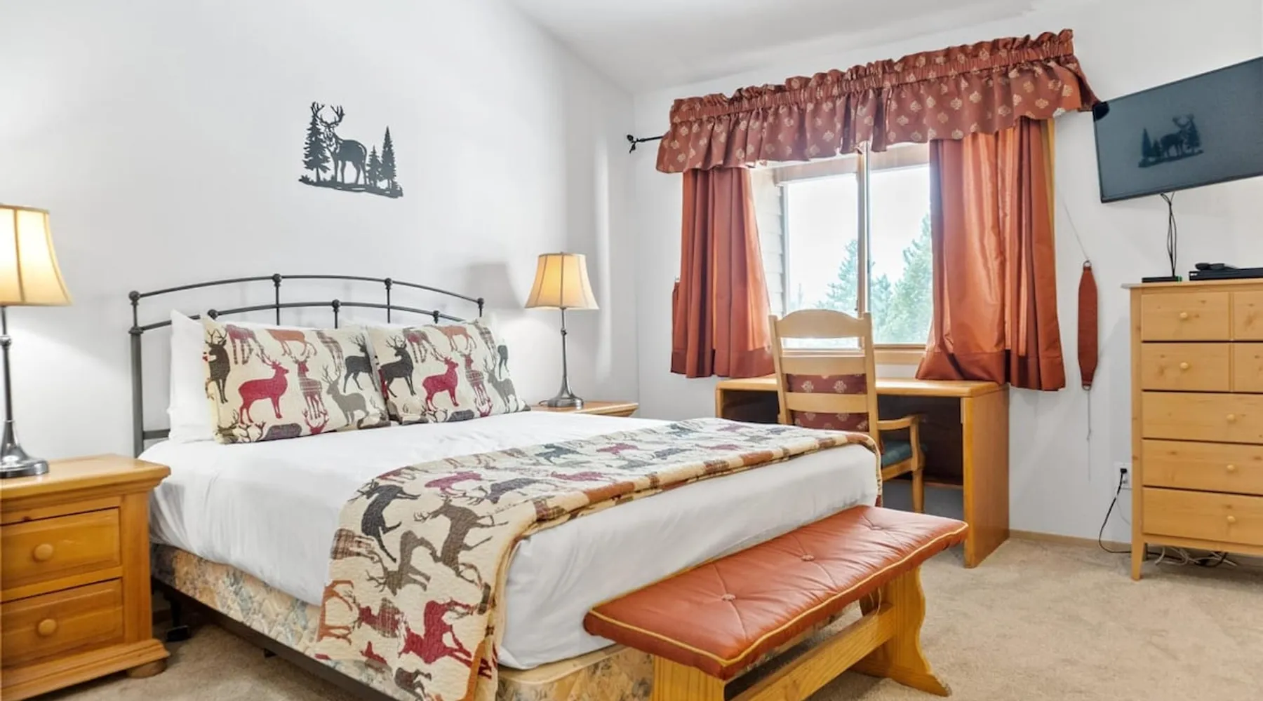 Year-round fun awaits at this cozy 2-bedroom condo in the charming mountain town of Frisco! Endless adventures are minutes away from this home with several parks, trailheads, and some of the best ski resorts just a short drive away! Return to your home away from home where you can relax in the spacious living area around the gas fireplace and enjoy the beautiful mountain views out on the private balcony. Or recharge in the shared pool and hot tub, perfect for sore muscles! The space As you step inside your peaceful mountain retreat you will come to the entryway you will find a bench to sit on while you unlace your hiking or snow boots and several coat hooks to store your winter parka. Once you have unloaded your outdoor gear head up the stairs where you will find the spacious living area. When you arrive on the second floor you will first come to a half bathroom with a stacked washer/dryer directly in front of the stairs. As you walk further into the space you will come to the charming light-filled open living room/kitchen/dining area with views on either side overlooking the surrounding trees. Head into the living room where you will find soft, carpeted floors, comfortable furniture, and a gas fireplace providing an inviting and cozy common area for relaxing. The living room is outfitted with two reading chairs and a cozy couch that doubles as a pull-out king bed. For added comfort, you will find a coffee table, a small side table and lamp, and a 42” TV with a DVD player perfect for movie nights. From the living room, you can step through the patio doors and out into the private balcony where you can take in the fresh mountain air and beautiful views of the surrounding trees and snowcapped mountains. Out on the patio, you will find two patio chairs and a propane BBQ so you can sit back and relax while you prepare dinner on the grill. Connecting the living room and kitchen is the dining area where you will find a large table with seating for six. From this space, you can enjoy the views from over the private balcony, or from the large window in the kitchen. There is no seat with a bad view from this table! On the other side of the dining room, you will find the well-laid-out kitchen. This light-filled space is flooded with natural light from the large window providing some tranquil views while you prepare your meal. The fully-equipped kitchen includes everything from a coffee maker to a crockpot making it convenient to put together your favorite comfort foods after a day of exploring. When you are ready to settle in for the night you will find two bedrooms and two bathrooms on the third floor of the condo. As you arrive on the landing you will find the guest bedroom to your left. This bright and cheery room has all you need for a peaceful night of rest with a comfortable full-size bed, a 20” TV, and a large window overlooking the surrounding trees and snow-capped mountains. Guests will have plenty of space to store their personal belongings with the large closet, dresser, and two nightstands. On the opposite end of the hallway, you will find the spacious master bedroom which provides a great separation of space between the two bedrooms. The master bedroom is equipped with a queen-size bed, two bedside tables with lamps, a large closet, a dresser, and a 32” TV. This room also features a desk and chair underneath the large window so you can get some remote work done while enjoying the beautiful views. The master bedroom has an attached bathroom where you will find a single-sink vanity with under-the-sink storage space and a shower/bathtub making it convenient to wash up before settling in for the night. A second bathroom is located between the two bedrooms and features a single-sink vanity, a mounted towel rack, and a tiled bathtub/shower combo. Guests in this home are also welcome to use the shared amenities such as the hot tub, pool, and fitness center. Permit # STR-010587 Guest access Guests will have access to the entire condo and two parking spaces in the shared parking lot across from the unit. Guests also have access to the shared amenities which include a hot tub, pool, and fitness center. Other things to note Please note that like most homes in the area, this home does not have A/C. Guests will not be provided access to the garage. 4-wheel drive or 2-wheel drive tires with snow chains may be necessary for safe travel to this property, even if it hasn’t snowed in a few days. Please note, the indoor pool and fitness center are available daily with set hours.