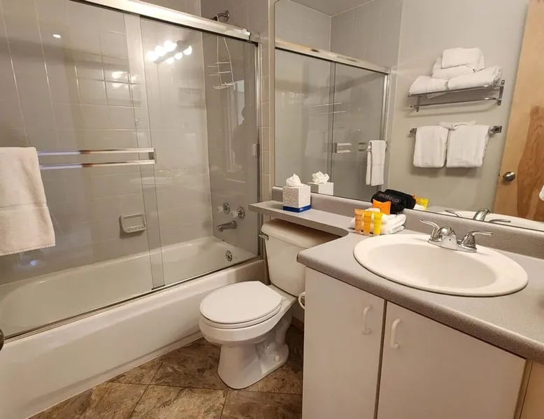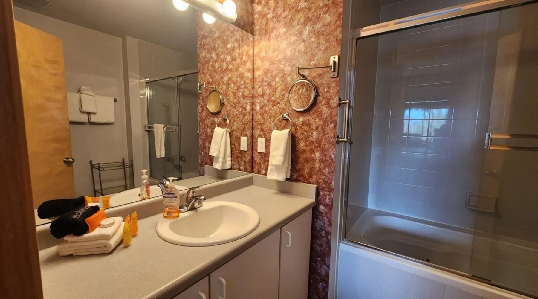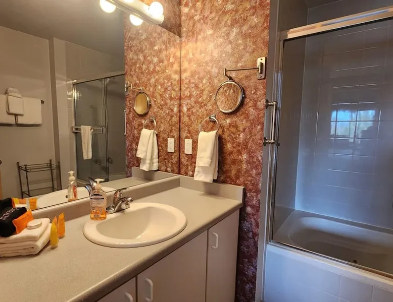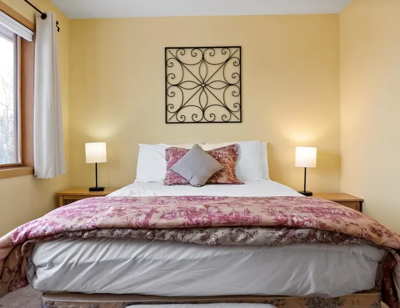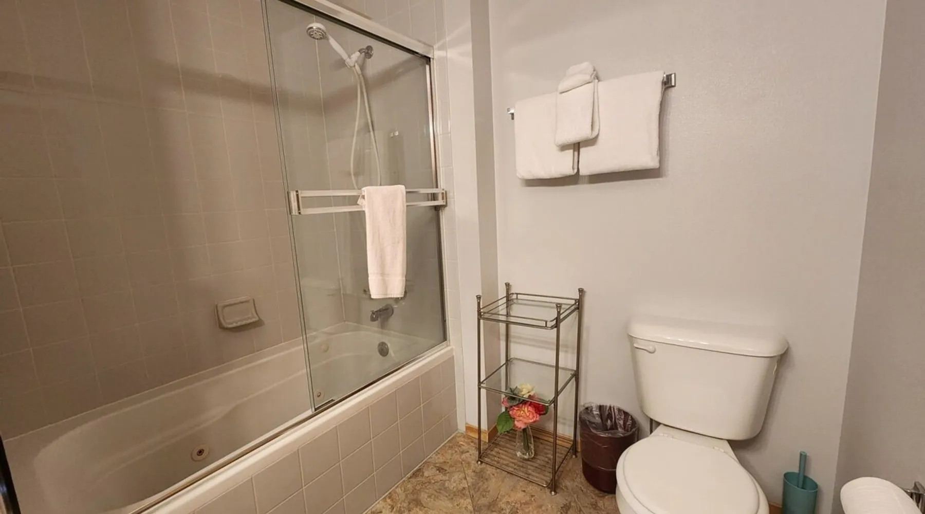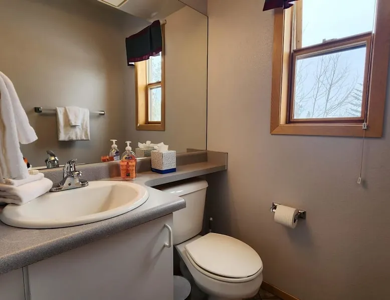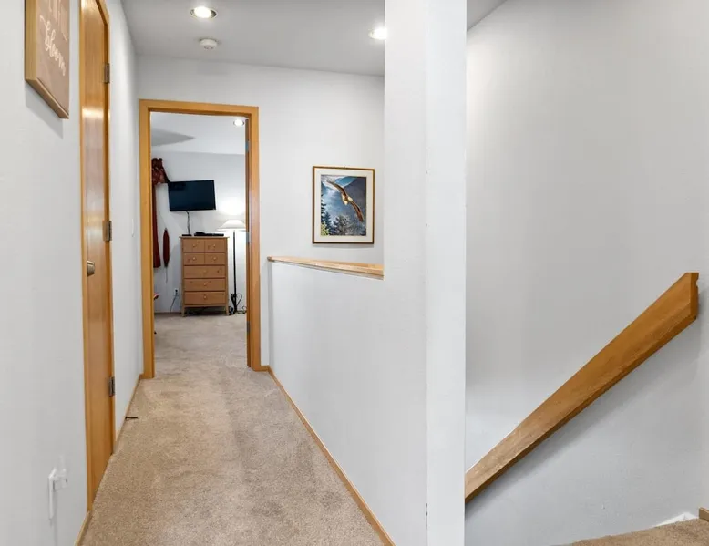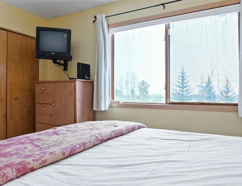 Year-round fun awaits at this cozy 2-bedroom condo in the charming mountain town of Frisco! Endless adventures are minutes away from this home with several parks, trailheads, and some of the best ski resorts just a short drive away! Return to your home away from home where you can relax in the spacious living area around the gas fireplace and enjoy the beautiful mountain views out on the private balcony. Or recharge in the shared pool and hot tub, perfect for sore muscles! The space As you step inside your peaceful mountain retreat you will come to the entryway you will find a bench to sit on while you unlace your hiking or snow boots and several coat hooks to store your winter parka. Once you have unloaded your outdoor gear head up the stairs where you will find the spacious living area. When you arrive on the second floor you will first come to a half bathroom with a stacked washer/dryer directly in front of the stairs. As you walk further into the space you will come to the charming light-filled open living room/kitchen/dining area with views on either side overlooking the surrounding trees. Head into the living room where you will find soft, carpeted floors, comfortable furniture, and a gas fireplace providing an inviting and cozy common area for relaxing. The living room is outfitted with two reading chairs and a cozy couch that doubles as a pull-out king bed. For added comfort, you will find a coffee table, a small side table and lamp, and a 42” TV with a DVD player perfect for movie nights. From the living room, you can step through the patio doors and out into the private balcony where you can take in the fresh mountain air and beautiful views of the surrounding trees and snowcapped mountains. Out on the patio, you will find two patio chairs and a propane BBQ so you can sit back and relax while you prepare dinner on the grill. Connecting the living room and kitchen is the dining area where you will find a large table with seating for six. From this space, you can enjoy the views from over the private balcony, or from the large window in the kitchen. There is no seat with a bad view from this table! On the other side of the dining room, you will find the well-laid-out kitchen. This light-filled space is flooded with natural light from the large window providing some tranquil views while you prepare your meal. The fully-equipped kitchen includes everything from a coffee maker to a crockpot making it convenient to put together your favorite comfort foods after a day of exploring. When you are ready to settle in for the night you will find two bedrooms and two bathrooms on the third floor of the condo. As you arrive on the landing you will find the guest bedroom to your left. This bright and cheery room has all you need for a peaceful night of rest with a comfortable full-size bed, a 20” TV, and a large window overlooking the surrounding trees and snow-capped mountains. Guests will have plenty of space to store their personal belongings with the large closet, dresser, and two nightstands. On the opposite end of the hallway, you will find the spacious master bedroom which provides a great separation of space between the two bedrooms. The master bedroom is equipped with a queen-size bed, two bedside tables with lamps, a large closet, a dresser, and a 32” TV. This room also features a desk and chair underneath the large window so you can get some remote work done while enjoying the beautiful views. The master bedroom has an attached bathroom where you will find a single-sink vanity with under-the-sink storage space and a shower/bathtub making it convenient to wash up before settling in for the night. A second bathroom is located between the two bedrooms and features a single-sink vanity, a mounted towel rack, and a tiled bathtub/shower combo. Guests in this home are also welcome to use the shared amenities such as the hot tub, pool, and fitness center. Permit # STR-010587 Guest access Guests will have access to the entire condo and two parking spaces in the shared parking lot across from the unit. Guests also have access to the shared amenities which include a hot tub, pool, and fitness center. Other things to note Please note that like most homes in the area, this home does not have A/C. Guests will not be provided access to the garage. 4-wheel drive or 2-wheel drive tires with snow chains may be necessary for safe travel to this property, even if it hasn’t snowed in a few days. Please note, the indoor pool and fitness center are available daily with set hours.