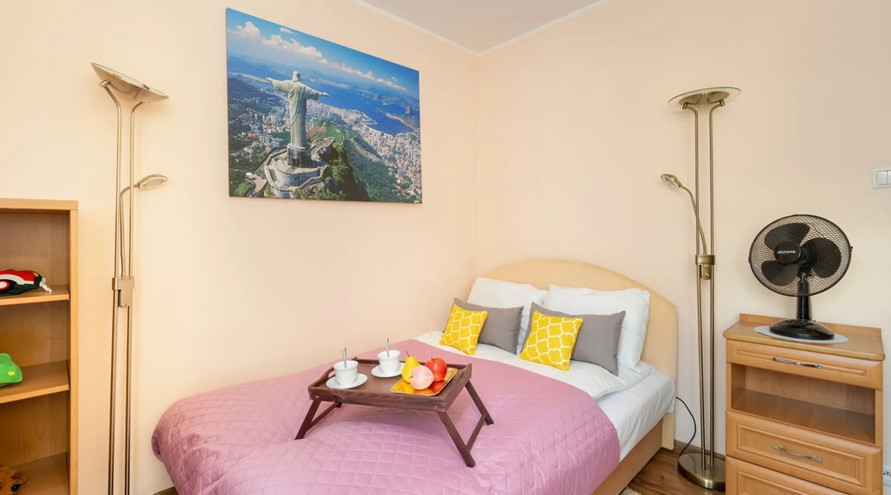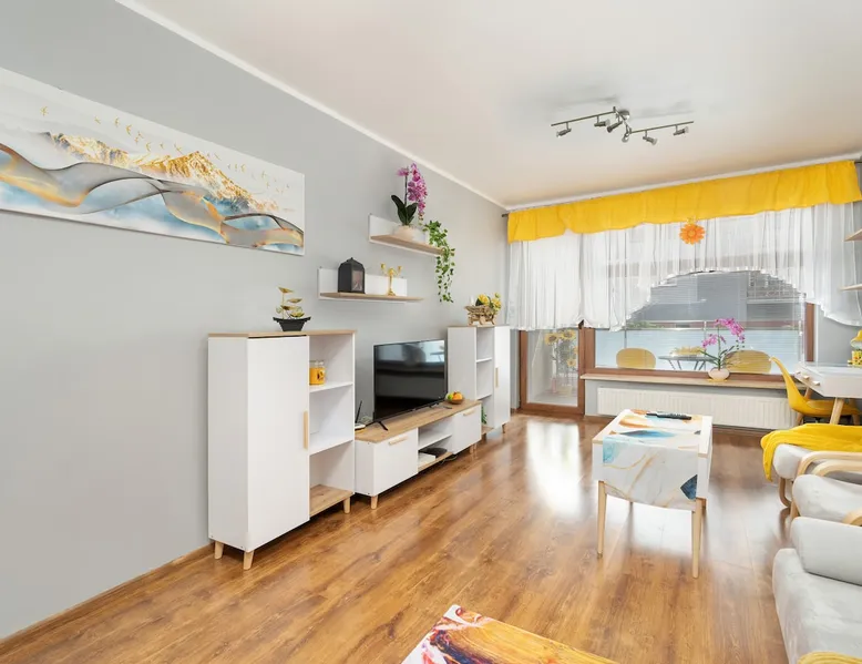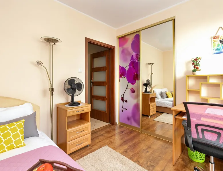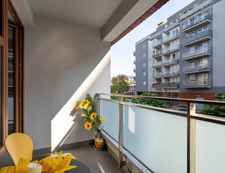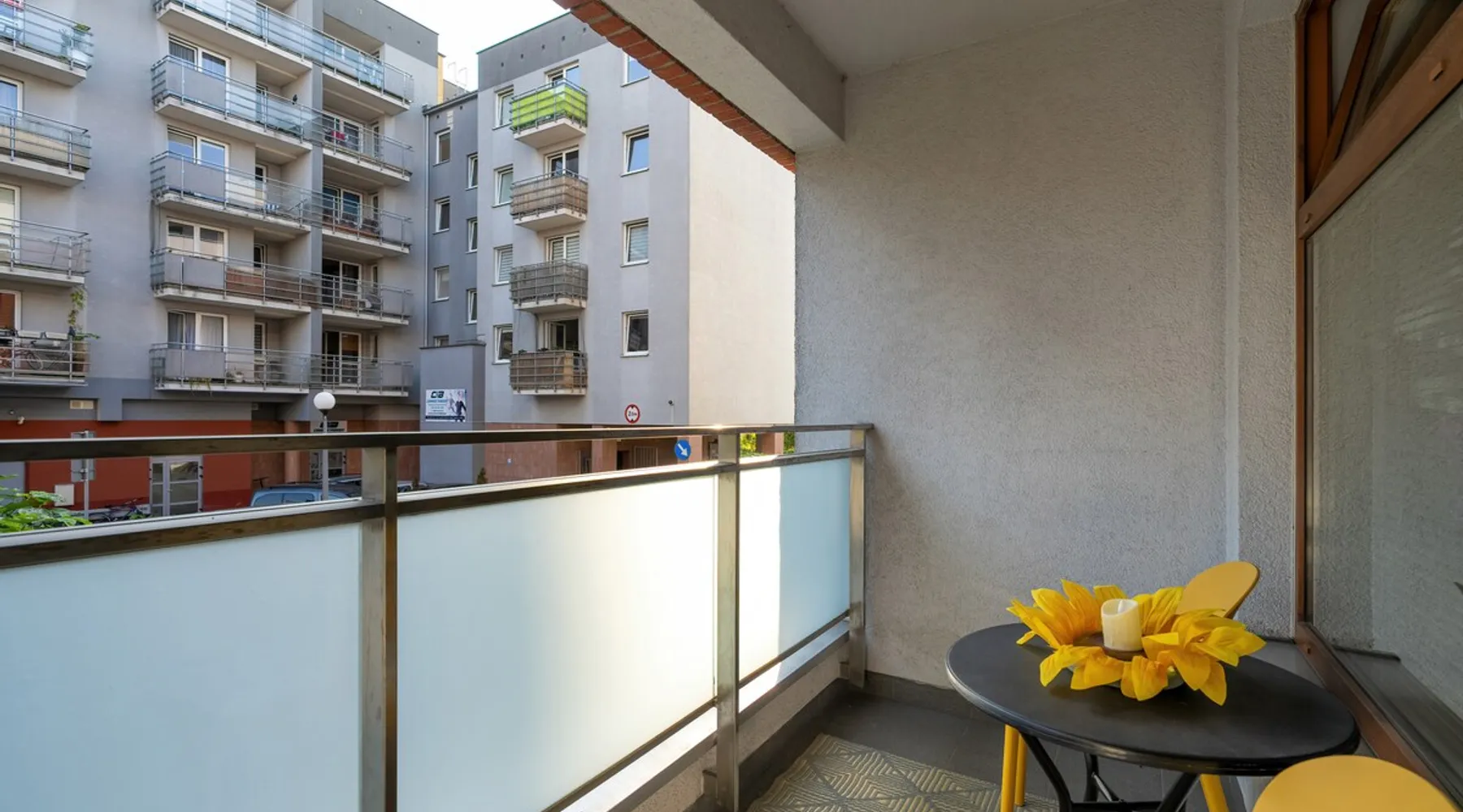 ✔ Apartment on Wojskowa street ✔ Balcony with garden furniture ✔ Parking space ✔ Pet friendly ✔ TV ✔ Area: 56.6m2 ✔ Cosmetics and towels for guests ✔ Express check-in and check-out ✔ Possibility to issue a VAT invoice for your stay (upon request) The space BUILDING AND NEIGHBORHOOD DESCRIPTION: The apartment is located in a thriving neighborhood, the place combines atmospheric tranquility with a modern, metropolitan character. Everyone will find here everything needed for a comfortable life in the urban space - active people will have at their fingertips the full range of entertainment and cultural offer of the city, and amateurs of lazy afternoons will find peace in the tranquility of green alleys or the Poznan Palm House. In the area there are numerous restaurants and cafes full of charm. APARTMENT DESCRIPTION: A unique apartment that can accommodate 4 people will be perfect for a family getaway. The layout includes a living room with a double sofa bed, a kitchen, a separate bedroom with a double bed and a bathroom with a bathtub, as well as a parking space in the underground garage. The space has a unique charm created by the bright decor. The apartment's coziness is complemented by a wide range of amenities that make guests feel right at home. A welcoming set of complimentary toiletries, towels and linens reduces the stress of packing before a vacation. The apartment also offers additional accommodation for children: parents traveling with small children will receive a crib and highchair upon request (fee 50 PLN/day). Pets are also accepted (fee 100 PLN/stay). LIVING ROOM: Fold-out sofa, set of bedding, TV, coffee table, armchairs, exit to balcony BEDROOM: Double bed, set of bedding, desk with chair, closet, bedside table BATHROOM: Washbasin, mirror, towels, hairdryer, toiletries set, bathtub, washing machine. KITCHEN: Cutlery and crockery set, gas hob, refrigerator, freezer, kitchen utensils, kettle, glasses, cups, pots, pan, wine glasses, dishwasher, microwave, oven, coffee maker, sandwich maker, multicooker, yogurt maker, dining table with chairs MULTIMEDIA: Wifi, Smart TV ANIMALS: Allowed. Additional fee applies. PARKING: Parking space in underground garage (max. height 2m.). Other things to note Optional services - Parking: Price: Included in the booking. - Cot/Crib: Price: PLN 50.00 per day. - Pet: Price: PLN 100.00 per booking.