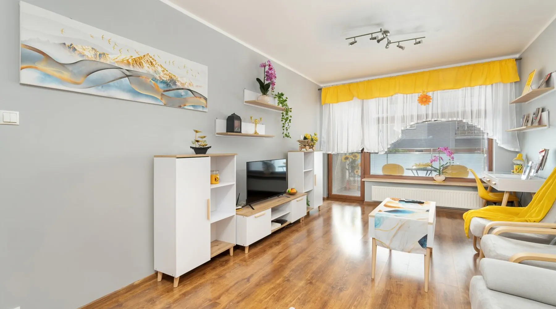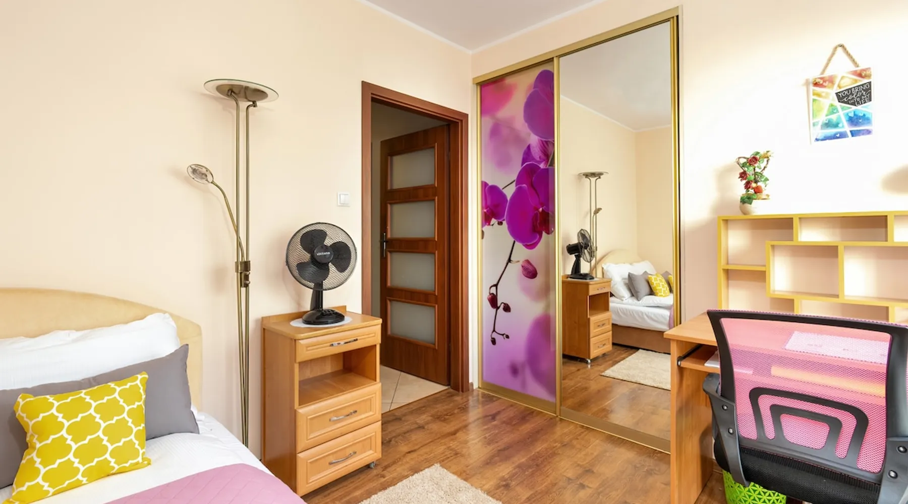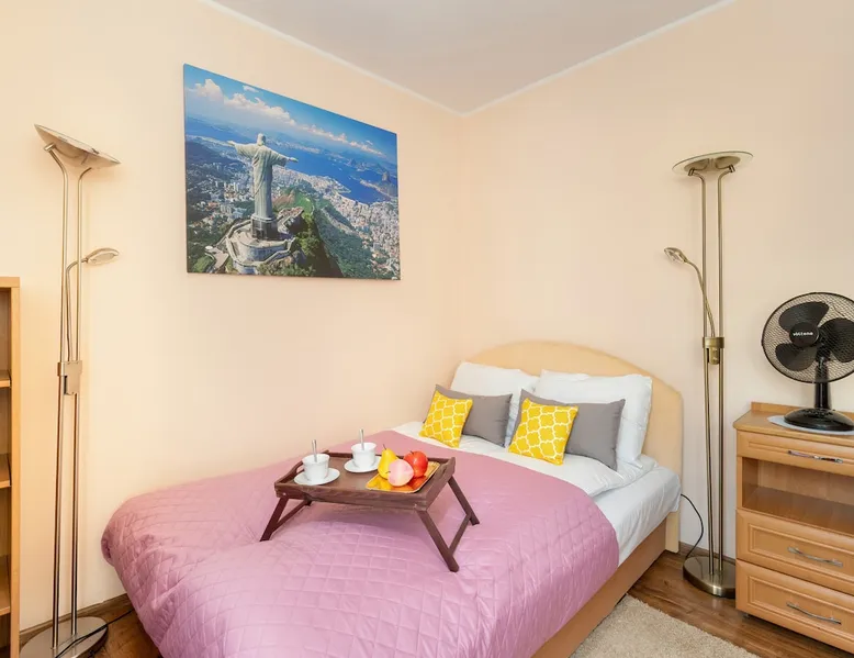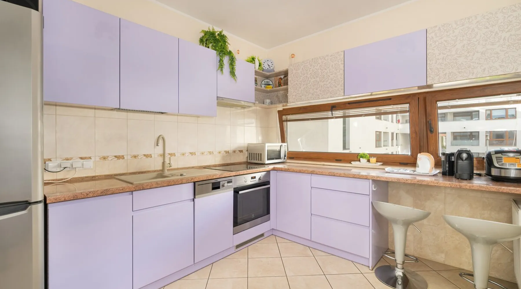 ✔ Apartment on Wojskowa street ✔ Balcony with garden furniture ✔ Parking space ✔ Pet friendly ✔ TV ✔ Area: 56.6m2 ✔ Cosmetics and towels for guests ✔ Express check-in and check-out ✔ Possibility to issue a VAT invoice for your stay (upon request) The space BUILDING AND NEIGHBORHOOD DESCRIPTION: The apartment is located in a thriving neighborhood, the place combines atmospheric tranquility with a modern, metropolitan character. Everyone will find here everything needed for a comfortable life in the urban space - active people will have at their fingertips the full range of entertainment and cultural offer of the city, and amateurs of lazy afternoons will find peace in the tranquility of green alleys or the Poznan Palm House. In the area there are numerous restaurants and cafes full of charm. APARTMENT DESCRIPTION: A unique apartment that can accommodate 4 people will be perfect for a family getaway. The layout includes a living room with a double sofa bed, a kitchen, a separate bedroom with a double bed and a bathroom with a bathtub, as well as a parking space in the underground garage. The space has a unique charm created by the bright decor. The apartment's coziness is complemented by a wide range of amenities that make guests feel right at home. A welcoming set of complimentary toiletries, towels and linens reduces the stress of packing before a vacation. The apartment also offers additional accommodation for children: parents traveling with small children will receive a crib and highchair upon request (fee 50 PLN/day). Pets are also accepted (fee 100 PLN/stay). LIVING ROOM: Fold-out sofa, set of bedding, TV, coffee table, armchairs, exit to balcony BEDROOM: Double bed, set of bedding, desk with chair, closet, bedside table BATHROOM: Washbasin, mirror, towels, hairdryer, toiletries set, bathtub, washing machine. KITCHEN: Cutlery and crockery set, gas hob, refrigerator, freezer, kitchen utensils, kettle, glasses, cups, pots, pan, wine glasses, dishwasher, microwave, oven, coffee maker, sandwich maker, multicooker, yogurt maker, dining table with chairs MULTIMEDIA: Wifi, Smart TV ANIMALS: Allowed. Additional fee applies. PARKING: Parking space in underground garage (max. height 2m.). Other things to note Optional services - Parking: Price: Included in the booking. - Cot/Crib: Price: PLN 50.00 per day. - Pet: Price: PLN 100.00 per booking.