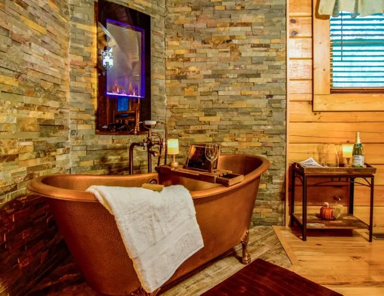 Comfortable Accommodations: Beary Cozy Cabin in Sevierville offers a holiday home with one bedroom and two bathrooms. The living room features a sofa bed and a fireplace, ensuring a cozy atmosphere. Wellness Facilities: Guests can enjoy spa facilities, a spa and wellness center, and massage services. The property also includes a restaurant, bar, and free WiFi, providing ample relaxation and entertainment options. Convenient Amenities: The holiday home offers air-conditioning, a fully equipped kitchen, and a private pool. Additional amenities include a washing machine, dishwasher, and free on-site parking. Local Attractions: Located 42 mi from McGhee Tyson Airport, the property is close to Dolly Parton's Stampede (5.6 mi), Dollywood (6.8 mi), and Ripley's Aquarium of the Smokies (8.7 mi). The private pool and fireplace are the standout features of this holiday home. Boasting a private entrance, this air-conditioned holiday home features 2 living rooms, 1 separate bedroom and 2 bathrooms with a bath and a shower. Guests will find a stovetop, a refrigerator, a dishwasher and kitchenware in the well-fitted kitchen. The holiday home also comes with a barbecue. Featuring outdoor furniture, this holiday home also features a washing machine, a tea and coffee maker and a flat-screen TV with cable channels. The unit has 3 beds.