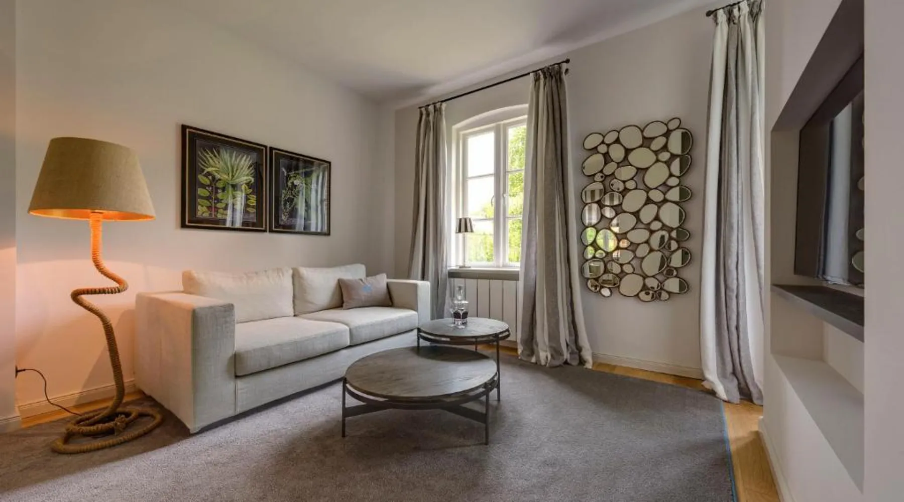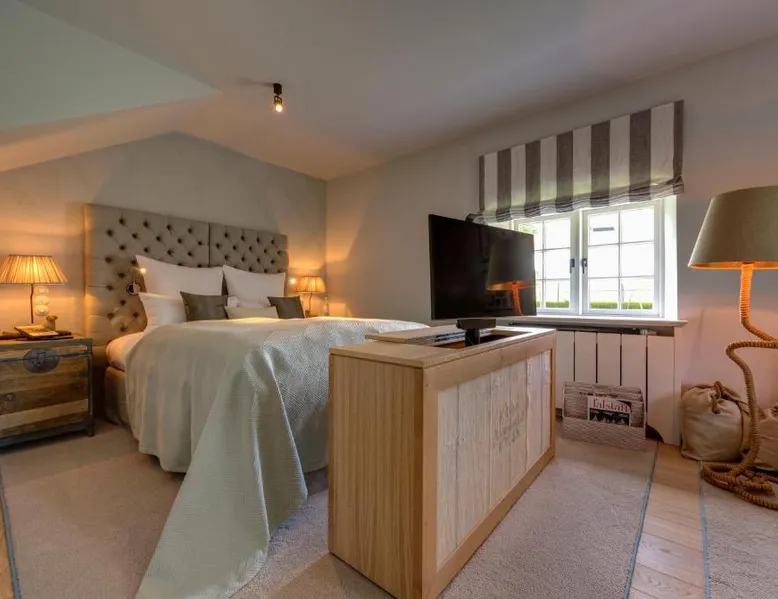 As a private nature luxury resort, WEISSENHAUS is a true retreat for the soul, offering a welcome escape from everyday life. A maximum of 120 adult guests aged 12 and above, primarily spa and culinary enthusiasts seeking relaxation, experience our hospitality in an impressive 75-hectare natural setting directly at the beach. A variety of living experiences await you in individually and carefully designed suites and rooms at Weissenhaus, each one absolutely unique, offering the ideal living comfort tailored to the needs of the guests. The private bathrooms are of course all equipped with complimentary toiletries and bathrobes, a hairdryer is of course provided as well. Guests also enjoy a complimentary mini-bar (refilled daily) as well as a selection of coffee and tea. In the heart of the resort, the castle, you will find a library, smokers lounge, billiard room, a mirror lounge with open fire place, a cinema as well as an elegant vaulted bar, where the restaurant ASIABAR is located. Enjoy an unforgettable dinner in the restaurant BOOTSHAUS, overlooking the Baltic Sea and enjoy unique sunsets over the water. At the natural beach and in the gardens, guests are offered free wicker beach chairs during the summer season. The Schlosstherme is set on 9843 ft² and includes a heated indoor & outdoor pool, hot saltwater whirlpool, Onsen Pool, sauna world with 6 different saunas, SoleWaldraum and fitness area. Guests may unwind completely with a wide choice of spa treatments (at an extra charge) or enjoy a healthy snack in the Vitalbar. An exquisite breakfast is served until 12:00 in the Kavaliershaus in various salons with a view of the castle grounds. Guests can explore romantic pathways over the linden tree-lined alley or the art workshop at the lake platform. at the castle lot as well as the Kunstatelier am Seesteg. Business and private events can also be hosted on site. This luxurious suite features a private pool, a hot tub and a sauna. Featuring a private entrance, this air-conditioned suite consists of 1 living room, 2 separate bedrooms and 2 bathrooms with a bath and a shower. Meals can be prepared in the kitchenette, which is equipped with a dishwasher, an oven and a microwave. The spacious suite provides a mini-bar, a tea and coffee maker, a seating area, a flat-screen TV with satellite channels, as well as garden views. The unit offers 2 beds.