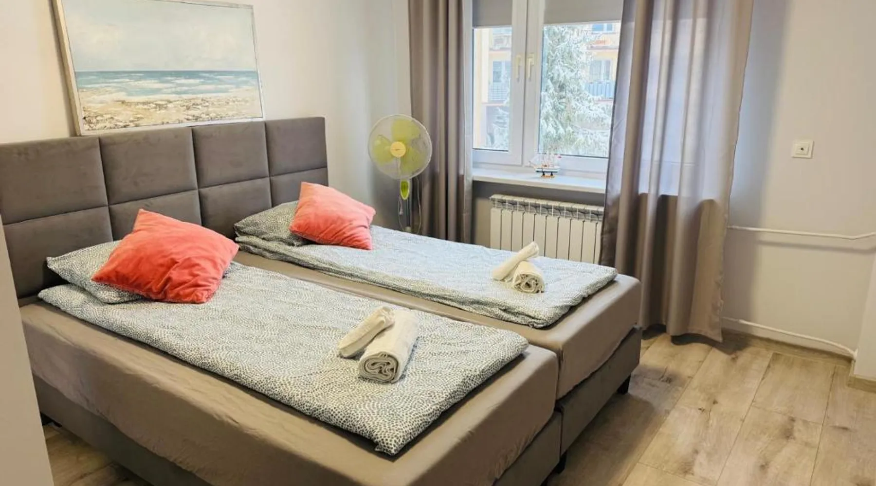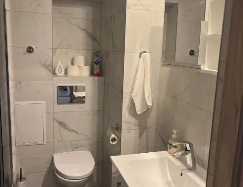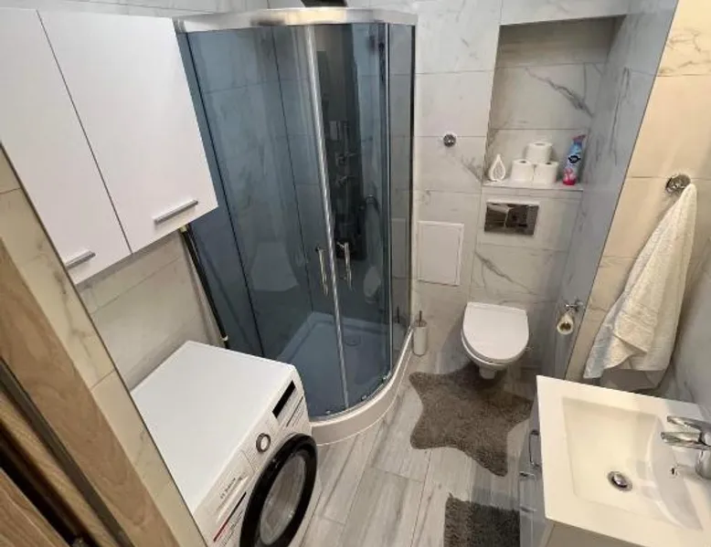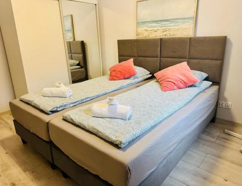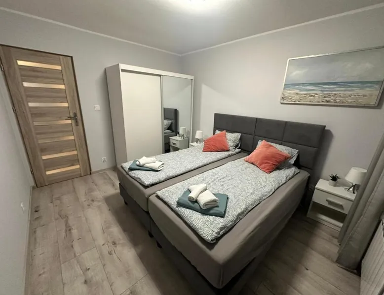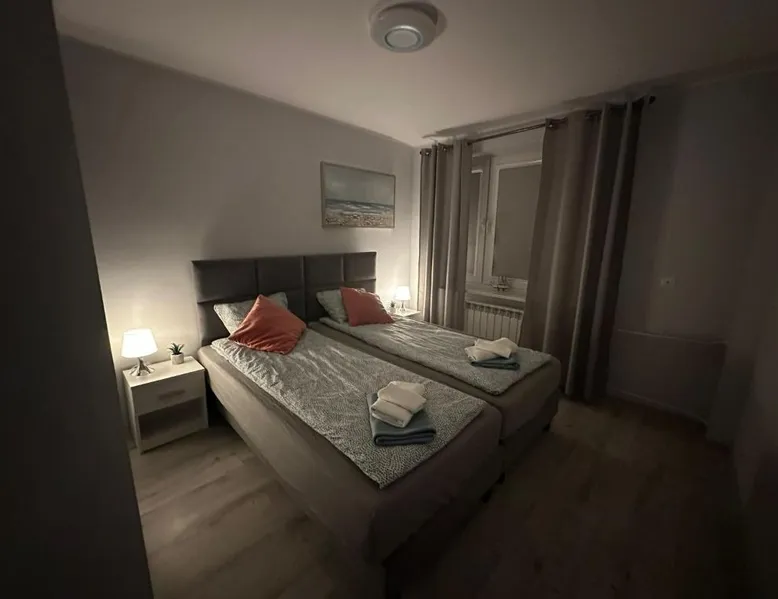 Comfortable Accommodations: Apartament Aspen in Polańczyk offers a two-bedroom apartment with a balcony and free WiFi. The property features family rooms and an outdoor play area, ensuring a pleasant stay for all guests. Modern Amenities: The apartment includes a fully equipped kitchen with a refrigerator, stovetop, and electric kettle. Additional amenities include a washing machine, dining area, sofa bed, and TV. Guests can enjoy lake and mountain views from the balcony. Convenient Location: Located 71 mi from Rzeszów-Jasionka Airport, the apartment is near attractions such as The Solina Dam (3.7 mi) and Bieszczady Forest Railway (19 mi). Boating is available in the surrounding area. Guest Satisfaction: Highly rated by guests for its nearby shops, scenic location, and room cleanliness. This apartment includes 2 bedrooms, a kitchen and 1 bathroom with a shower and a hairdryer. The fully equipped kitchen has a stovetop, a refrigerator, kitchenware and an electric kettle. Boasting a balcony with lake views, this apartment also offers a washing machine and a flat-screen TV. The unit has 2 beds.