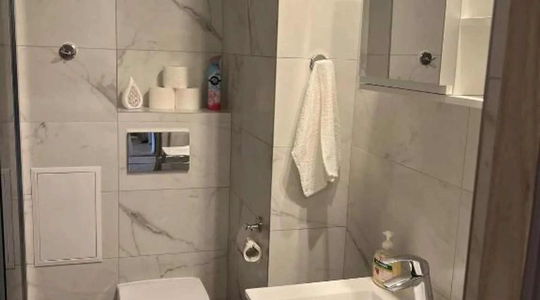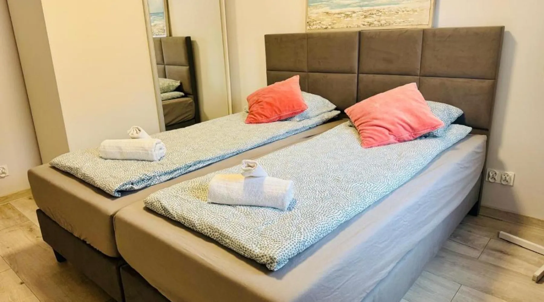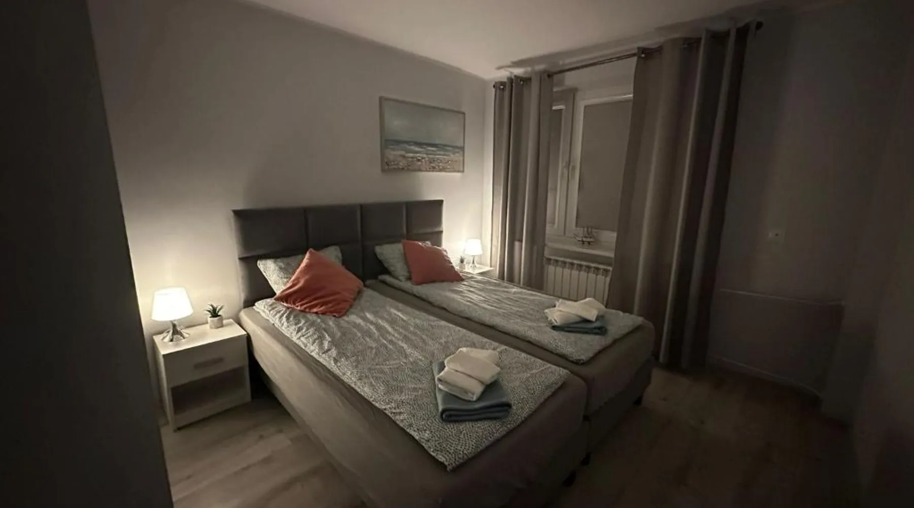Comfortable Accommodations: Apartament Aspen in Polańczyk offers a two-bedroom apartment with a balcony and free WiFi. The property features family rooms and an outdoor play area, ensuring a pleasant stay for all guests. Modern Amenities: The apartment includes a fully equipped kitchen with a refrigerator, stovetop, and electric kettle. Additional amenities include a washing machine, dining area, sofa bed, and TV. Guests can enjoy lake and mountain views from the balcony. Convenient Location: Located 71 mi from Rzeszów-Jasionka Airport, the apartment is near attractions such as The Solina Dam (3.7 mi) and Bieszczady Forest Railway (19 mi). Boating is available in the surrounding area. Guest Satisfaction: Highly rated by guests for its nearby shops, scenic location, and room cleanliness. This apartment includes 2 bedrooms, a kitchen and 1 bathroom with a shower and a hairdryer. The fully equipped kitchen has a stovetop, a refrigerator, kitchenware and an electric kettle. Boasting a balcony with lake views, this apartment also offers a washing machine and a flat-screen TV. The unit has 2 beds.