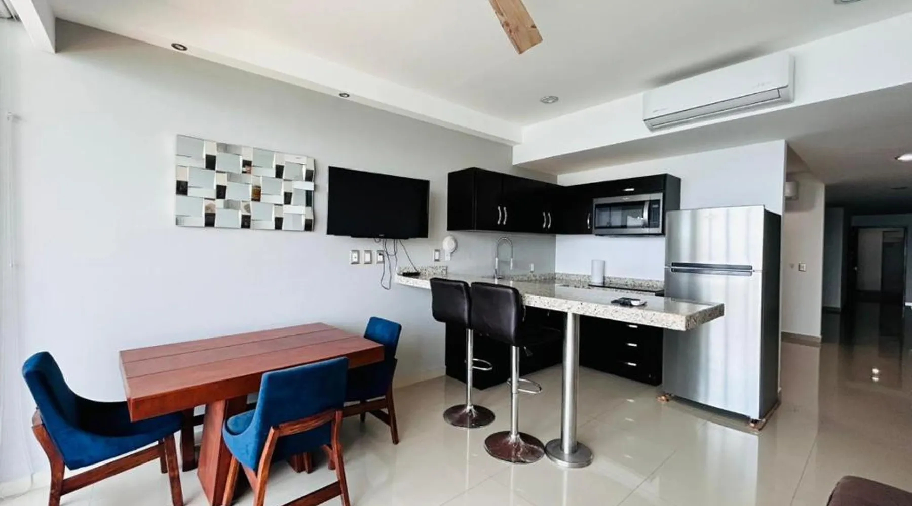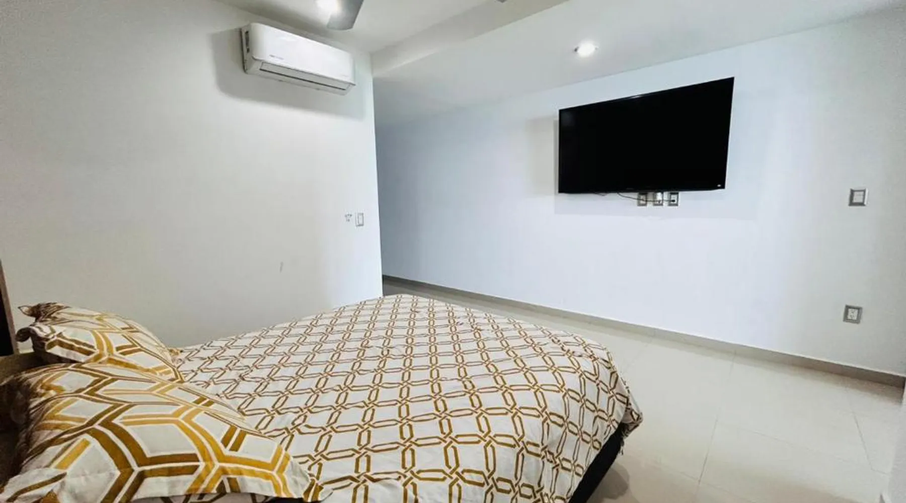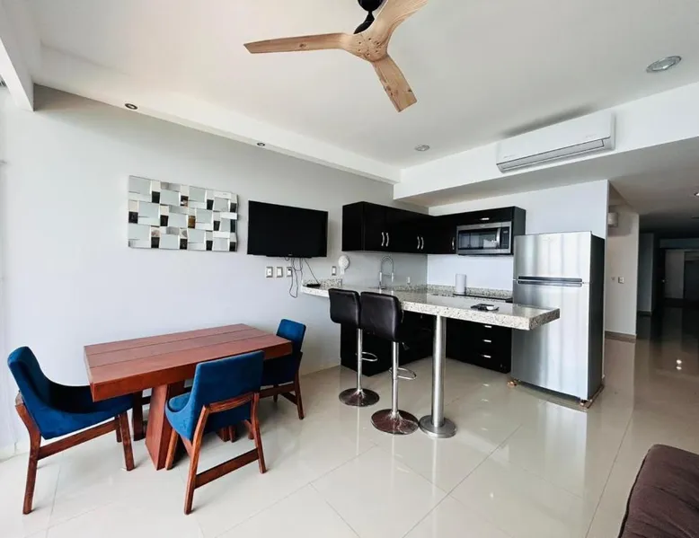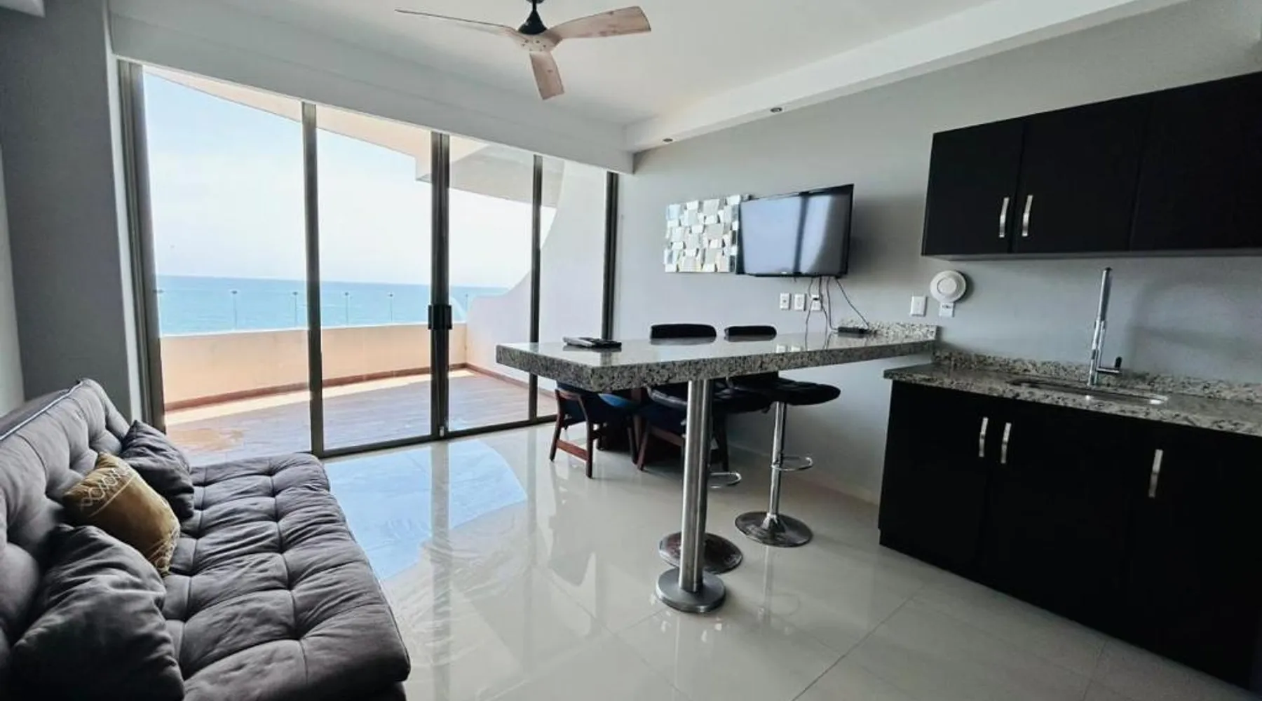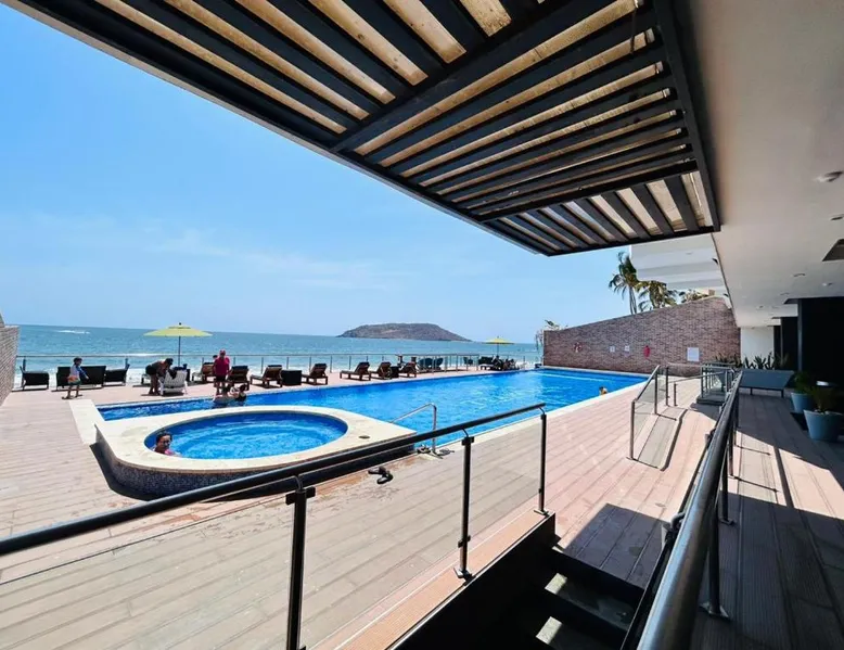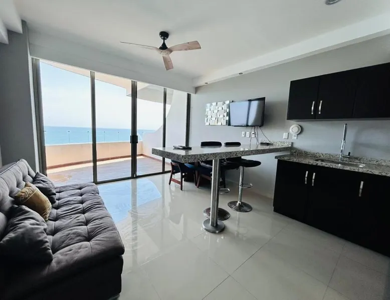 Beachfront Location: Depa Vista Al Atardecer y A Pie de Playa by G P S rentas in Mazatlán offers direct beachfront access and stunning sea views. Guests can relax on the sandy shores or take a dip in the year-round outdoor swimming pool. Comfortable Accommodations: The apartment features one bedroom and one bathroom, equipped with air-conditioning, a balcony, and a fully fitted kitchen. Additional amenities include a private pool, tea and coffee maker, refrigerator, microwave, TV, and stovetop. Convenient Facilities: Guests benefit from free WiFi, a elevator, and family rooms. Free private parking is available on-site, ensuring easy access to the property. Nearby Attractions: Camaron Beach is just a few steps away, while Plazuela Machado lies 4.3 mi and Mazatlan Lighthouse 6.8 mi from the apartment. General Rafael Buelna International Airport is 22 mi distant. The private pool is the special feature of this apartment. The air-conditioned apartment features 1 bedroom, 1 bathroom and a kitchen. Meals can be prepared in the kitchen, which comes with a stovetop, a refrigerator, a microwave and a tea and coffee maker. This apartment provides a flat-screen TV. The unit offers 1 bed.