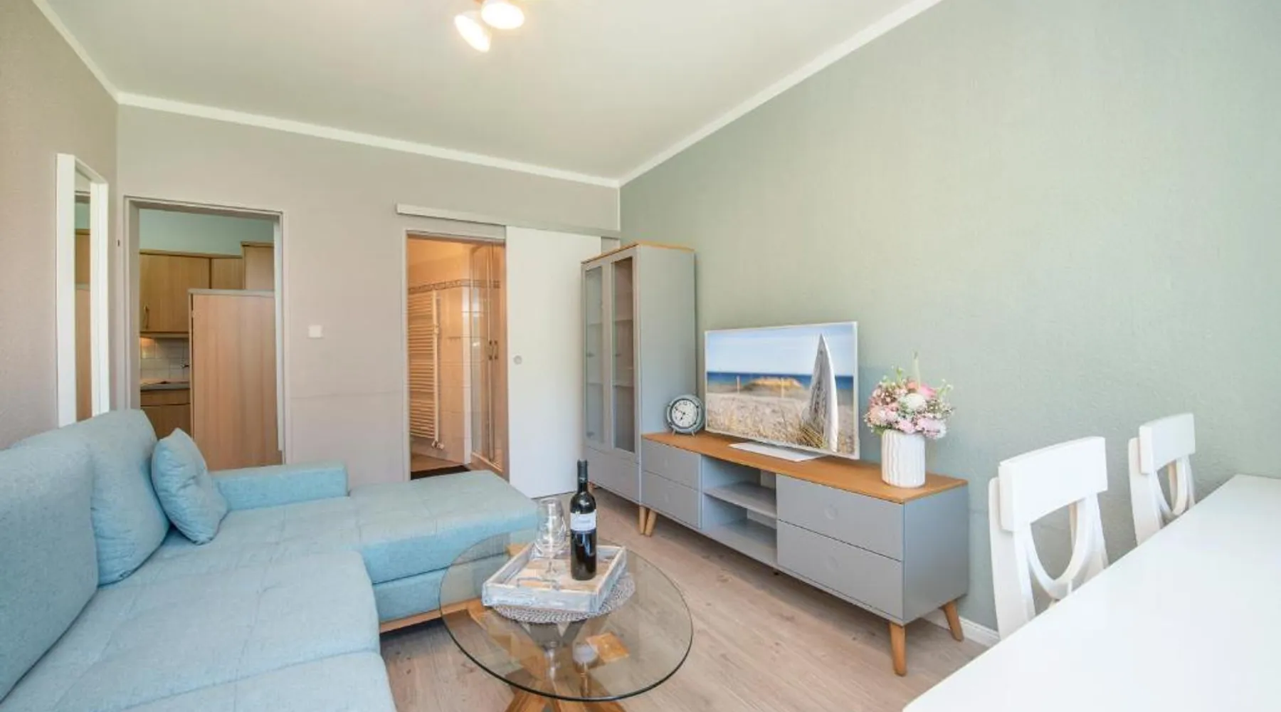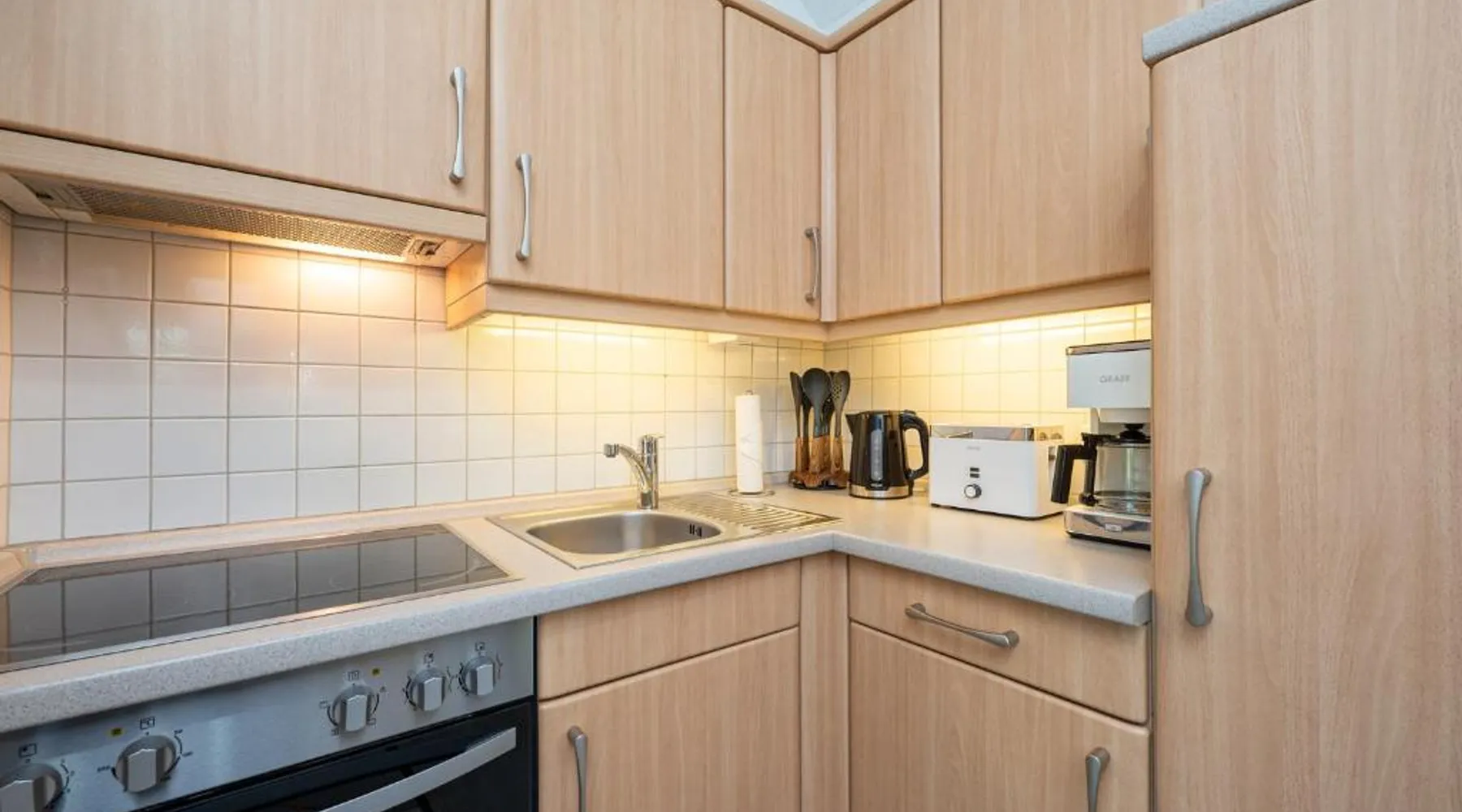 Beachfront and Garden: Schmidt in Fehmarn offers direct beachfront access and a lush garden. Guests can relax by the shore or enjoy the outdoor space with free WiFi available in public areas. Comfortable Living: The apartment features one bedroom and one bathroom, equipped with a kitchenette, kitchen, barbecue, and outdoor furniture. Additional amenities include a refrigerator, shower, electric kettle, oven, stovetop, and toaster. Convenient Location: Located 58 mi from Lübeck Airport, Schmidt is near attractions such as Fehmarn Sound Bridge (5 mi), Burgstaaken Harbor (1.4 mi), and Castle ruin Glambeck (2.2 mi). Boating opportunities are available in the surrounding area. This apartment comes with 1 bedroom, kitchen and 1 bathroom with a shower. Guests will find a stovetop, a refrigerator, an oven and a tea and coffee maker in the well-fitted kitchen. The apartment also includes a barbecue. Boasting outdoor furniture, this apartment also features heating and a TV. The unit has 1 bed.