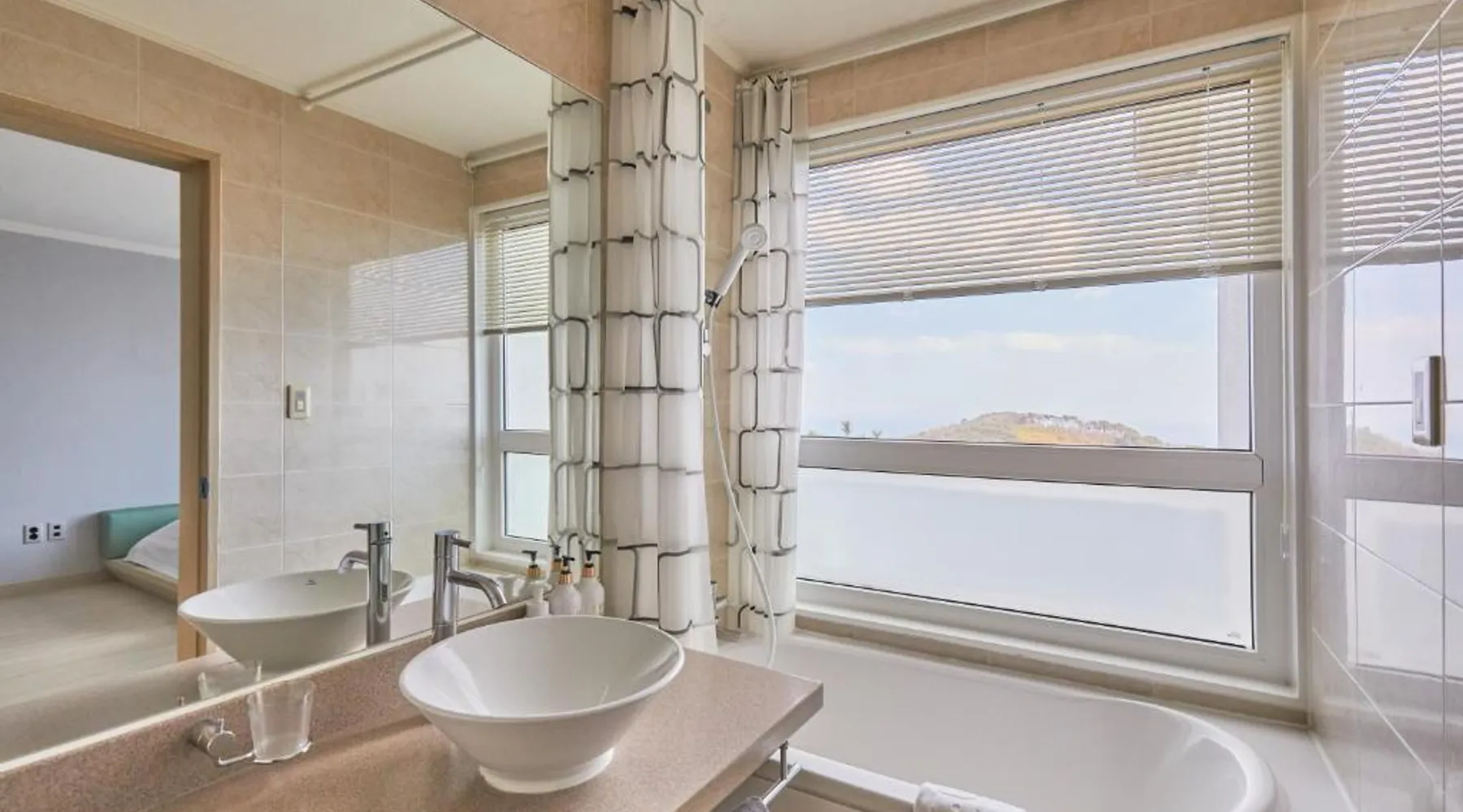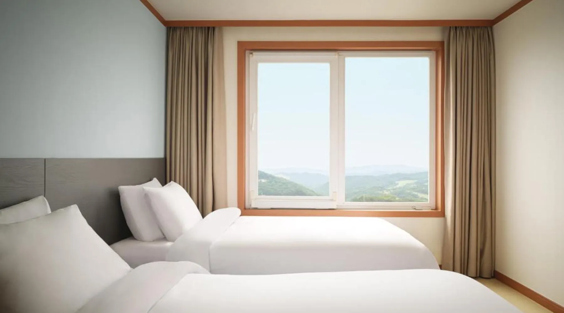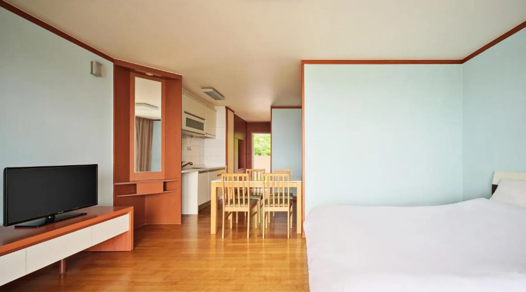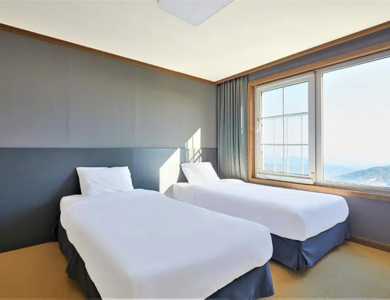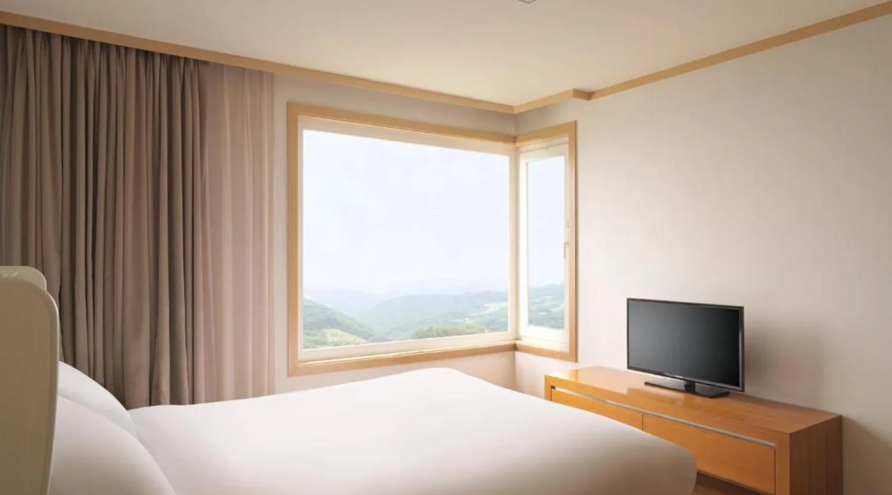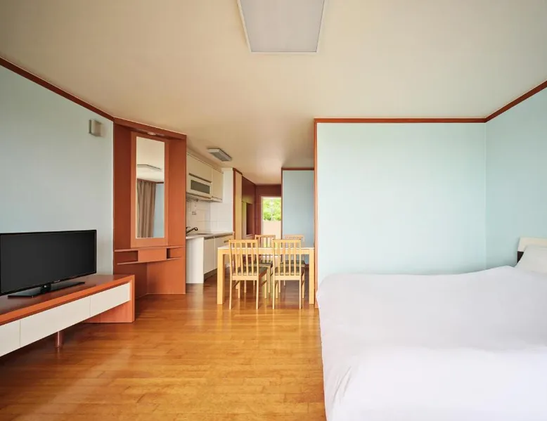 Located on a hill and surrounded by mountains, Mauna Ocean Resort features a spa, 27-hole golf course, golf driving range, and outdoor and indoor pools. The resort is under a 65-minute drive from Gyeongju Express Bus Terminal. The rooms are air conditioned and equipped with a TV, seating area and fully-equipped kitchen. The private bathroom comes with a shower and free toiletries. At Mauna Ocean Resort, there is a 24-hour front desk that provides luggage storage service. Other facilities at the property include meeting facilities and on-site shops. Free parking is also available. Bulguksa Temple and Toham Mountain are both a 45-minute drive away, while Bomun Tourist Complex is a 55-minute drive away from Mauna Ocean Resort. In the kitchen, guests will find a stovetop, a refrigerator, kitchenware and a microwave. The spacious double room features air conditioning, a seating area, a terrace with mountain views as well as a private bathroom boasting a shower. The unit has 2 futons.