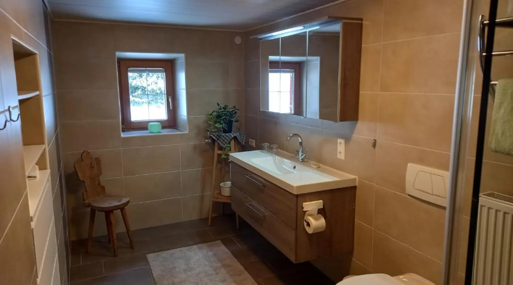Spacious Accommodations: Fewo M & M in Scharnitz offers a spacious apartment with two bedrooms and a living room. The ground-floor unit features a terrace and garden views, complemented by a sun terrace and a private entrance. Modern Amenities: Guests enjoy free WiFi, a fully equipped kitchen with a kitchenette, and a dining area. Additional facilities include a minimarket, coffee shop, outdoor seating area, bicycle parking, and ski storage. Convenient Location: Located 16 mi from Innsbruck Airport, the apartment is near winter sports activities such as skiing, hiking, and cycling. Nearby attractions include the Richard Strauss Institute and Garmisch-Partenkirchen Station, each 14 mi away. Featuring a private entrance, this spacious apartment also consists of 1 living room, 2 separate bedrooms and 1 bathroom with a walk-in shower. Meals can be prepared in the well-fitted kitchen, which is equipped with a stovetop, a refrigerator, a dishwasher and kitchenware. Boasting a terrace with garden views, this apartment also provides soundproof walls and a flat-screen TV with satellite channels. The unit offers 3 beds.