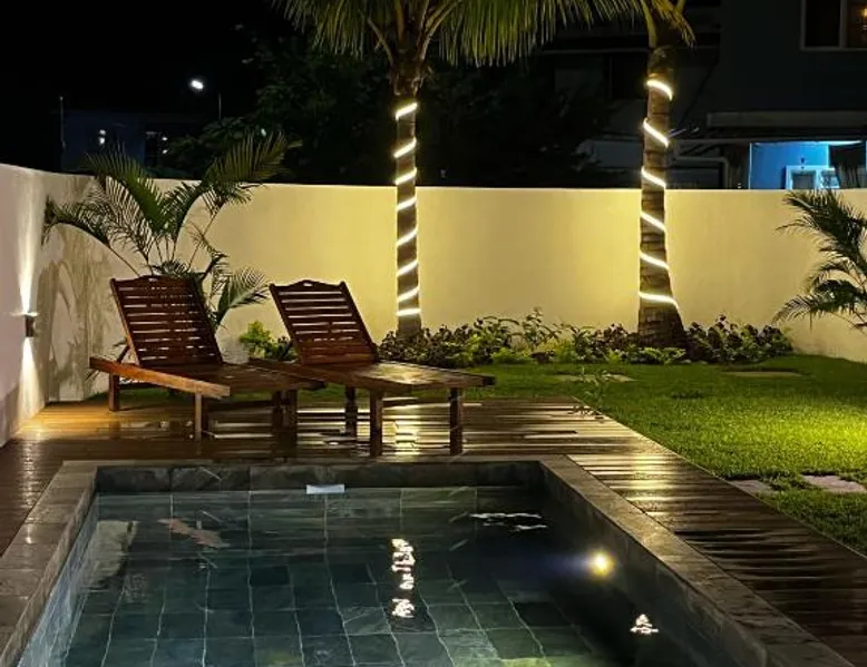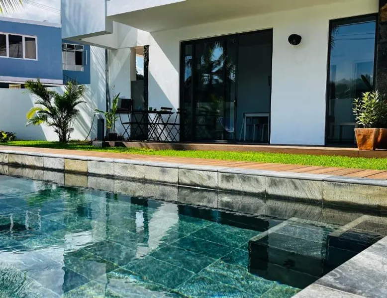 Comfortable Accommodations: Résidence Autentik Garden in Bel Omber offers a spacious apartment with a garden and terrace. Guests enjoy free WiFi, air-conditioning, and a fully equipped kitchen. Modern Amenities: The apartment features a private bathroom, washing machine, and streaming services. Additional amenities include a dining table, outdoor furniture, and a swimming pool. Convenient Location: Located 26 mi from Sir Seewoosagur Ramgoolam Airport, the property is a 3-minute walk from Bel Omber Beach. Nearby attractions include Paradis Golf Club (9.3 mi) and Tamarina Golf Course (21 mi). Guest Satisfaction: Highly rated for room cleanliness, garden, and swimming pool, the apartment ensures a pleasant stay. The air-conditioned apartment has 2 bedrooms and 1 bathroom with a shower and a hairdryer. In the kitchen, guests will find a stovetop, a refrigerator, a dishwasher and kitchenware. This apartment features a washing machine, a coffee machine, a flat-screen TV with streaming services and a terrace. The unit has 2 beds.