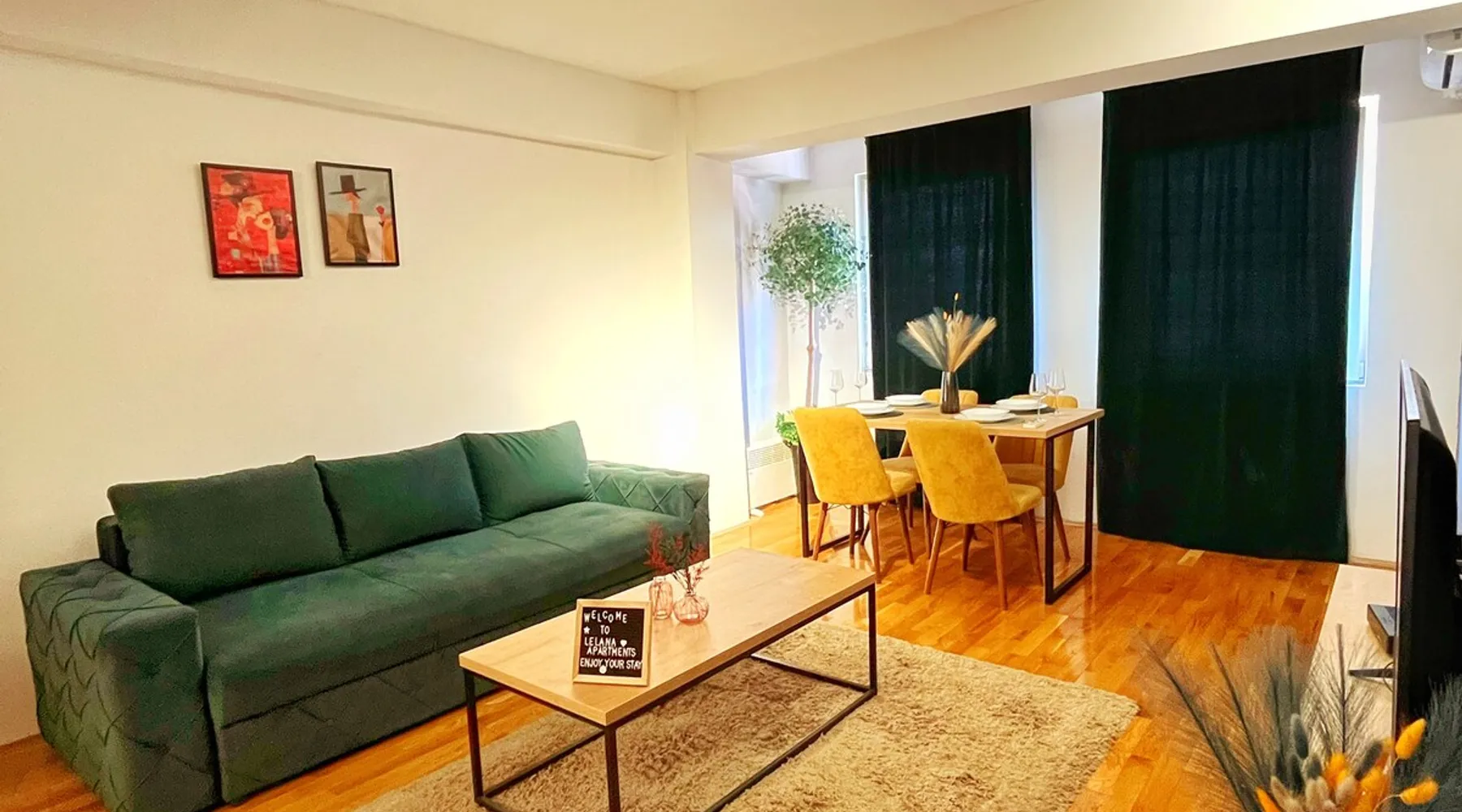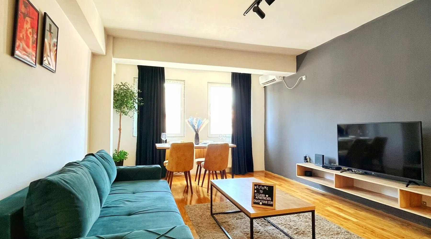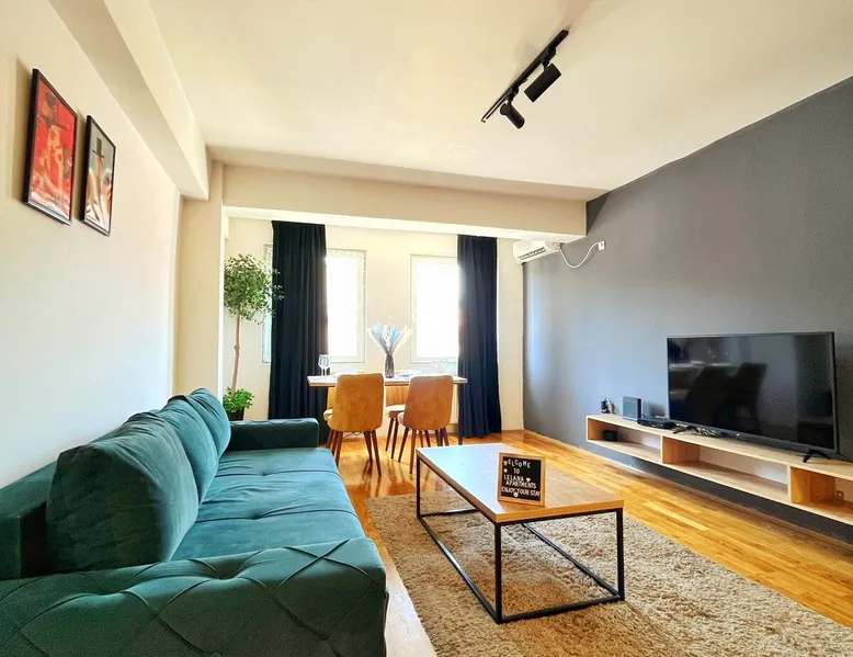 Welcome to our stylish apartment in Skopje! Experience modern elegance in this fully furnished space, located just 15 minutes from the city centre. Enjoy on-site amenities including a pizza/breakfast restaurant and supermarket. Just a short walk away, you'll find markets, pharmacies, a cosmetic store, coffee bars, etc. With a bus stop 100m away and super-fast WiFi for your convenience, this apartment is your perfect base for a memorable Skopje adventure. Book now and live the city like a local!