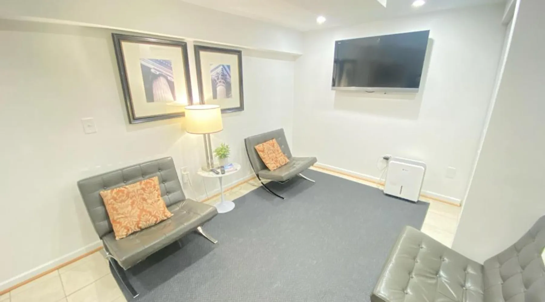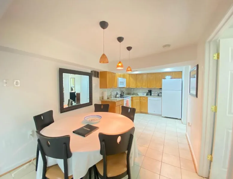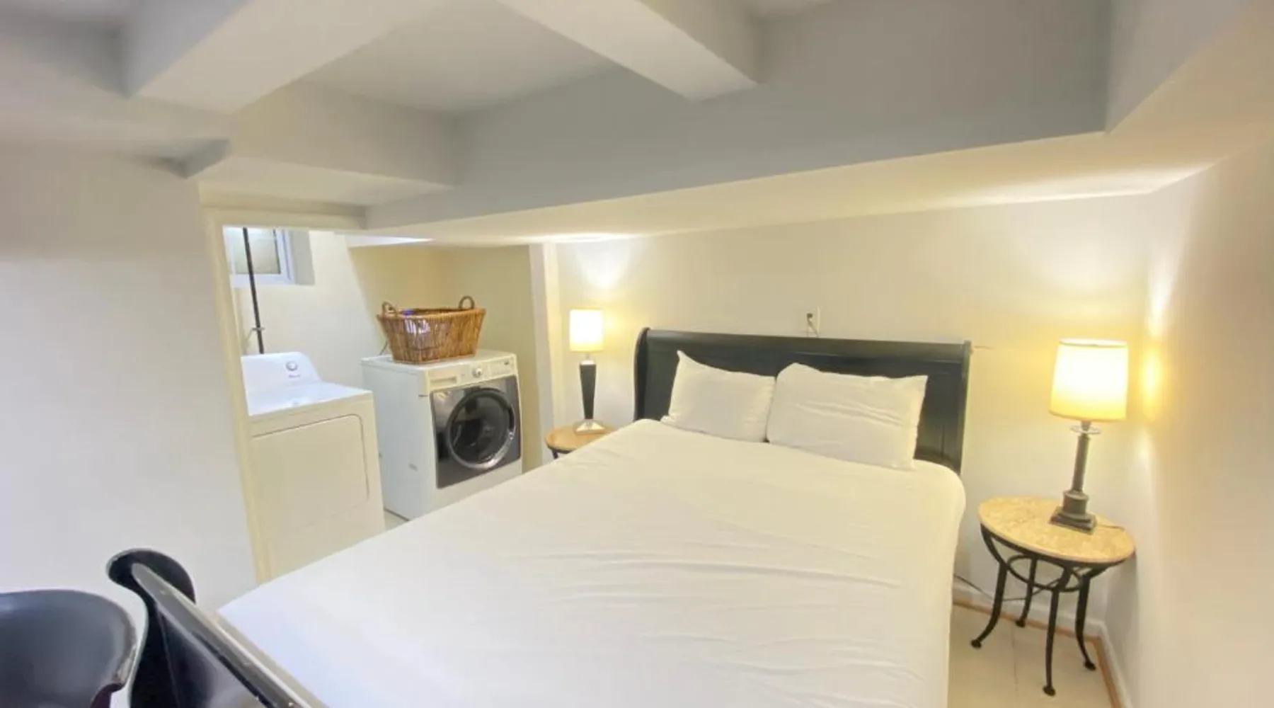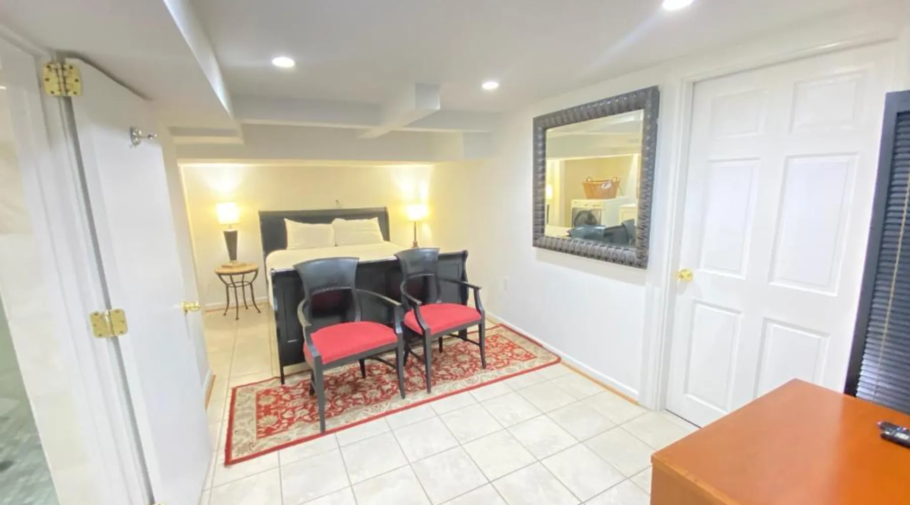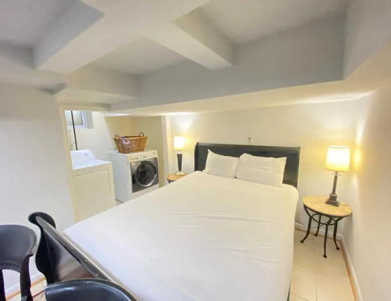 Spacious Accommodations: COMFY Basement Home 2 Bdrm1Den 3Queen Beds in Washington offers a spacious apartment with three bedrooms and a living room. The ground-floor unit features a private patio and inner courtyard views. Modern Amenities: Guests enjoy free WiFi, air-conditioning, a washing machine, and a fully equipped kitchen with a dishwasher, microwave, and oven. Additional amenities include a dining area, TV, and tiled floors. Convenient Location: Located 9.3 mi from Ronald Reagan Washington National Airport, the apartment is near attractions such as the Phillips Collection (2.7 mi), White House (3.7 mi), and National Mall (4.3 mi). Paid on-site private parking is available. Highly rated by guests. This spacious apartment features 1 living room, 3 separate bedrooms and 1 bathroom with a walk-in shower and free toiletries. The well-fitted kitchen has a stovetop, a refrigerator, a dishwasher and kitchenware. The air-conditioned apartment features a flat-screen TV with cable channels, a washing machine, a tea and coffee maker, a dining area as well as an inner courtyard view. The unit has 3 beds.