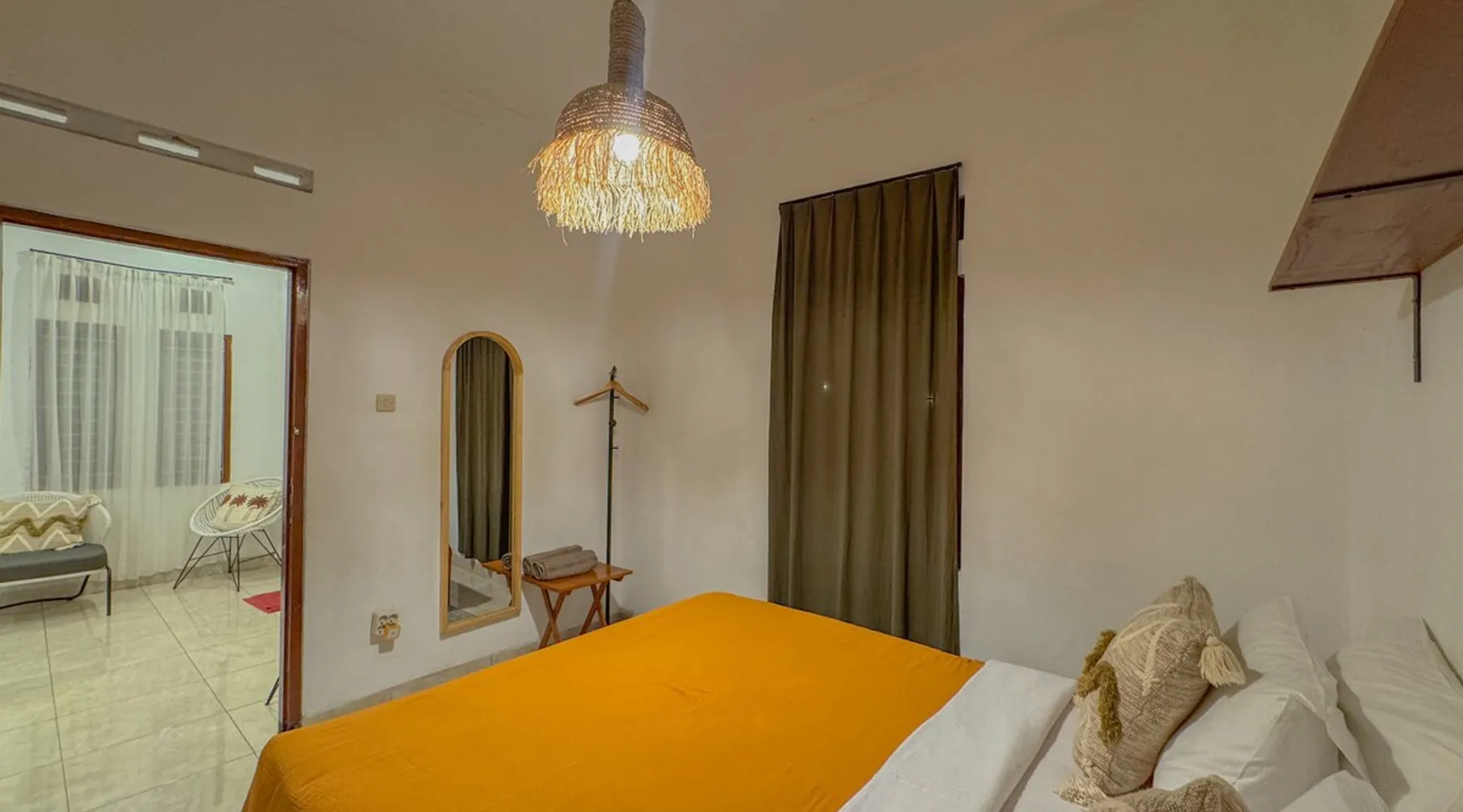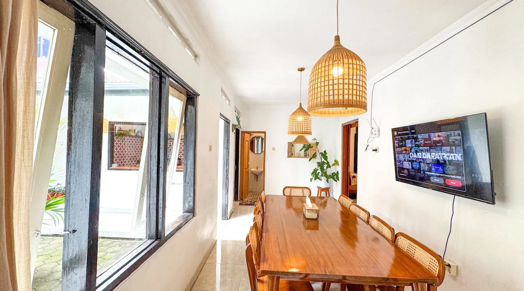 Welcome to our exceptional 6-bedroom Home Kamudi Jogja! (@kamudi _ guesthouse) - 12 Min to Tugu Train Station - 10 Min to Malioboro Street - 8 Min to Alun-alun Kidul & Taman Sari Water Castle - 6 Min to ARTJOG * all rooms with AC * Daily Cleaning * High Speed Wifi 150Mbps * Towel * 3 Shared Bathroom with Water Heater * Shared Fully Equipped Kitchen, Living room with Smart TV, Dedicated working Space, Water Dispenser, Water Kettle * Easy to find for Online Transport (Grab, Gojek) The space Our 6-bedroom house provides the convenience of 3 shared bathrooms, ensuring comfort for all guests. You'll enjoy a private kitchen and a cozy living room, making it the perfect setting for relaxation and productivity. Plus, high-speed internet is available for work or leisure. Experience the best of both worlds—a peaceful retreat with easy access to all that Jogja has to offer. Your stay with us guarantees comfort, convenience, and a touch of style. Discover the ideal combination of style and comfort in this spacious home. Enjoy the best of both worlds—a relaxing sanctuary with quick access to everything Jogja offers. Your stay promises comfort, convenience, and a touch of style, complemented by Jogja's genuine hospitality. Guest access Guests will have access to the whole area Other things to note Note: 1. Our Airbnb is located in a local residential neighborhood, where you'll have the chance to experience authentic Jogja living. The neighbors are very welcoming to tourists, and we hope you'll enjoy being part of the community during your stay. From time to time, you may hear the joyful sounds of children playing in the late afternoon, or the call to prayer from a nearby mosque, a normal part of daily life in this area. Staying here offers not just a place to sleep, but a chance to feel connected to the local culture and neighborhood atmosphere. 2. If you prefer to book the rooms separately in this house please contact us for availability or visit our profile for more listing details If you need to book more than one room in this house Check in Time: 2pm Check out: 12pm 3. Our dedicated team is eagerly awaiting your arrival and will be on hand to assist you with a smooth check-in process. To ensure everything goes seamlessly, please be so kind as to share your estimated time of arrival at the property. We're here to make your stay exceptional!
