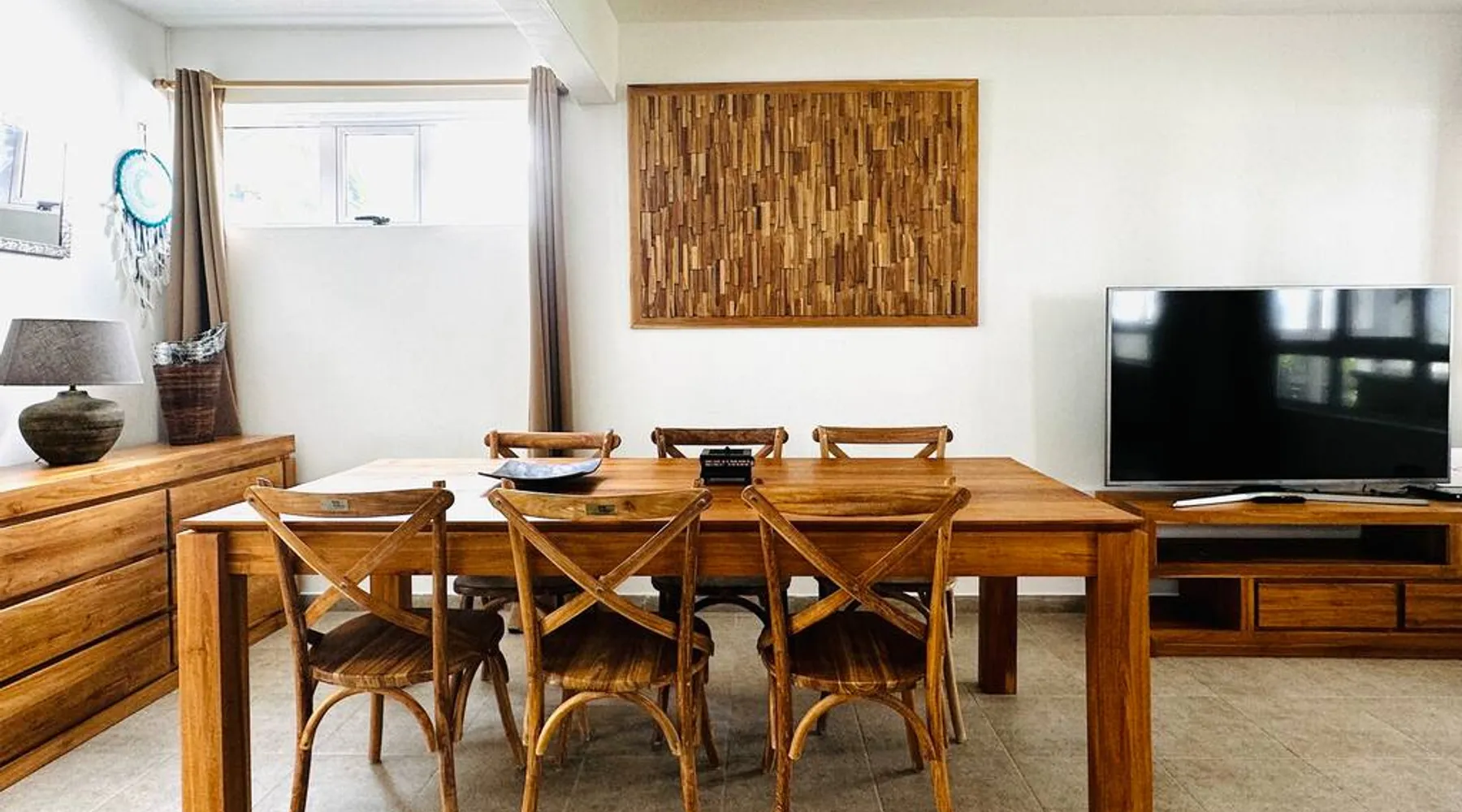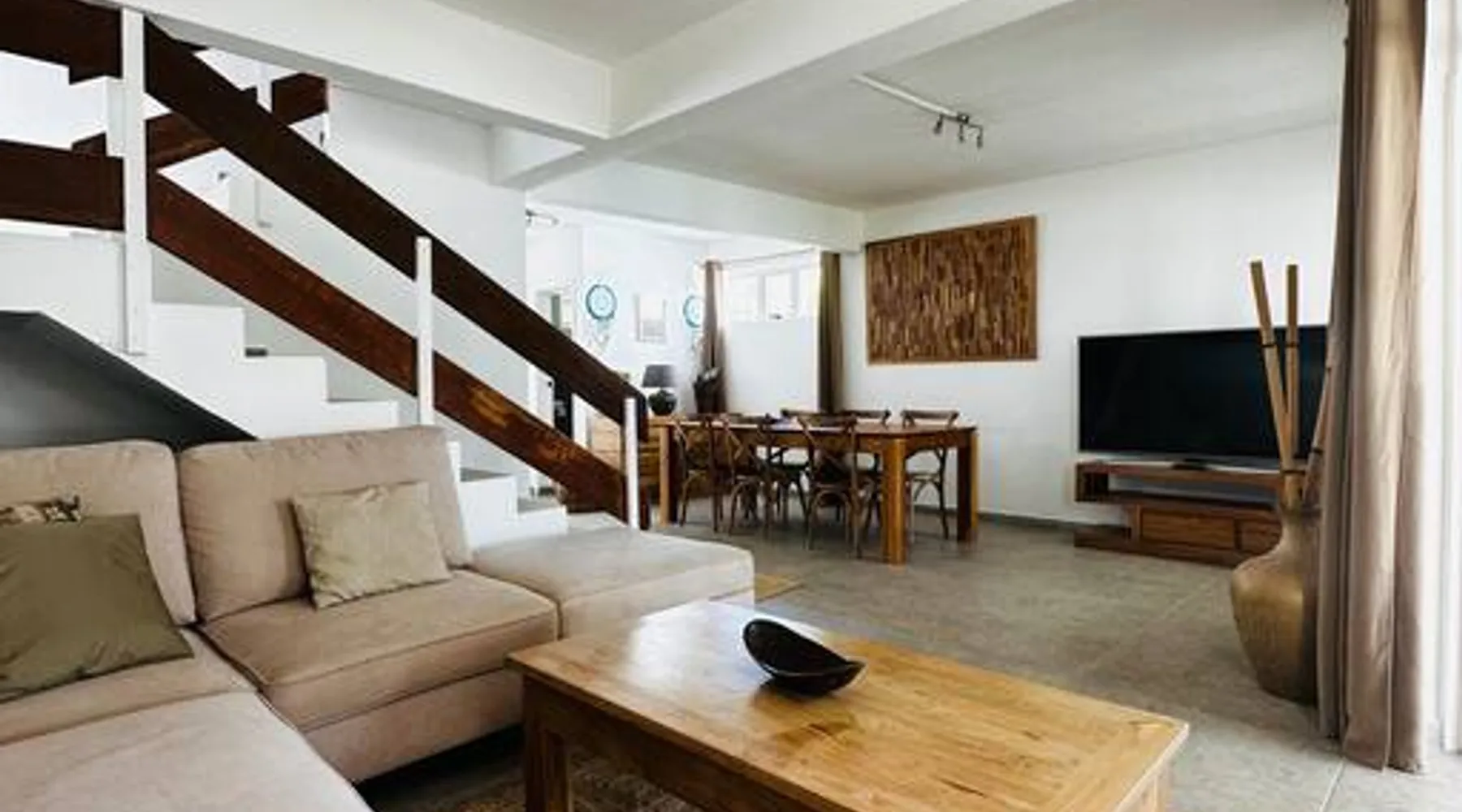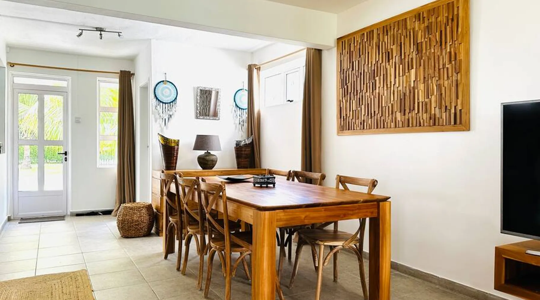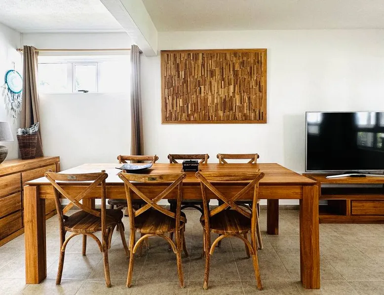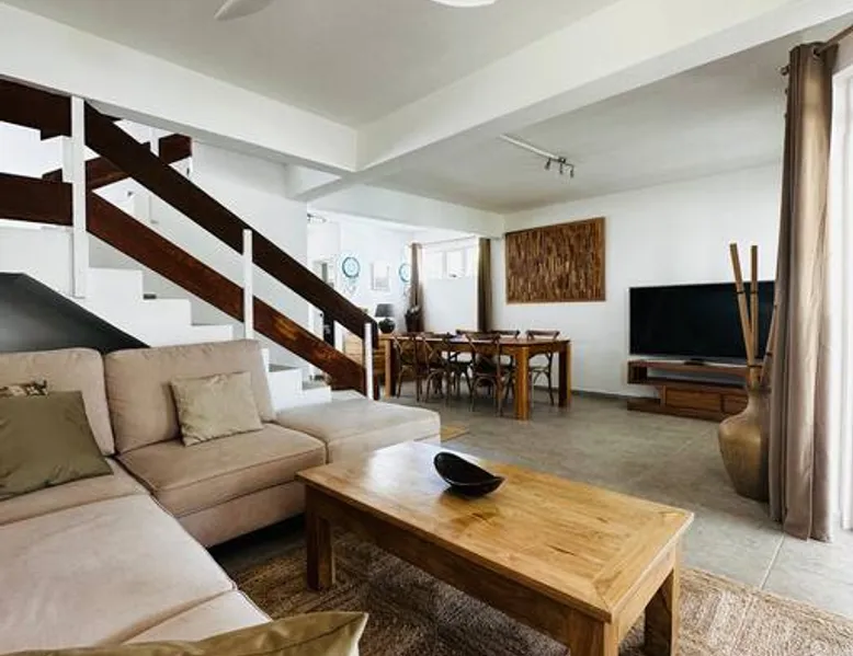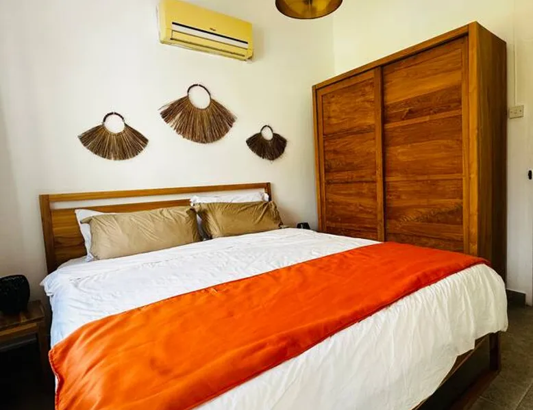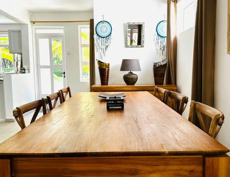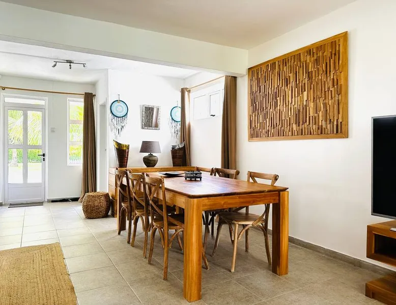 Located right on Mont Choisy Beach, just steps from Mont Choisy Golf and a few meters from a pristine lagoon, this beautiful two-bedroom apartment offers the perfect relaxing getaway for you and your family. Enjoy a large, fully furnished terrace ideal for sunset cocktails or casual dinners. Guests also have access to a shared swimming pool within the secure residence, along with daily housekeeping service (4 hours per day, 3 days per week) for a truly carefree stay. The space 🏝️ Location Highlights • Prime setting on Mont Choisy Beach, just steps from the turquoise lagoon • Only a short walk from Mont Choisy Le Golf, shops, and seaside restaurants • Secure, peaceful residential complex ideal for families or small groups ⸻ 🏡 Property Type & Layout • Entire apartment – 2 bedrooms, 2 bathrooms • Spacious open-plan living and dining area flowing onto a large furnished terrace—perfect for relaxed meals or evening cocktails • Bright, modern interiors with plenty of natural light ⸻ 🛋️ Amenities & Comfort • Shared swimming pool within the residence • Daily housekeeping (4 hours per day, 3 days per week) included in the stay • Fully equipped kitchen (oven, microwave, coffee machine, cookware) • Air conditioning in all rooms • High-speed Wi-Fi and Smart TV • Fresh linens, bath towels, and beach towels provided • Secure on-site parking ⸻ 🌟 Stand-Out Features • Exceptional beach access—literally steps from the sand • Large shaded terrace for alfresco dining or sunset cocktails • Daily housekeeping service for a truly carefree holiday ⸻ ✅ Practical Information • Check-in: 3:00 PM | Check-out: 11:00 AM • Maximum capacity: 4 guests • Pets: [state your policy] • Parties/events: [allowed or not] Guest access Entire place Other things to note I SERVICES INCLUDED IN YOUR STAY I On arrival: → Refreshing towels → Fresh fruit juice → Bottle of spring water → Snacks and other products in the fridge During your stay : → Housekeeper 6 days/7 → Fitness/ Gym on site. PLEASE NOTE : All bedrooms are air conditioned however the living area does not have air conditioning, but rest assured, it is very well ventilated and is equipped with a ceiling fan to ensure comfort.