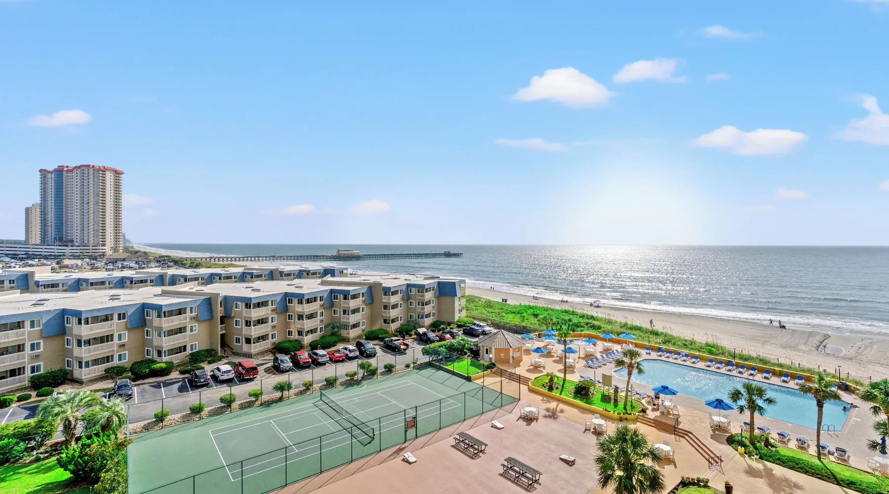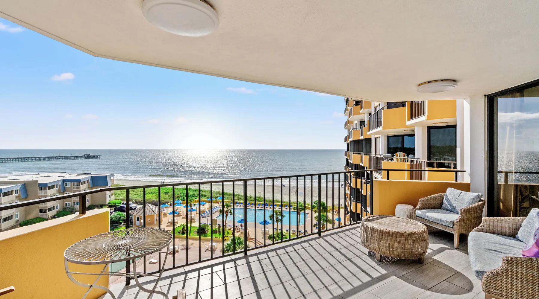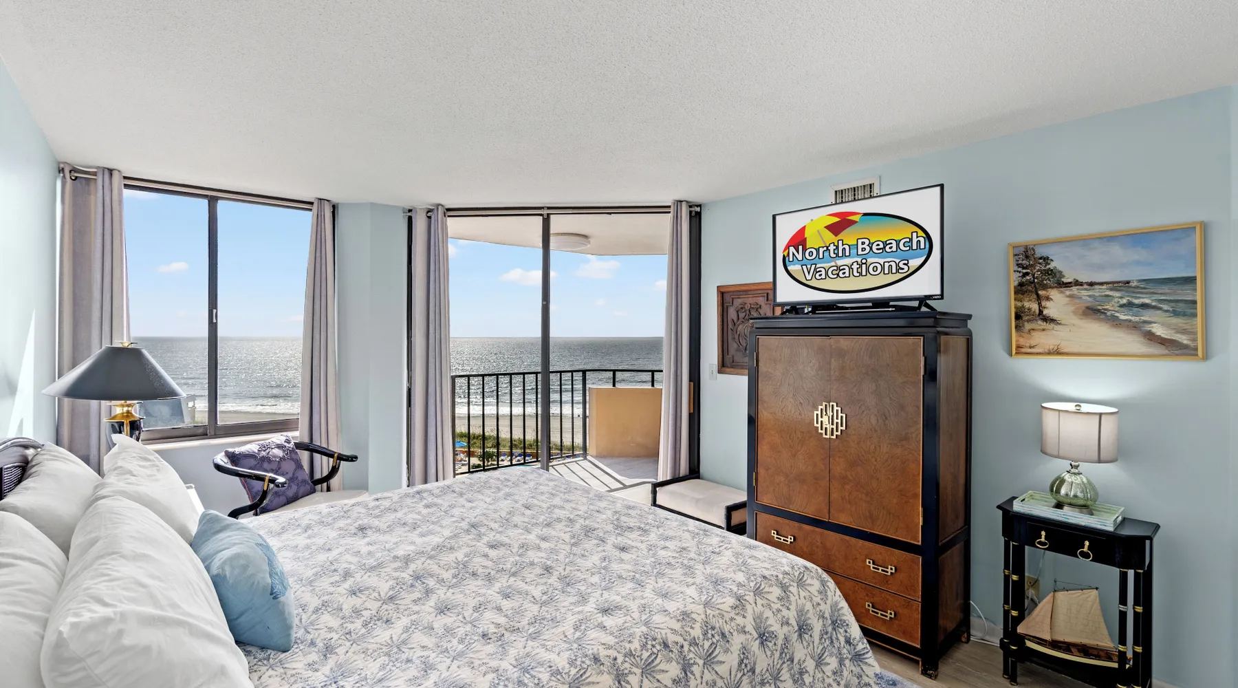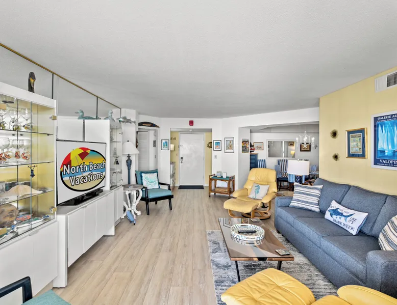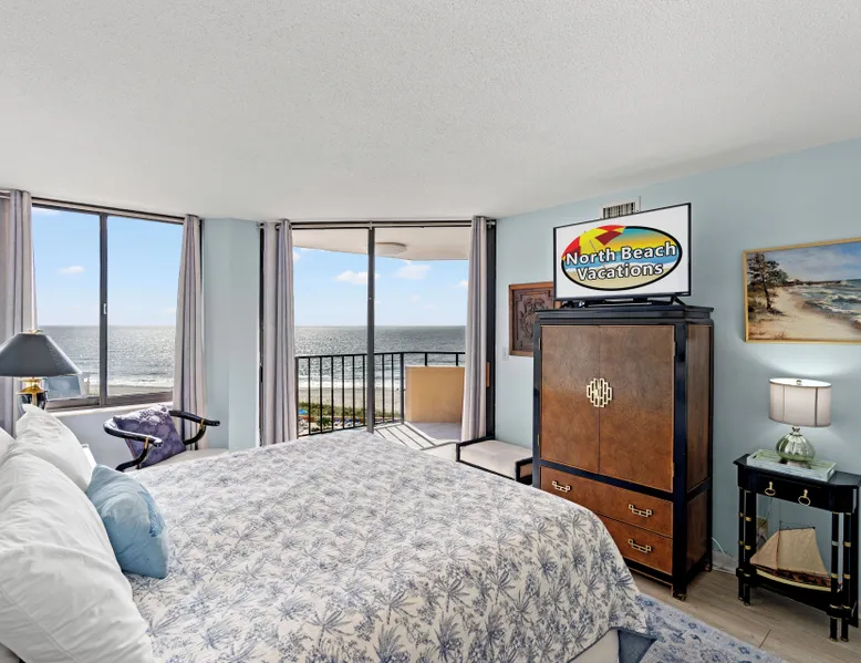 This 2bd/2ba, ocean view condo is located in a quiet section of Myrtle Beach. Enjoy all the comforts of home in this recently renovated condo at the beach. This unit comfortably accommodates 6 guests with 1 king and 2 queens. This rental has a 5 night minimum. This 5th floor, ocean view unit, is in a mostly owner occupied high rise condominium in the Arcadian Dunes section of Myrtle Beach. This beautifully renovated unit has two ocean-facing balconies, comfortable and chic dining and living rooms, updated tiled bathrooms. One walk-in shower and one shower/tub combo, and a thoroughly stocked kitchen with stainless steel appliances and solar shades. Each of the stylishly decorated bedrooms has blackout drapes for sleeping in, a large flat screen TV, ensuite bath and balcony access. You will love the extended living space—not to mention the views-- the balconies provide. New for 2025 - living room couch and patio furniture! Maisons-Sur-Mer is one of the most prestigious and private condominium buildings in Myrtle Beach. Maisons-Sur-Mer is located in the Arcadian Golf community and features gated entry and 24-hour security making luxury living even easier and more convenient. Onsite amenities include free parking, free Wi-Fi, large heated outdoor pool, bar & restaurant, tennis courts, putting green, fitness rooms, sauna, billiards room, outdoor grills, on-site parking and 24 hour security. Free Fun Included Every Day! To enhance your vacation experience, North Beach Vacations has partnered with Xplorie, which means your stay includes over $250.00 in complimentary activities, per day. Just for booking with us, you’ll receive free tickets, every day of your stay to top activities like golfing, water parks, dinner shows, and more!!! ***ONLY VALID FOR SHORT TERM STAYS 27 NIGHTS OR LESS*** NO MOTORCYCLES, BOATS, RV'S, GOLF CARTS OR TRAILERS ALLOWED ONSITE! WE DO OFFER FREE PARKING AT OUR LOCAL RENTAL OFFICE IF YOU PLAN TO BRING A MOTORCYCLES, BOAT, RV, GOLF CART, TRAILER AND/OR EXCEED THE NUMBER OF VEHICLES PERMITTED PER UNIT. PARK AT YOUR OWN RISK. NO SMOKING IN UNIT OR ON BALCONY! NO PETS! 25 YEAR AGE REQUIRMENT! FOR ALL NON-FAMILY GROUPS, EVERYONE MUST MEET THIS AGE REQUIRMENT AT THE TIME OF CHECK-IN!