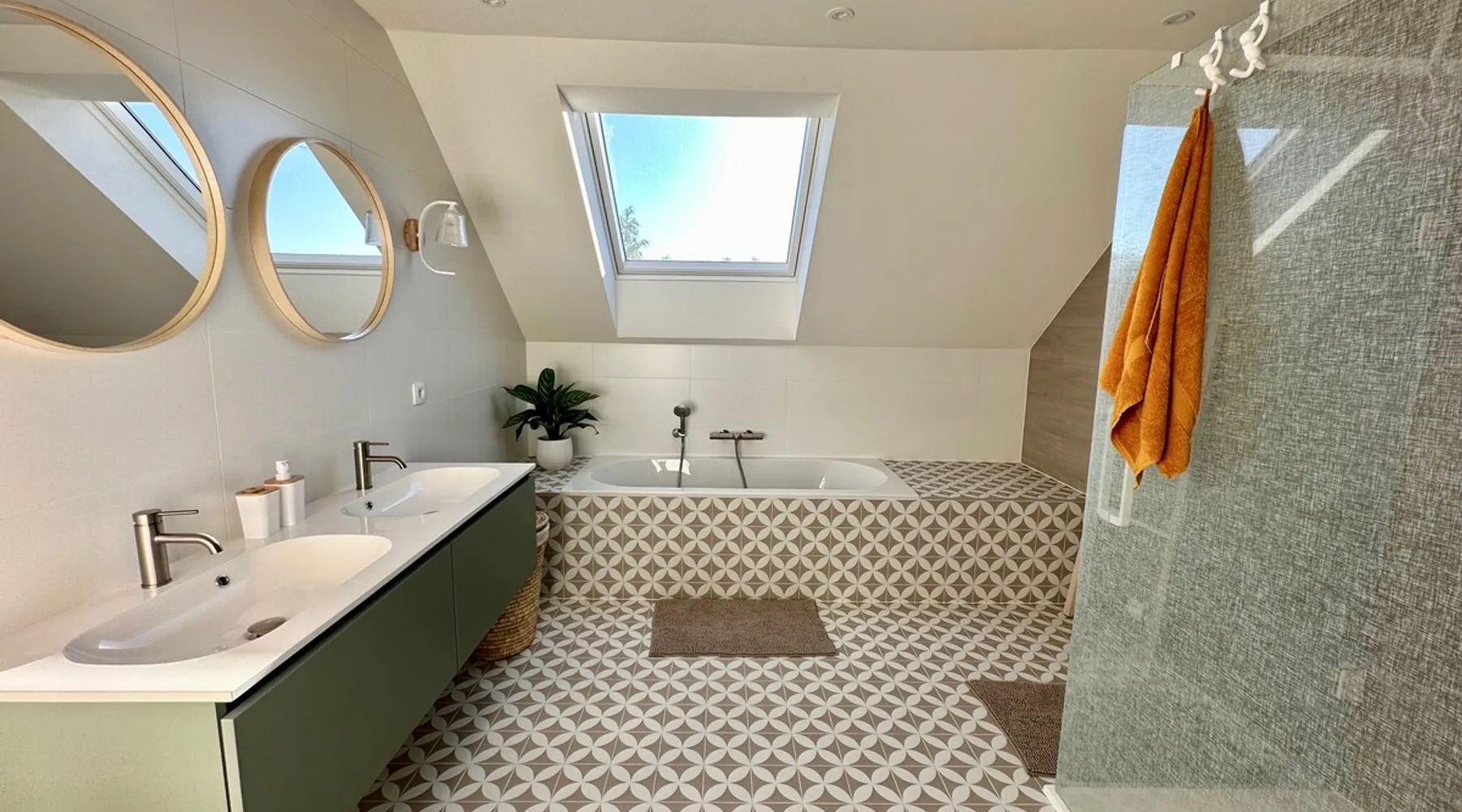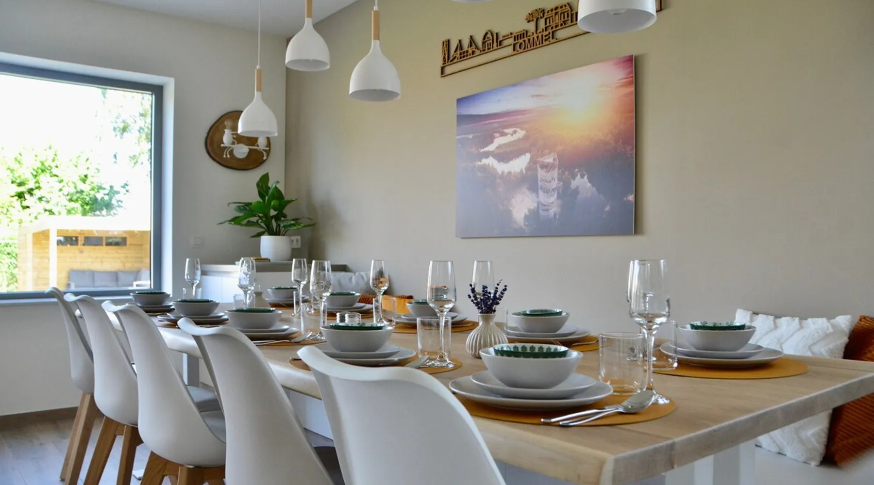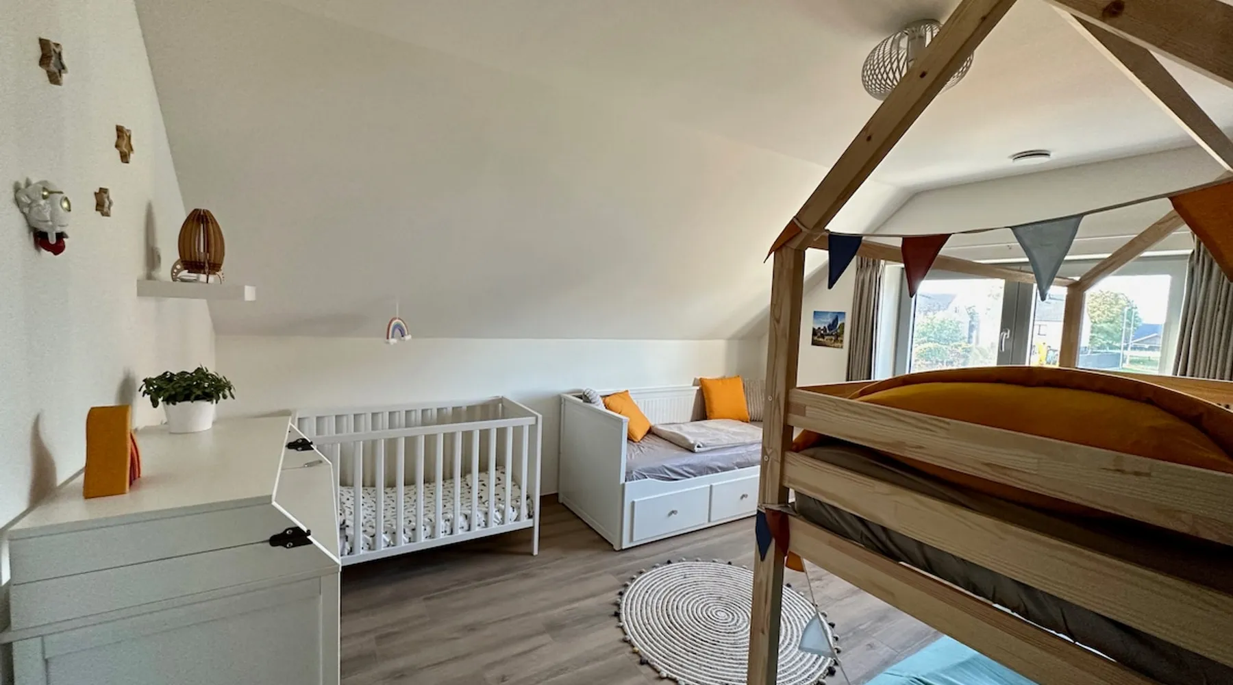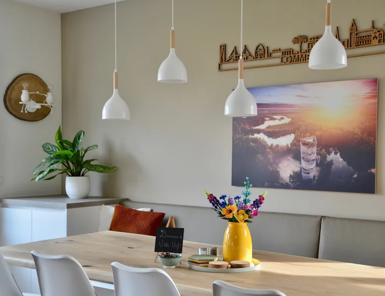The space There are 5 bedrooms with a nice double bed (for 10 adults), including 1 ground floor bedroom and 1 children's room with an extra bunk bed (for 2 children) and 2 baby beds with Aerosleep mattress. There are 14 separate sleeping places, of which 2 are exclusively for children and 2 for a baby/toddler. So several families can stay there. All the comfort is there to sleep, eat, dream and enjoy. In short, the ideal place to have a wonderful time! The 2 bathrooms - one of which is on the ground floor - invite you to enjoy a wonderful bath. There is an indoor garage where bicycles, buggies, etc. can be safely stored and charged. Villa Vief is subtly all about the natural elements, both outside and inside. Come and dine with your friends and family at the beautiful large oak tree trunk table or discover the fire in you on our unique indoor slide. This slide is made for young and old (yes, really). Just slide! Outside you can enjoy a delicious aperitif on the large terrace of the house or in the lounge chairs under the covered terrace. Feel the grass between your toes and dream away in the hammock to the sound of the birdsong. You are surrounded by beautiful greenery and can relax at Villa Vief. Important: bring your own towels. All necessary household products are provided (toilet paper, dishwashing liquid, dishwashing cubes, kitchen towel,...) In short, everything is available in the house for a wonderful time! Guest access Villa Vief is completely yours! Villa Vief is located in green Lommel, 650m from forest and water with walking and cycling paths (junction 228). The holiday home is close to a nice bakery, a chip shop and a Spar supermarket. There is room for 4 cars at the house and (electric bicycles) etc. can be placed in the indoor garage. Other things to note For the stay we ask for a deposit of €600 before the check-in date. This will be refunded within 14 days of your stay after an inspection of the holiday home. Important: bring your own towels. All necessary household products are provided (toilet paper, dishwashing liquid, dishwashing cubes, kitchen towel,...) In short, everything is available in the house for a wonderful time!