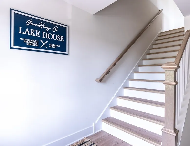 Check out this newly constructed, contemporary townhome just a quick jaunt from the Fontana lakefront on Geneva Lake's west side. Four bedrooms, two and a half baths and a built-in bunk bed area make this the perfect spot for families of all sizes looking for an upscale Wisconsin getaway. Enjoy some of the convenient comforts of home with a laundry room and fully-equipped kitchen. The space A screened-in porch, two private balconies and an open-concept living area abundant with natural light provide the perfect social settings to make lasting memories with friends and family. As the end unit townhome, the West End Escape offers additional privacy and even a lake view. Notable Geneva Lake destinations within walking distance include the Fontana public beach and boat launch, the Abbey resort, Gordy's boat rental and restaurant and Chuck's Lakeshore Inn. The unit is steps from Blue Haven Ice Cream, The Coffee Mill, Shell Convenience Store, Little Bar Pizza, and Kim Kasi's. Guests will enjoy being at the "quieter" end of Geneva Lake while still having easy access to all the downtown Lake Geneva attractions just twenty minutes away. Other things to note **Please note: After your reservation is confirmed through Airbnb, we will request your email address and send an electronic guest rental agreement. Signing the agreement is required to finalize your booking and receive check-in instructions.** *Parking available on-site for two vehicles *Please keep in mind, all toiletry and startup supplies are meant to last 2-3 days. If your stay is longer, you may need to purchase more. We want to make sure you are as satisfied as possible with your vacation. If you experience any issues at all during your stay, please call us! We strive for a 5 star stay! Additional Fees: Early Check-In – $75 (based on availability) Late Check-Out – $75 (based on availability) *Lost and Found – If you left something behind, please contact us. While Geneva Lakes Vacations isn’t responsible for items left after a stay, we’ll do our best to locate and return them. Guests cover shipping. Once located, returns may take up to 4 weeks.