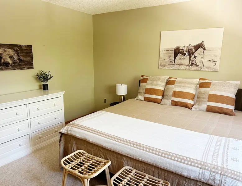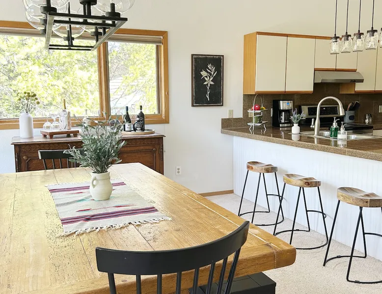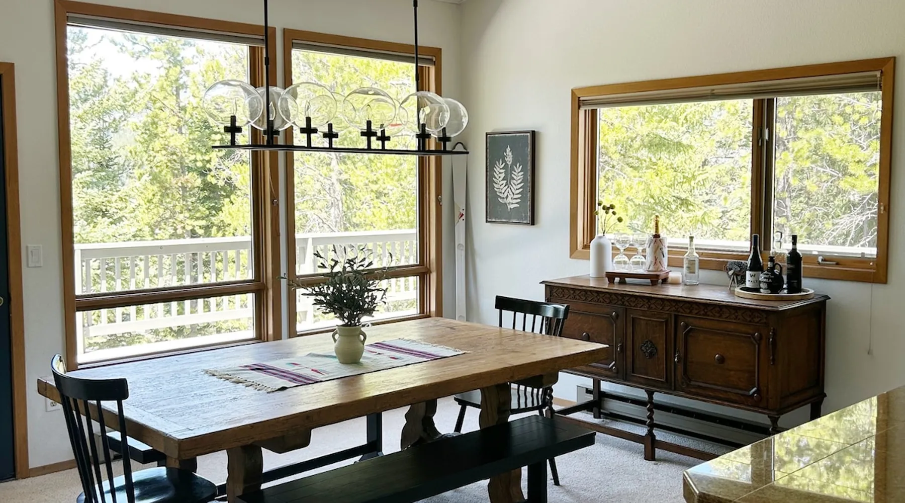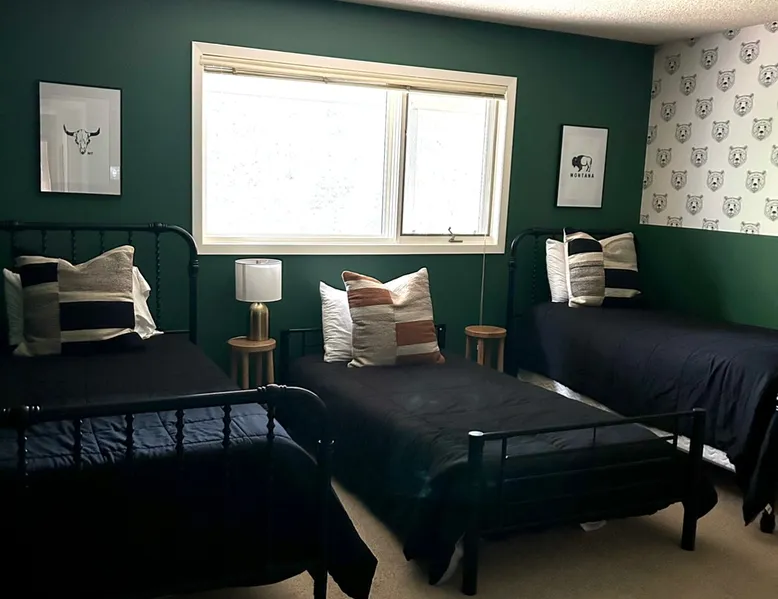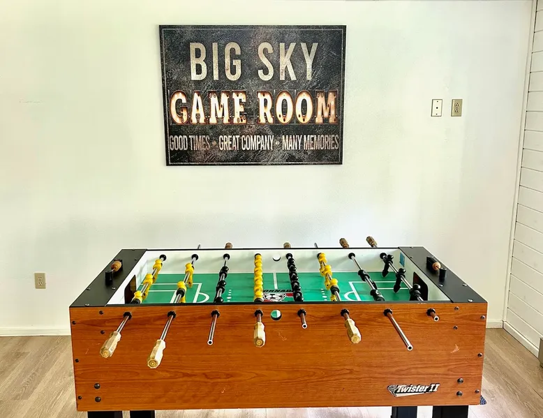 This condo is the basecamp for all your Big Sky adventures! Bring the whole family to this spacious home nestled in the pine trees where it feels like you're away from everything; however, everything is minutes away! This end unit at Hidden Village condominium has every element of a well rounded Big Sky home - space, access, and views! Just steps to cross country ski trails, 3 minutes to Town Center, 8 minutes to the Gallatin River, and only 10 minutes to world class skiing at Big Sky Resort. The space The condo is a perfect layout for multiple families. There are three levels, each has a bedroom and full bathroom. Additionally, there is a huge game room/family room for the kids to play or watch movies. The top floor (upstairs) has the master bedroom and full bath, living room, dining room, kitchen and an extra half bath. The second floor (street level) has 1 King bedroom and a bedroom with 3 twin beds. There is a full bathroom and mudroom on this floor too. The third floor (basement level) has a queen bedroom, large full bathroom and the game room/family room space. Guest access The Entire House