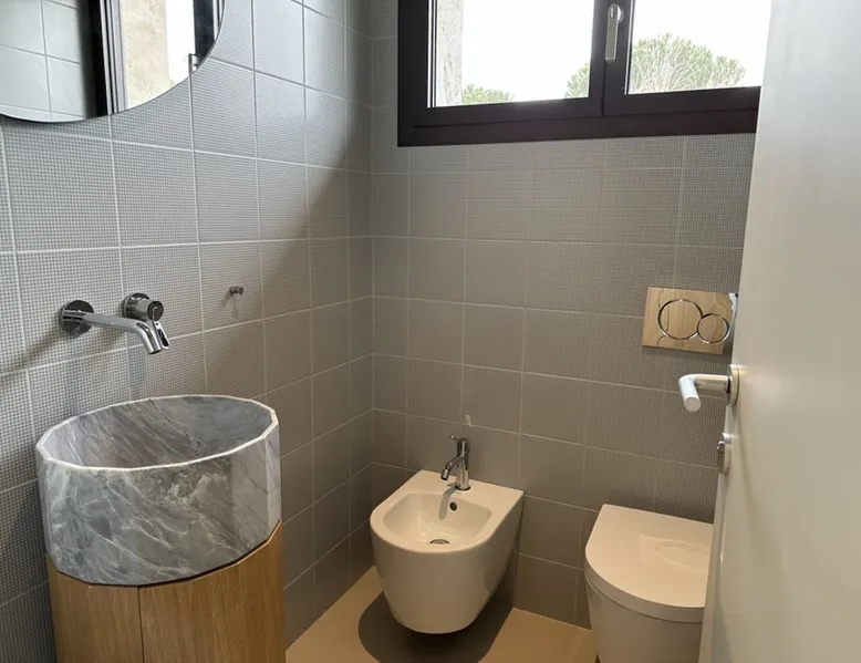 Very special detached villa with 2500m2 of garden, modern and stylish furniture, WIFI, A/C, Private parking. The space Villa Design is an independent villa with 2500m2 of garden, in the green area of Poveromo, recently renovated down to the smallest detail and furnished with stylish designer furniture. The villa is surrounded by a beautiful garden which offers a lot of privacy; the area of Poveromo is very quiet with many parks and gardens and is only one kilometer away from the best beaches in the area. The villa belongs to a famous Dutch interior designer and some of the photos were taken from a magazine that dedicated an article to the house. COMPOSED OF: Mezzanine floor with eat-in kitchen with 5-burner gas stove, service bathroom, 40m2 hall/living room and large terrace with electrically retractable awning. First floor with a double bedroom and single bedroom convertible into double, both with air conditioning and access to the balcony; bathroom with tub and shower. Furnished terrace for outsinde meals. WIFI, satellite TV, projector, washing machine, dishwasher, parking space, mosquito netting, air conditioning in the sleeping area. Welcome kit, midweek cleaning, bath/bed linen and weekly change are included. Beautiful detached villa with 2500m2 garden all around. Modern, with great attention to detail. The garden contains many trees and large plants which divides the lawn into sunny and shady areas. The terrace is furnished for having meals outside. Two parking spaces and very quiet throughout. The Poveromo area is a green and elegant area between Marina di Massa and Cinquale. The villas and parks around are well cared for. The sea is 1km from the sea and the beaches are sandy with bathing establishments or free beaches. Other things to note Below is a list of additional charges to be paid locally: The extra cost for linen is 8€per person. The extra cost for baby bed is 30€per apartment. The extra cost for cleaning is 120€per apartment. The extra cost for pet is 40€per apartment. The extra cost for towels is 6€per person. N. B. The above prices may have undergone changes, it is advisable to contact the host to know the updated ones. Registration Details IT045010C2DNI7HGBA