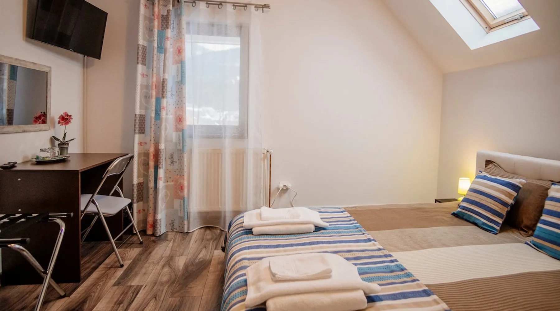 Casa Hugo offers a family room with 2 beds and a large private bathroom ( with access from the hall). We also accept holiday vouchers Sodexo or Up Romania.