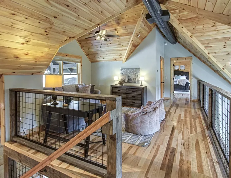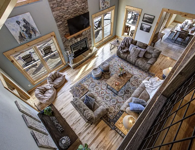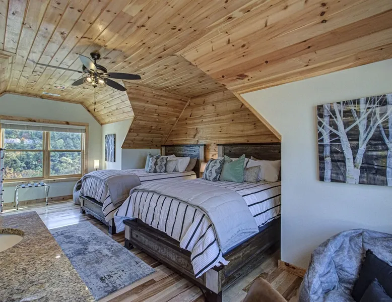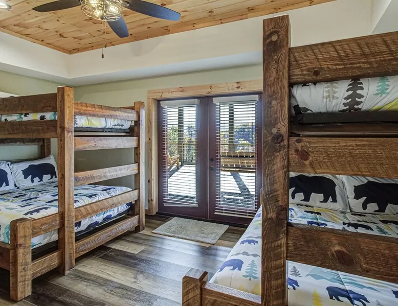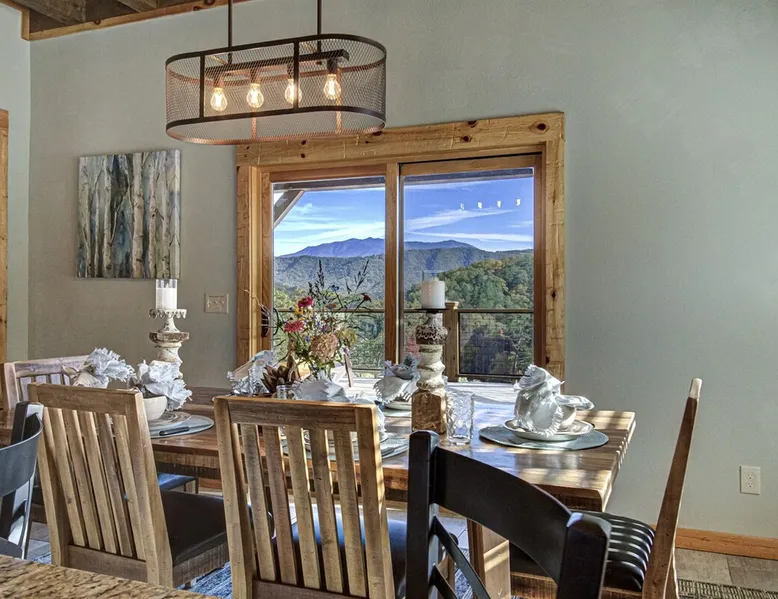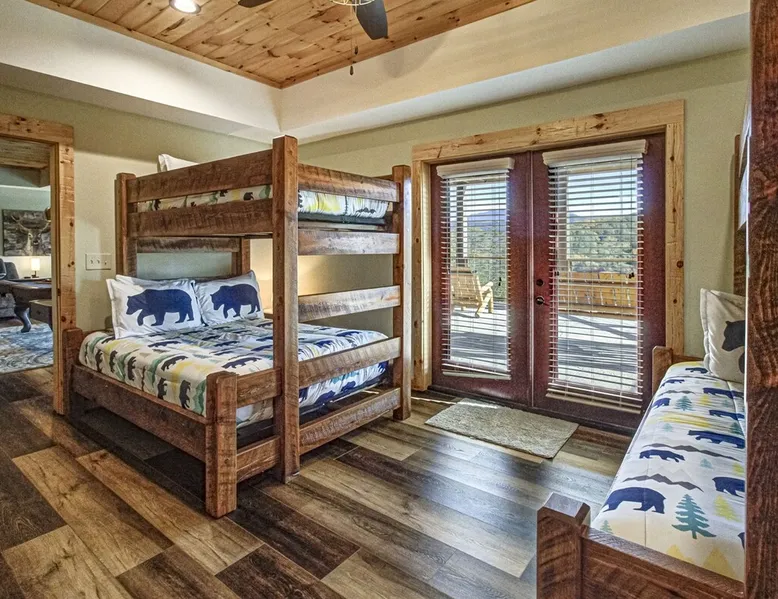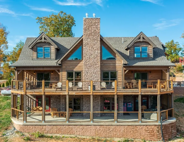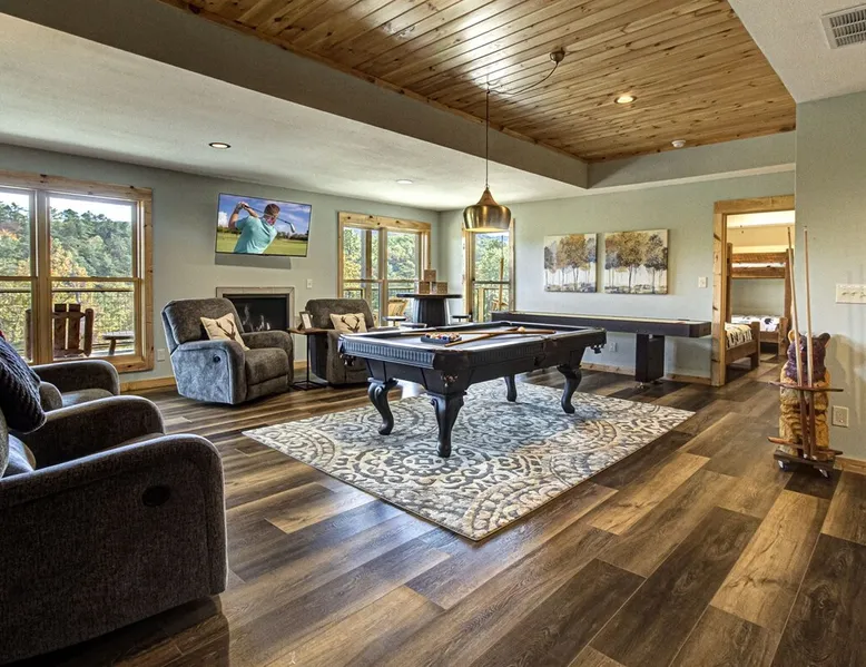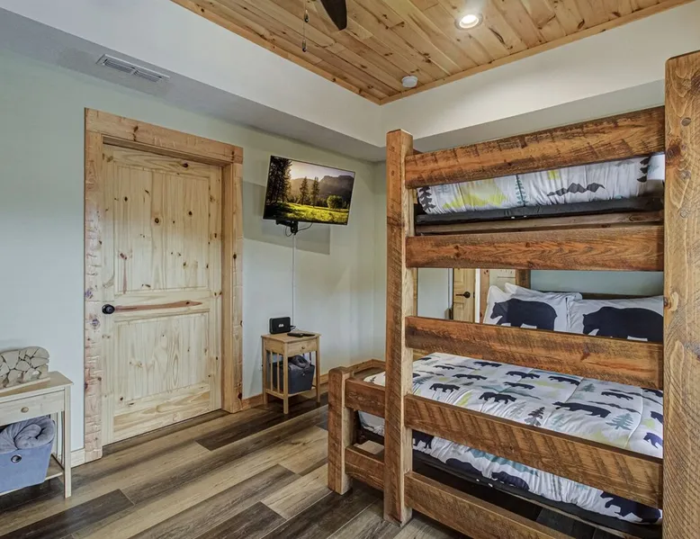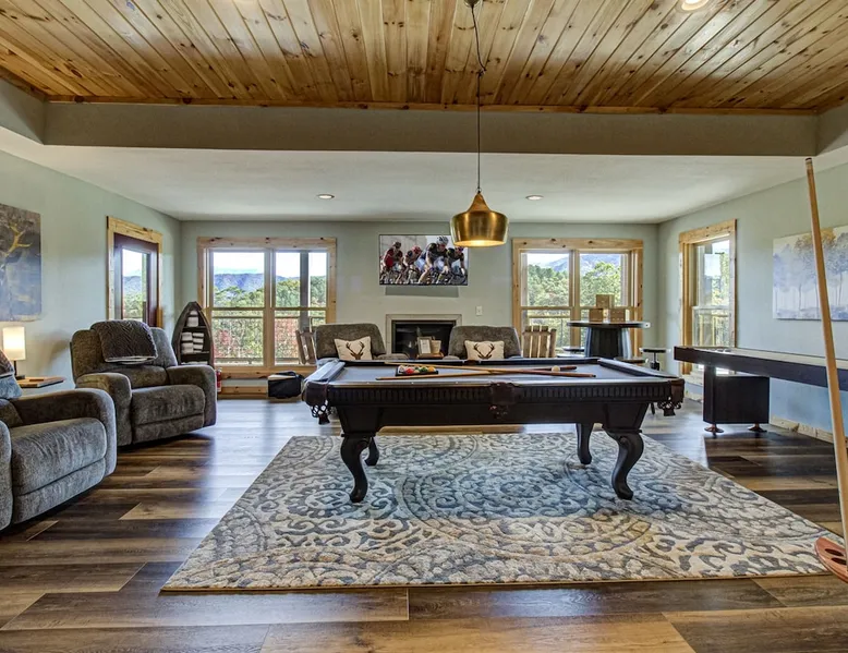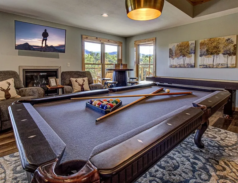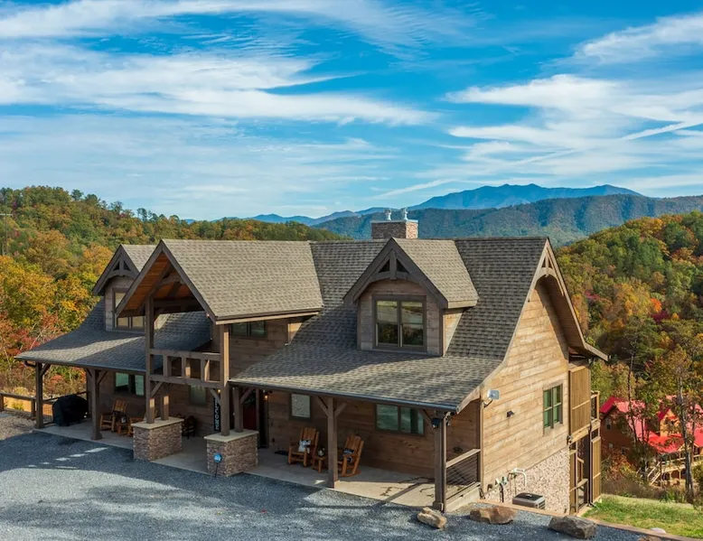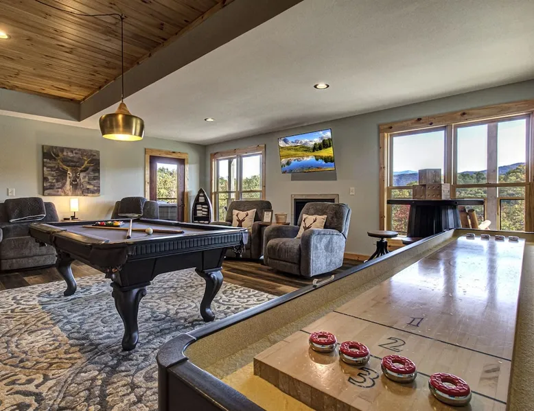 Luxury 5BR family cabin with stunning Smoky Mountain views! Located in the Thunder Mountain community near Pigeon Forge and Dollywood, this spacious retreat features a gourmet kitchen, game room, hot tub, fire pit, and over 2,000 sq. ft. of decks. Enjoy Starlink WiFi, Smart TVs, and easy access—no steep roads. Perfect for families and groups seeking comfort, fun, and unforgettable mountain views. The space 🌙 The Space Welcome to Moonlight Mountain Ridge, your luxury family retreat in the heart of the Smoky Mountains! This stunning 5-bedroom, 5.5-bath cabin combines upscale comfort with breathtaking panoramic views of Mount LeConte and the surrounding mountain range. Nestled in the prestigious Thunder Mountain community, the cabin offers easy access and no steep roads, making it ideal for families and groups seeking relaxation, adventure, and connection. 🏡 Spacious Luxury Cabin Designed for Families Step inside and you’ll be greeted by soaring ceilings, a wall of windows framing the Smoky Mountains, and warm wood finishes that blend rustic charm with modern luxury. The open-concept great room features a stone fireplace, plush seating, and a large Smart TV — the perfect space to unwind after a day of exploring. Each of the five bedrooms offers high-quality bedding and mountain-facing windows, allowing guests to wake up to stunning views. Bedroom 1 (Main Level): King bed, direct deck access Bedroom 2 (Upper Level): King bed, mountain view Bedroom 3 (Upper Level): 2 Queen beds, mountain view Bedroom 4 (Lower Level): King bed, mountain view Bedroom 5 (Lower Level): Two twin-over-full bunk beds, mountain view In total, the cabin comfortably sleeps up to 16 guests, offering the ideal setup for multi-generational families, reunions, or small groups traveling together. 🌄 Incredible Views from Every Level One of the standout features of Moonlight Mountain Ridge is the unobstructed panoramic view of the Smokies. You’ll enjoy spectacular sunrises, fiery sunsets, and star-filled nights from nearly every room. The cabin’s open layout and expansive windows ensure you’re never far from the scenery — whether you’re cooking breakfast, relaxing in the great room, or playing in the game room. 🍽️ Gourmet Kitchen & Family Dining Cook like a chef in the fully equipped gourmet kitchen, featuring granite countertops, stainless-steel appliances, and all the cookware and utensils you could need. A spacious dining area seats your entire group and overlooks the mountains — perfect for family dinners, game nights, or celebrating special occasions together. 🎮 Game Room & Entertainment The lower level is all about fun and relaxation! Challenge friends and family to a game of pool, shuffleboard, or classic arcade favorites. Settle in for movie night in the theater area with a 65" Smart TV and comfortable recliner seating. The cabin is equipped with Starlink high-speed WiFi, Dish Network, and Smart TVs in every major space, so everyone can stream, work, or relax seamlessly. 🪵 Outdoor Living at Its Best Step outside to enjoy more than 2,000 square feet of outdoor space designed to take full advantage of the mountain setting. Main deck: Rocking chairs and a covered sitting area for morning coffee or evening sunsets Lower deck: Hot tub with unobstructed views and outdoor seating Fire pit area: Wood-burning fire pit surrounded by Adirondack chairs, ideal for roasting s’mores or stargazing Yard games: Cornhole and Giant Jenga available for outdoor fun Whether it’s sunrise coffee or a night under the stars, this outdoor space truly captures the magic of the Smokies. 🛒 Convenient Grocery & Meal Delivery Skip the hassle of shopping! Instacart delivers groceries from Kroger and Publix, while DoorDash brings local favorites right to your doorstep. Enjoy the privacy of a cabin stay with the convenience of on-demand service. 📍 Prime Location Near Top Attractions Moonlight Mountain Ridge offers the best of both worlds — peace and privacy, yet close to all the action: Pigeon Forge: 4.5 mi Dollywood: 8.3 mi Gatlinburg: 11 mi Townsend: 17 mi Enjoy world-class dining, live shows, shopping, and outdoor adventures — all within a short, scenic drive. You’ll also have quick access to The Island in Pigeon Forge, Anakeesta, and the Great Smoky Mountains National Park. 🛏️ Sleep in Comfort Every bed at Moonlight Mountain Ridge features upgraded plush mattresses and high-quality linens to ensure a restful night’s sleep. With five bedrooms and five and a half baths, everyone in your group has plenty of room and privacy. 💻 Smart Home & Connectivity The cabin is equipped with Starlink Internet for fast, reliable WiFi that supports streaming, video calls, and remote work. Each TV is a Smart TV, so guests can log into their favorite streaming services. 🔥 Thoughtful Touches & Family Comfort We’ve designed this cabin to make every guest feel right at home. You’ll find thoughtful extras like: Washer and dryer with detergent provided Iron and ironing board Hair dryers in every bathroom Starter supplies (toilet paper, paper towels, soaps, trash bags, coffee) Pack ’n Play and high chair available upon request 🧭 Explore the Area Whether you’re craving adventure or relaxation, you’ll find it nearby: Great Smoky Mountains National Park: Endless hiking trails, waterfalls, and scenic drives Dollywood: Family fun, rides, and live entertainment The Island in Pigeon Forge: Shopping, dining, and attractions for all ages Ober Mountain: Skiing, tubing, and alpine adventures Townsend & Foothills Parkway: Peaceful drives and hidden gems off the beaten path 🧺 Laundry & Supplies A full-size washer and dryer are available for guest use, along with laundry detergent and essentials. ✨ Why Guests Love Moonlight Mountain Ridge ✔ Panoramic mountain views from nearly every room ✔ Spacious decks, hot tub, and fire pit for outdoor enjoyment ✔ Game room & theater area for all-ages entertainme