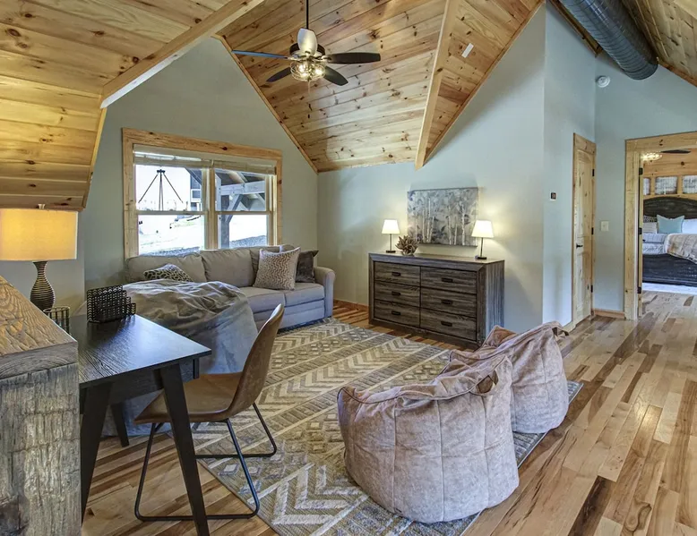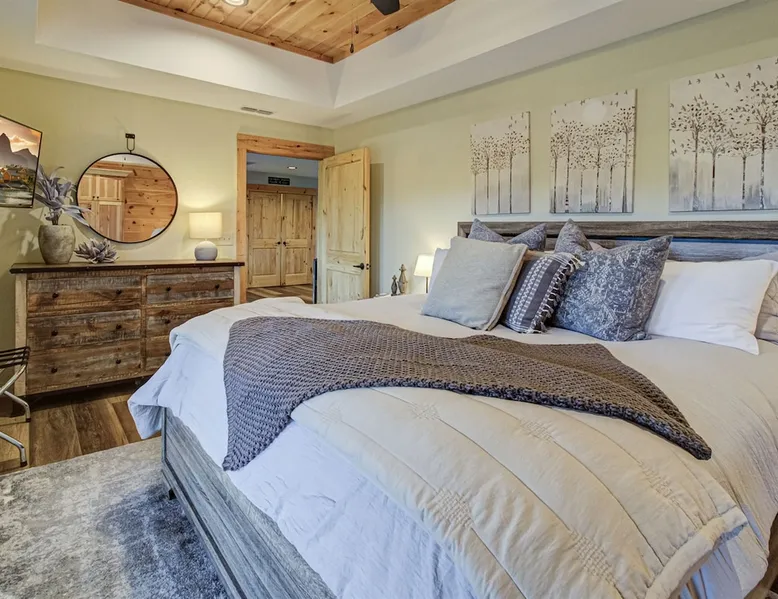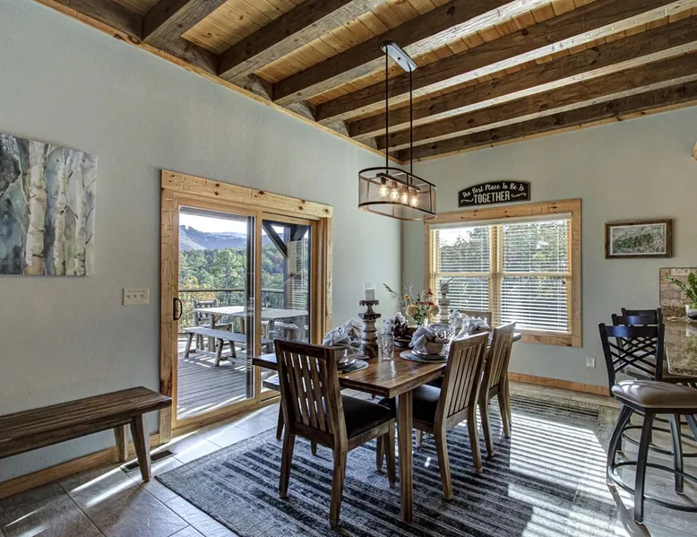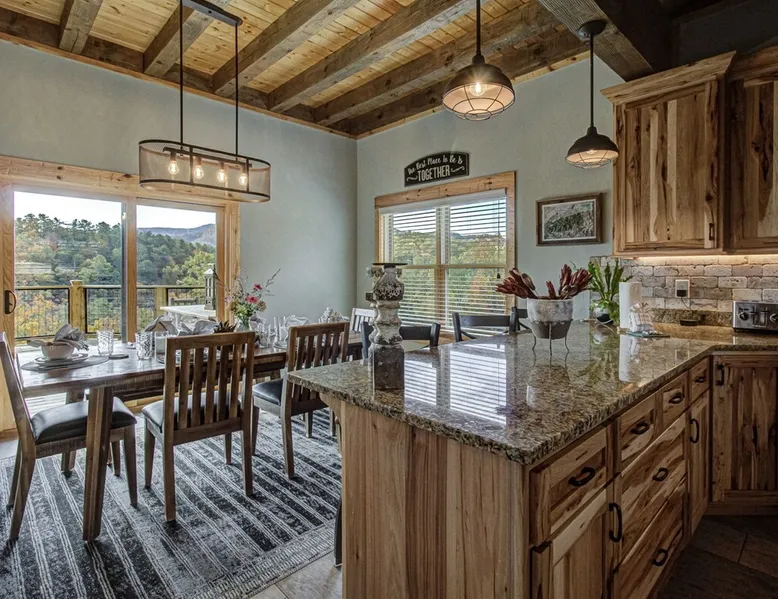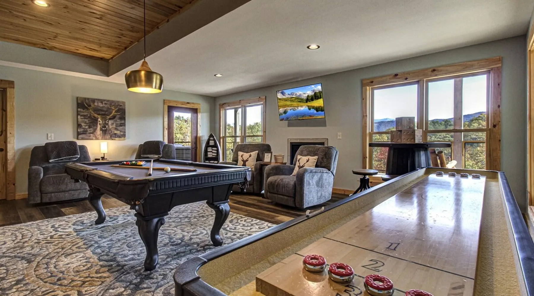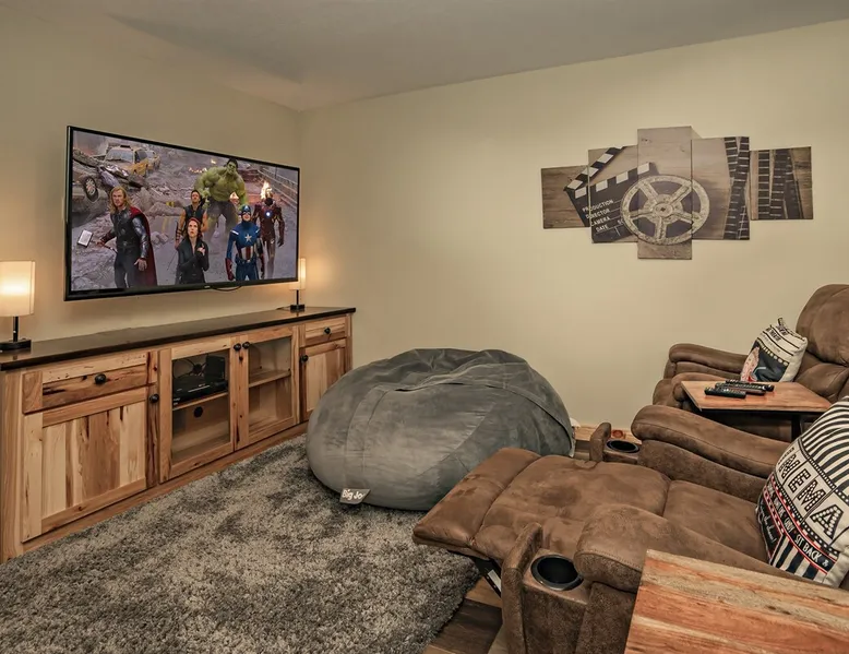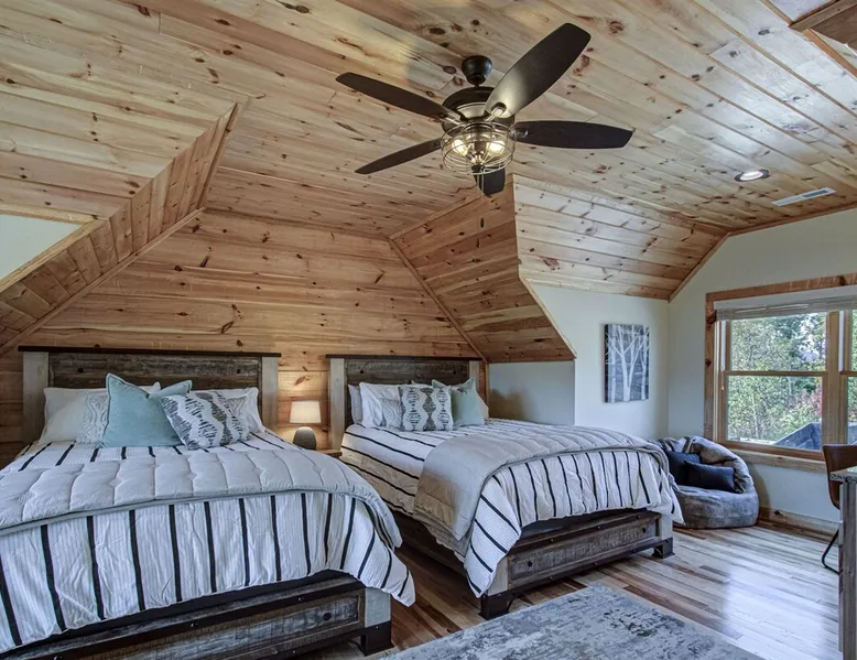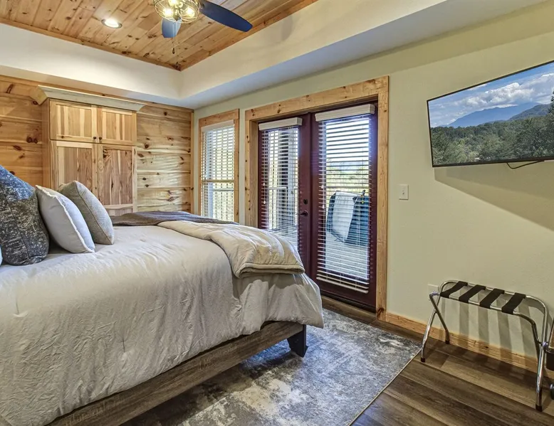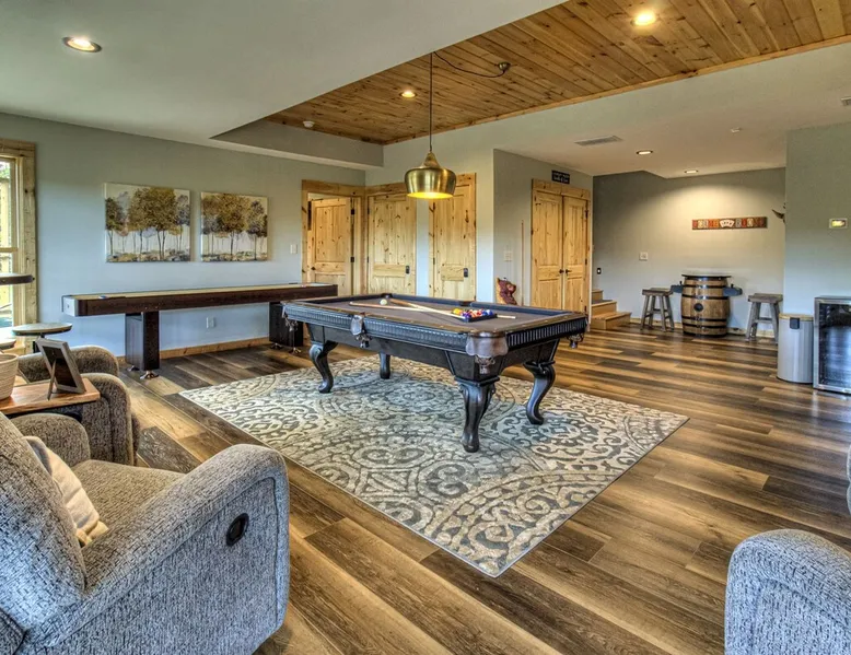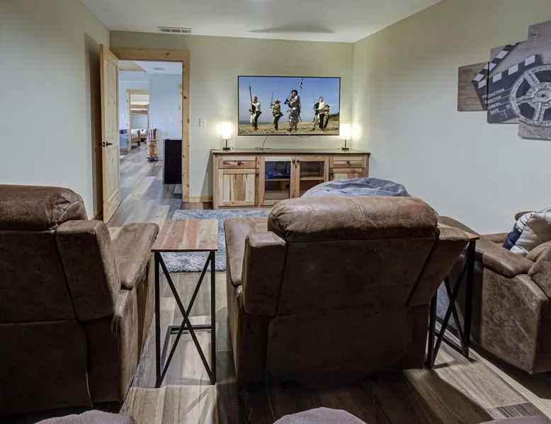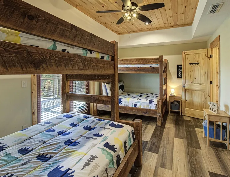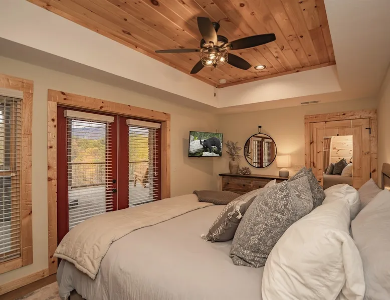 Luxury 5BR family cabin with stunning Smoky Mountain views! Located in the Thunder Mountain community near Pigeon Forge and Dollywood, this spacious retreat features a gourmet kitchen, game room, hot tub, fire pit, and over 2,000 sq. ft. of decks. Enjoy Starlink WiFi, Smart TVs, and easy access—no steep roads. Perfect for families and groups seeking comfort, fun, and unforgettable mountain views. The space 🌙 The Space Welcome to Moonlight Mountain Ridge, your luxury family retreat in the heart of the Smoky Mountains! This stunning 5-bedroom, 5.5-bath cabin combines upscale comfort with breathtaking panoramic views of Mount LeConte and the surrounding mountain range. Nestled in the prestigious Thunder Mountain community, the cabin offers easy access and no steep roads, making it ideal for families and groups seeking relaxation, adventure, and connection. 🏡 Spacious Luxury Cabin Designed for Families Step inside and you’ll be greeted by soaring ceilings, a wall of windows framing the Smoky Mountains, and warm wood finishes that blend rustic charm with modern luxury. The open-concept great room features a stone fireplace, plush seating, and a large Smart TV — the perfect space to unwind after a day of exploring. Each of the five bedrooms offers high-quality bedding and mountain-facing windows, allowing guests to wake up to stunning views. Bedroom 1 (Main Level): King bed, direct deck access Bedroom 2 (Upper Level): King bed, mountain view Bedroom 3 (Upper Level): 2 Queen beds, mountain view Bedroom 4 (Lower Level): King bed, mountain view Bedroom 5 (Lower Level): Two twin-over-full bunk beds, mountain view In total, the cabin comfortably sleeps up to 16 guests, offering the ideal setup for multi-generational families, reunions, or small groups traveling together. 🌄 Incredible Views from Every Level One of the standout features of Moonlight Mountain Ridge is the unobstructed panoramic view of the Smokies. You’ll enjoy spectacular sunrises, fiery sunsets, and star-filled nights from nearly every room. The cabin’s open layout and expansive windows ensure you’re never far from the scenery — whether you’re cooking breakfast, relaxing in the great room, or playing in the game room. 🍽️ Gourmet Kitchen & Family Dining Cook like a chef in the fully equipped gourmet kitchen, featuring granite countertops, stainless-steel appliances, and all the cookware and utensils you could need. A spacious dining area seats your entire group and overlooks the mountains — perfect for family dinners, game nights, or celebrating special occasions together. 🎮 Game Room & Entertainment The lower level is all about fun and relaxation! Challenge friends and family to a game of pool, shuffleboard, or classic arcade favorites. Settle in for movie night in the theater area with a 65" Smart TV and comfortable recliner seating. The cabin is equipped with Starlink high-speed WiFi, Dish Network, and Smart TVs in every major space, so everyone can stream, work, or relax seamlessly. 🪵 Outdoor Living at Its Best Step outside to enjoy more than 2,000 square feet of outdoor space designed to take full advantage of the mountain setting. Main deck: Rocking chairs and a covered sitting area for morning coffee or evening sunsets Lower deck: Hot tub with unobstructed views and outdoor seating Fire pit area: Wood-burning fire pit surrounded by Adirondack chairs, ideal for roasting s’mores or stargazing Yard games: Cornhole and Giant Jenga available for outdoor fun Whether it’s sunrise coffee or a night under the stars, this outdoor space truly captures the magic of the Smokies. 🛒 Convenient Grocery & Meal Delivery Skip the hassle of shopping! Instacart delivers groceries from Kroger and Publix, while DoorDash brings local favorites right to your doorstep. Enjoy the privacy of a cabin stay with the convenience of on-demand service. 📍 Prime Location Near Top Attractions Moonlight Mountain Ridge offers the best of both worlds — peace and privacy, yet close to all the action: Pigeon Forge: 4.5 mi Dollywood: 8.3 mi Gatlinburg: 11 mi Townsend: 17 mi Enjoy world-class dining, live shows, shopping, and outdoor adventures — all within a short, scenic drive. You’ll also have quick access to The Island in Pigeon Forge, Anakeesta, and the Great Smoky Mountains National Park. 🛏️ Sleep in Comfort Every bed at Moonlight Mountain Ridge features upgraded plush mattresses and high-quality linens to ensure a restful night’s sleep. With five bedrooms and five and a half baths, everyone in your group has plenty of room and privacy. 💻 Smart Home & Connectivity The cabin is equipped with Starlink Internet for fast, reliable WiFi that supports streaming, video calls, and remote work. Each TV is a Smart TV, so guests can log into their favorite streaming services. 🔥 Thoughtful Touches & Family Comfort We’ve designed this cabin to make every guest feel right at home. You’ll find thoughtful extras like: Washer and dryer with detergent provided Iron and ironing board Hair dryers in every bathroom Starter supplies (toilet paper, paper towels, soaps, trash bags, coffee) Pack ’n Play and high chair available upon request 🧭 Explore the Area Whether you’re craving adventure or relaxation, you’ll find it nearby: Great Smoky Mountains National Park: Endless hiking trails, waterfalls, and scenic drives Dollywood: Family fun, rides, and live entertainment The Island in Pigeon Forge: Shopping, dining, and attractions for all ages Ober Mountain: Skiing, tubing, and alpine adventures Townsend & Foothills Parkway: Peaceful drives and hidden gems off the beaten path 🧺 Laundry & Supplies A full-size washer and dryer are available for guest use, along with laundry detergent and essentials. ✨ Why Guests Love Moonlight Mountain Ridge ✔ Panoramic mountain views from nearly every room ✔ Spacious decks, hot tub, and fire pit for outdoor enjoyment ✔ Game room & theater area for all-ages entertainme