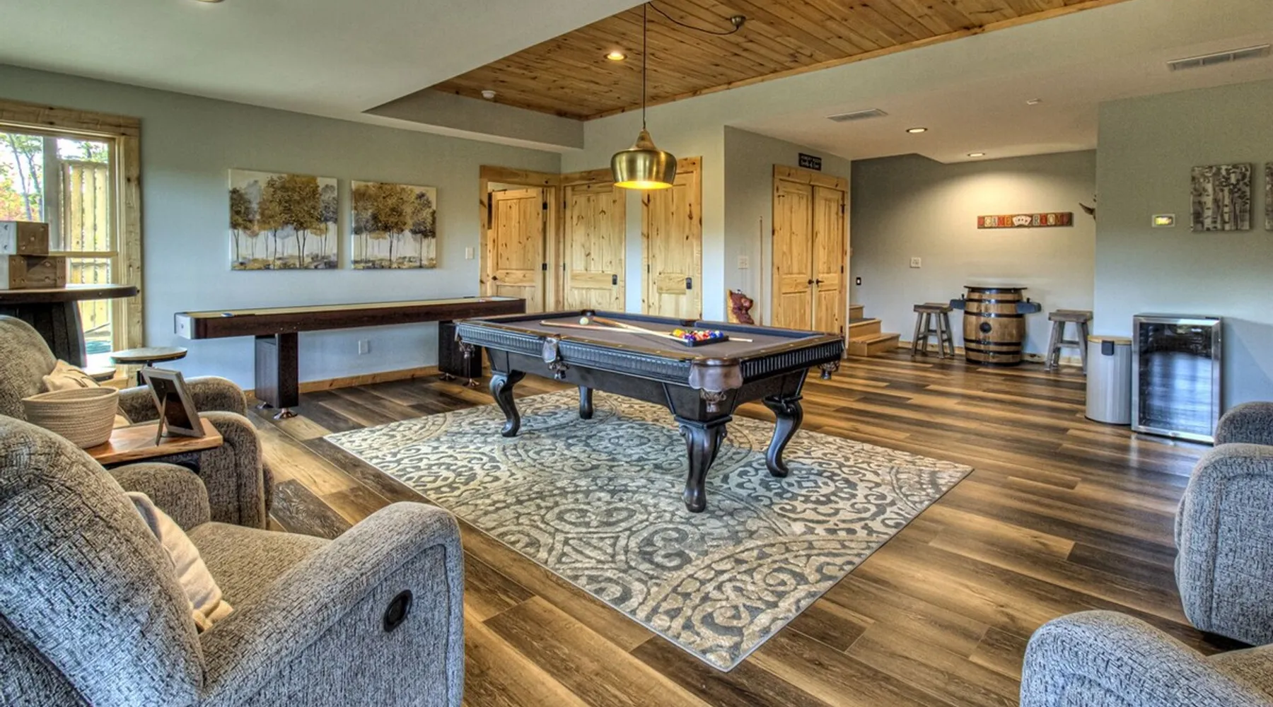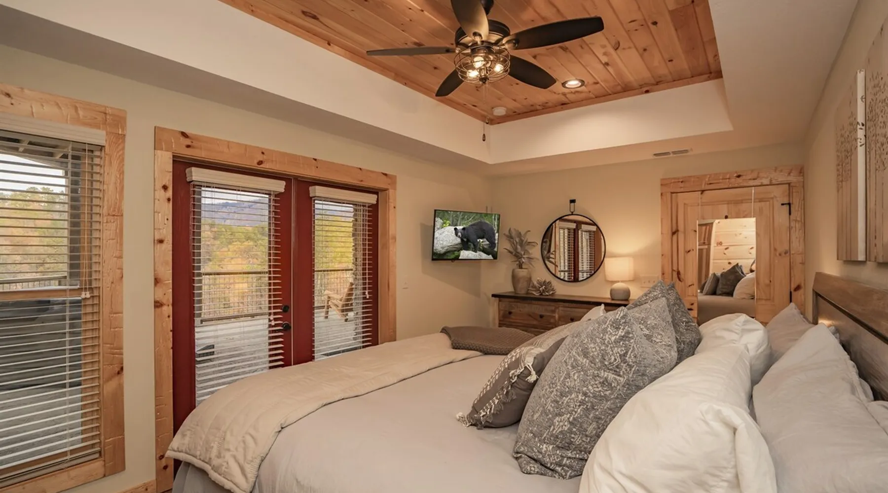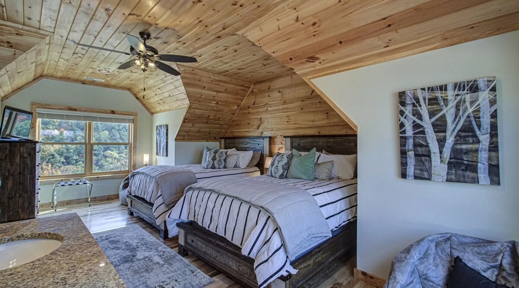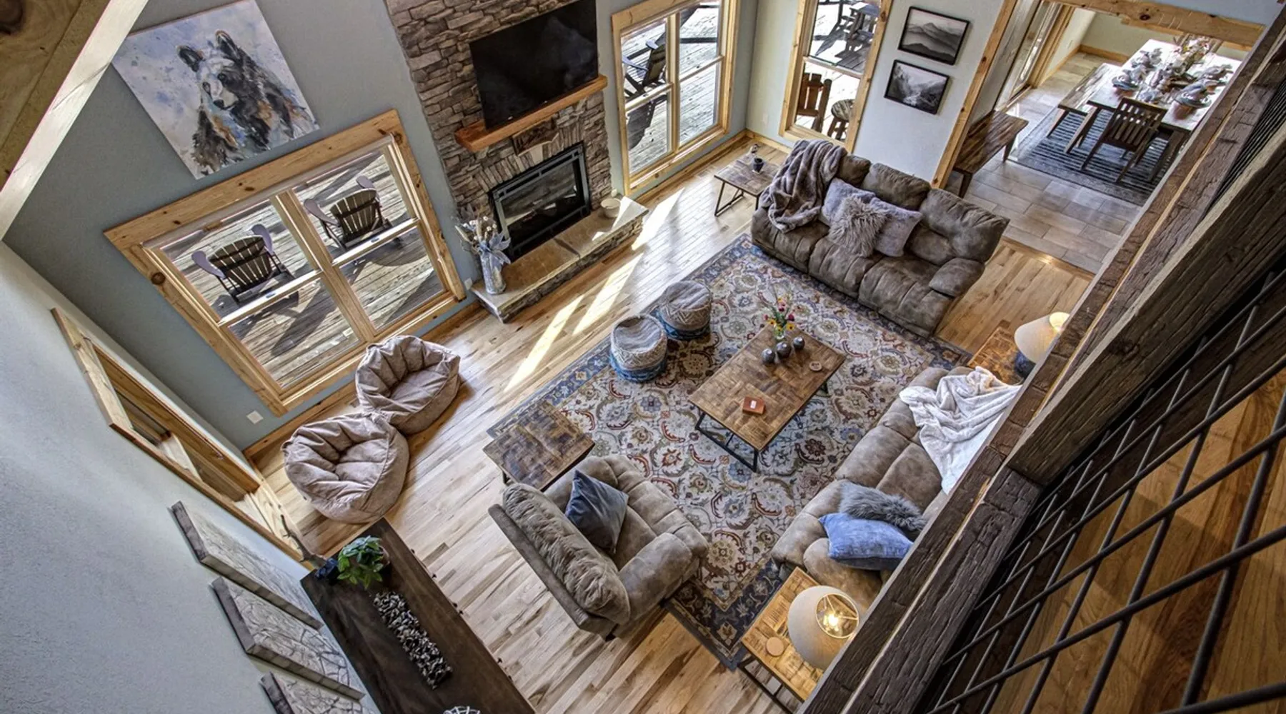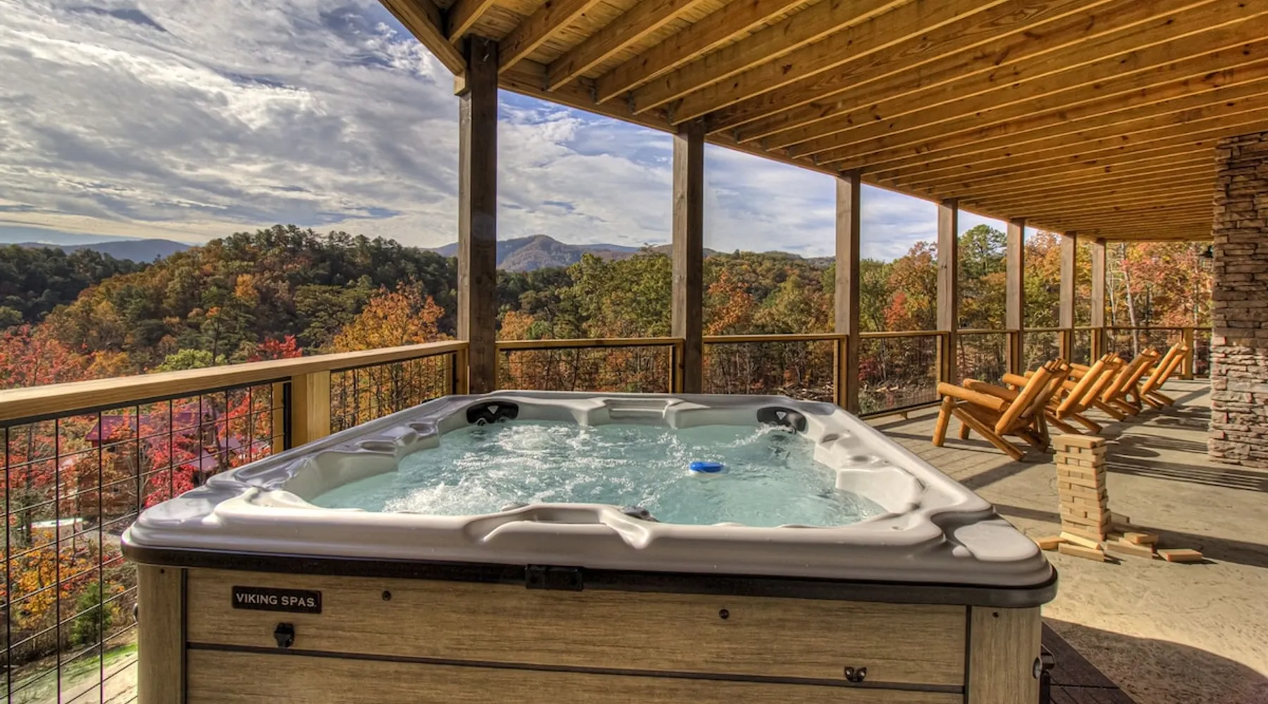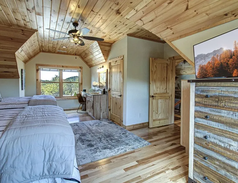 Luxury 5BR family cabin with stunning Smoky Mountain views! Located in the Thunder Mountain community near Pigeon Forge and Dollywood, this spacious retreat features a gourmet kitchen, game room, hot tub, fire pit, and over 2,000 sq. ft. of decks. Enjoy Starlink WiFi, Smart TVs, and easy access—no steep roads. Perfect for families and groups seeking comfort, fun, and unforgettable mountain views. The space 🌙 The Space Welcome to Moonlight Mountain Ridge, your luxury family retreat in the heart of the Smoky Mountains! This stunning 5-bedroom, 5.5-bath cabin combines upscale comfort with breathtaking panoramic views of Mount LeConte and the surrounding mountain range. Nestled in the prestigious Thunder Mountain community, the cabin offers easy access and no steep roads, making it ideal for families and groups seeking relaxation, adventure, and connection. 🏡 Spacious Luxury Cabin Designed for Families Step inside and you’ll be greeted by soaring ceilings, a wall of windows framing the Smoky Mountains, and warm wood finishes that blend rustic charm with modern luxury. The open-concept great room features a stone fireplace, plush seating, and a large Smart TV — the perfect space to unwind after a day of exploring. Each of the five bedrooms offers high-quality bedding and mountain-facing windows, allowing guests to wake up to stunning views. Bedroom 1 (Main Level): King bed, direct deck access Bedroom 2 (Upper Level): King bed, mountain view Bedroom 3 (Upper Level): 2 Queen beds, mountain view Bedroom 4 (Lower Level): King bed, mountain view Bedroom 5 (Lower Level): Two twin-over-full bunk beds, mountain view In total, the cabin comfortably sleeps up to 16 guests, offering the ideal setup for multi-generational families, reunions, or small groups traveling together. 🌄 Incredible Views from Every Level One of the standout features of Moonlight Mountain Ridge is the unobstructed panoramic view of the Smokies. You’ll enjoy spectacular sunrises, fiery sunsets, and star-filled nights from nearly every room. The cabin’s open layout and expansive windows ensure you’re never far from the scenery — whether you’re cooking breakfast, relaxing in the great room, or playing in the game room. 🍽️ Gourmet Kitchen & Family Dining Cook like a chef in the fully equipped gourmet kitchen, featuring granite countertops, stainless-steel appliances, and all the cookware and utensils you could need. A spacious dining area seats your entire group and overlooks the mountains — perfect for family dinners, game nights, or celebrating special occasions together. 🎮 Game Room & Entertainment The lower level is all about fun and relaxation! Challenge friends and family to a game of pool, shuffleboard, or classic arcade favorites. Settle in for movie night in the theater area with a 65" Smart TV and comfortable recliner seating. The cabin is equipped with Starlink high-speed WiFi, Dish Network, and Smart TVs in every major space, so everyone can stream, work, or relax seamlessly. 🪵 Outdoor Living at Its Best Step outside to enjoy more than 2,000 square feet of outdoor space designed to take full advantage of the mountain setting. Main deck: Rocking chairs and a covered sitting area for morning coffee or evening sunsets Lower deck: Hot tub with unobstructed views and outdoor seating Fire pit area: Wood-burning fire pit surrounded by Adirondack chairs, ideal for roasting s’mores or stargazing Yard games: Cornhole and Giant Jenga available for outdoor fun Whether it’s sunrise coffee or a night under the stars, this outdoor space truly captures the magic of the Smokies. 🛒 Convenient Grocery & Meal Delivery Skip the hassle of shopping! Instacart delivers groceries from Kroger and Publix, while DoorDash brings local favorites right to your doorstep. Enjoy the privacy of a cabin stay with the convenience of on-demand service. 📍 Prime Location Near Top Attractions Moonlight Mountain Ridge offers the best of both worlds — peace and privacy, yet close to all the action: Pigeon Forge: 4.5 mi Dollywood: 8.3 mi Gatlinburg: 11 mi Townsend: 17 mi Enjoy world-class dining, live shows, shopping, and outdoor adventures — all within a short, scenic drive. You’ll also have quick access to The Island in Pigeon Forge, Anakeesta, and the Great Smoky Mountains National Park. 🛏️ Sleep in Comfort Every bed at Moonlight Mountain Ridge features upgraded plush mattresses and high-quality linens to ensure a restful night’s sleep. With five bedrooms and five and a half baths, everyone in your group has plenty of room and privacy. 💻 Smart Home & Connectivity The cabin is equipped with Starlink Internet for fast, reliable WiFi that supports streaming, video calls, and remote work. Each TV is a Smart TV, so guests can log into their favorite streaming services. 🔥 Thoughtful Touches & Family Comfort We’ve designed this cabin to make every guest feel right at home. You’ll find thoughtful extras like: Washer and dryer with detergent provided Iron and ironing board Hair dryers in every bathroom Starter supplies (toilet paper, paper towels, soaps, trash bags, coffee) Pack ’n Play and high chair available upon request 🧭 Explore the Area Whether you’re craving adventure or relaxation, you’ll find it nearby: Great Smoky Mountains National Park: Endless hiking trails, waterfalls, and scenic drives Dollywood: Family fun, rides, and live entertainment The Island in Pigeon Forge: Shopping, dining, and attractions for all ages Ober Mountain: Skiing, tubing, and alpine adventures Townsend & Foothills Parkway: Peaceful drives and hidden gems off the beaten path 🧺 Laundry & Supplies A full-size washer and dryer are available for guest use, along with laundry detergent and essentials. ✨ Why Guests Love Moonlight Mountain Ridge ✔ Panoramic mountain views from nearly every room ✔ Spacious decks, hot tub, and fire pit for outdoor enjoyment ✔ Game room & theater area for all-ages entertainme