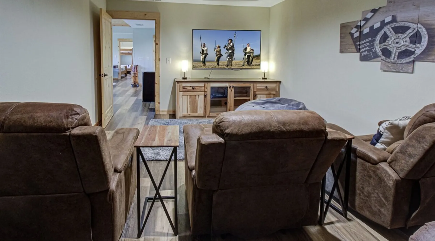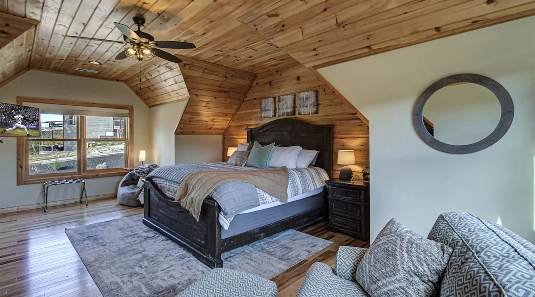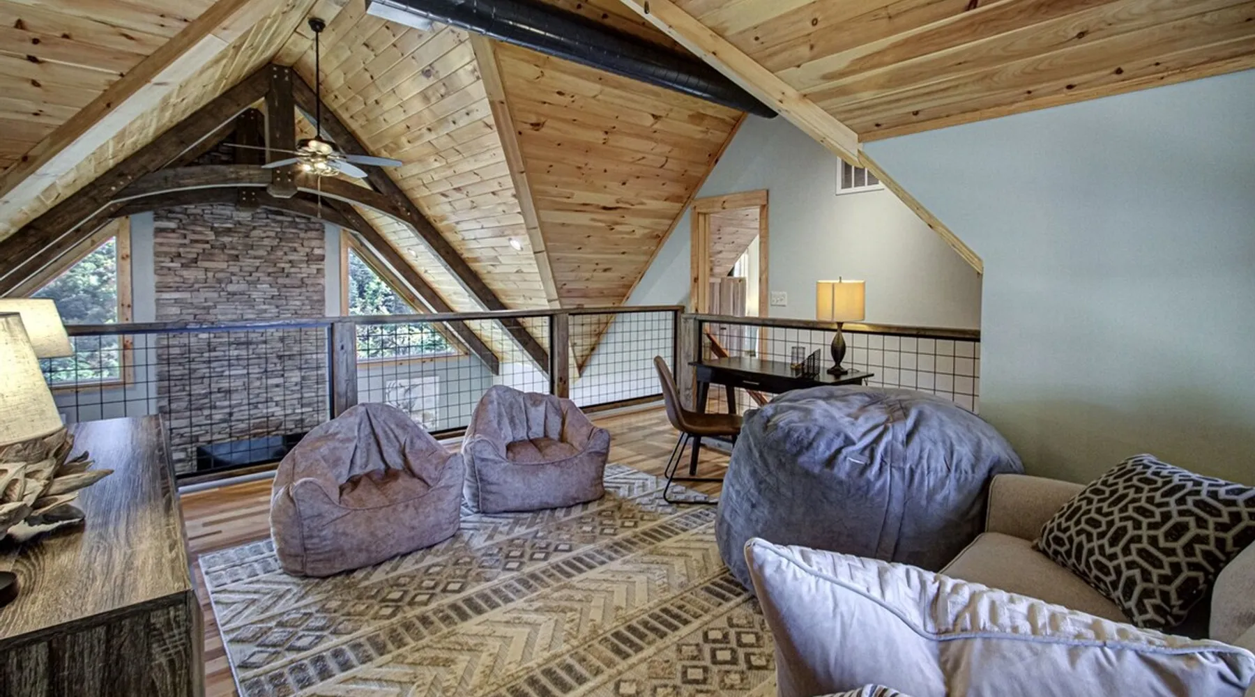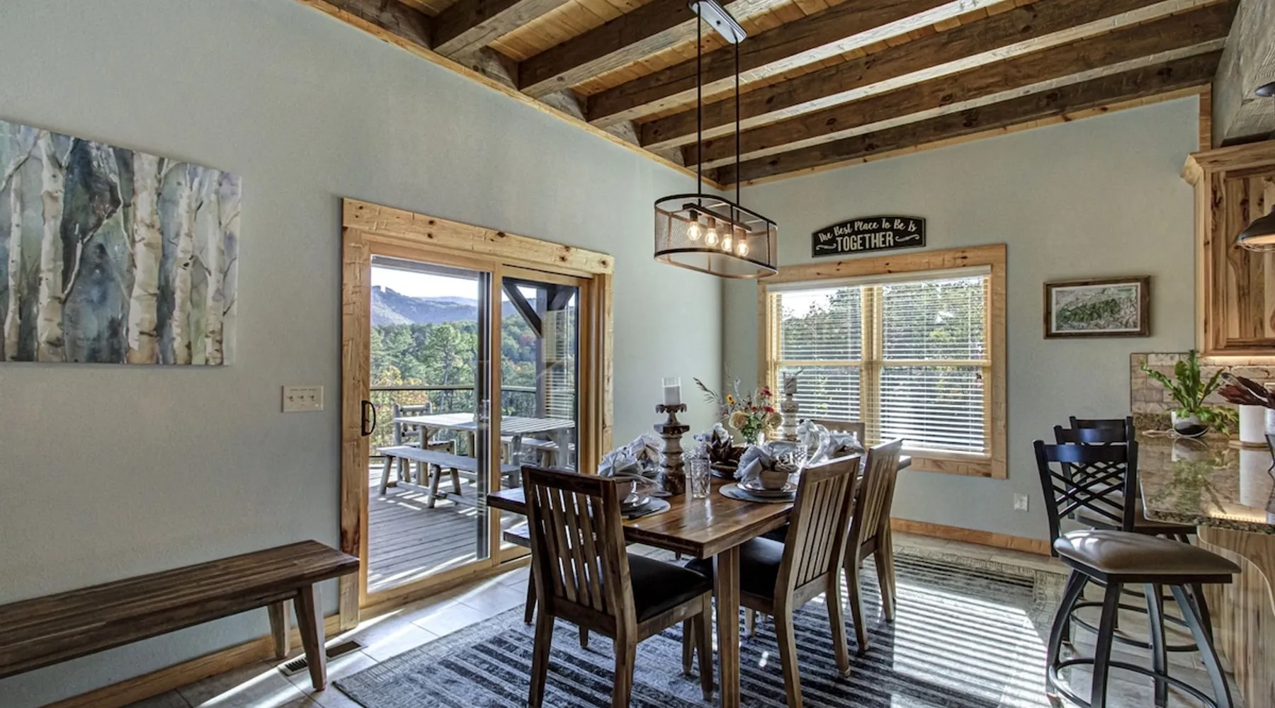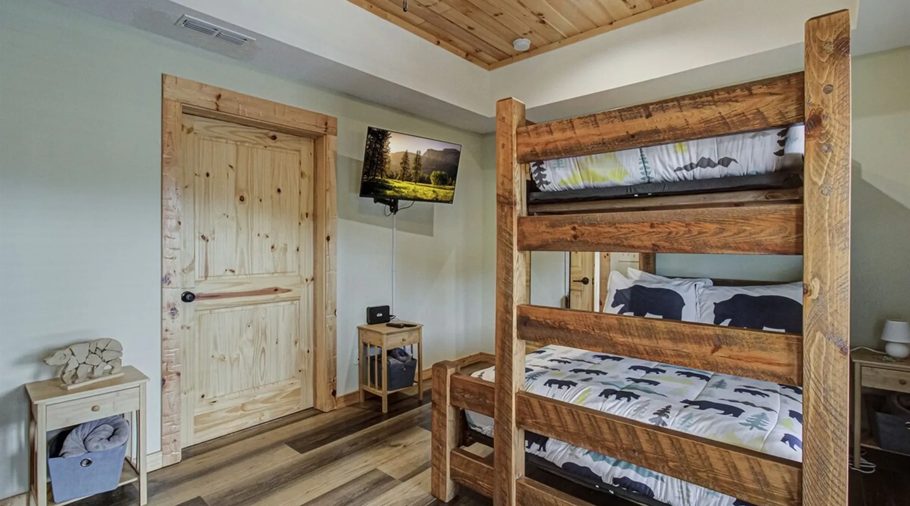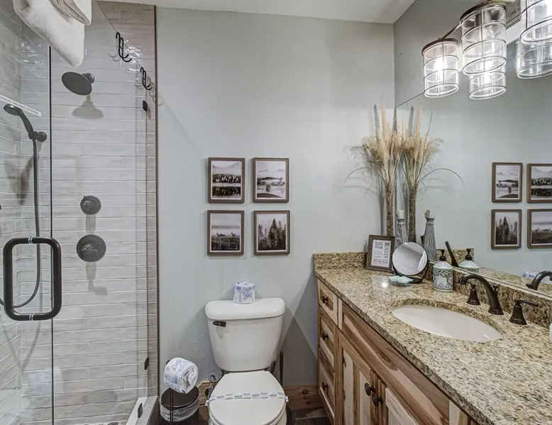 Luxury 5BR family cabin with stunning Smoky Mountain views! Located in the Thunder Mountain community near Pigeon Forge and Dollywood, this spacious retreat features a gourmet kitchen, game room, hot tub, fire pit, and over 2,000 sq. ft. of decks. Enjoy Starlink WiFi, Smart TVs, and easy access—no steep roads. Perfect for families and groups seeking comfort, fun, and unforgettable mountain views. The space 🌙 The Space Welcome to Moonlight Mountain Ridge, your luxury family retreat in the heart of the Smoky Mountains! This stunning 5-bedroom, 5.5-bath cabin combines upscale comfort with breathtaking panoramic views of Mount LeConte and the surrounding mountain range. Nestled in the prestigious Thunder Mountain community, the cabin offers easy access and no steep roads, making it ideal for families and groups seeking relaxation, adventure, and connection. 🏡 Spacious Luxury Cabin Designed for Families Step inside and you’ll be greeted by soaring ceilings, a wall of windows framing the Smoky Mountains, and warm wood finishes that blend rustic charm with modern luxury. The open-concept great room features a stone fireplace, plush seating, and a large Smart TV — the perfect space to unwind after a day of exploring. Each of the five bedrooms offers high-quality bedding and mountain-facing windows, allowing guests to wake up to stunning views. Bedroom 1 (Main Level): King bed, direct deck access Bedroom 2 (Upper Level): King bed, mountain view Bedroom 3 (Upper Level): 2 Queen beds, mountain view Bedroom 4 (Lower Level): King bed, mountain view Bedroom 5 (Lower Level): Two twin-over-full bunk beds, mountain view In total, the cabin comfortably sleeps up to 16 guests, offering the ideal setup for multi-generational families, reunions, or small groups traveling together. 🌄 Incredible Views from Every Level One of the standout features of Moonlight Mountain Ridge is the unobstructed panoramic view of the Smokies. You’ll enjoy spectacular sunrises, fiery sunsets, and star-filled nights from nearly every room. The cabin’s open layout and expansive windows ensure you’re never far from the scenery — whether you’re cooking breakfast, relaxing in the great room, or playing in the game room. 🍽️ Gourmet Kitchen & Family Dining Cook like a chef in the fully equipped gourmet kitchen, featuring granite countertops, stainless-steel appliances, and all the cookware and utensils you could need. A spacious dining area seats your entire group and overlooks the mountains — perfect for family dinners, game nights, or celebrating special occasions together. 🎮 Game Room & Entertainment The lower level is all about fun and relaxation! Challenge friends and family to a game of pool, shuffleboard, or classic arcade favorites. Settle in for movie night in the theater area with a 65" Smart TV and comfortable recliner seating. The cabin is equipped with Starlink high-speed WiFi, Dish Network, and Smart TVs in every major space, so everyone can stream, work, or relax seamlessly. 🪵 Outdoor Living at Its Best Step outside to enjoy more than 2,000 square feet of outdoor space designed to take full advantage of the mountain setting. Main deck: Rocking chairs and a covered sitting area for morning coffee or evening sunsets Lower deck: Hot tub with unobstructed views and outdoor seating Fire pit area: Wood-burning fire pit surrounded by Adirondack chairs, ideal for roasting s’mores or stargazing Yard games: Cornhole and Giant Jenga available for outdoor fun Whether it’s sunrise coffee or a night under the stars, this outdoor space truly captures the magic of the Smokies. 🛒 Convenient Grocery & Meal Delivery Skip the hassle of shopping! Instacart delivers groceries from Kroger and Publix, while DoorDash brings local favorites right to your doorstep. Enjoy the privacy of a cabin stay with the convenience of on-demand service. 📍 Prime Location Near Top Attractions Moonlight Mountain Ridge offers the best of both worlds — peace and privacy, yet close to all the action: Pigeon Forge: 4.5 mi Dollywood: 8.3 mi Gatlinburg: 11 mi Townsend: 17 mi Enjoy world-class dining, live shows, shopping, and outdoor adventures — all within a short, scenic drive. You’ll also have quick access to The Island in Pigeon Forge, Anakeesta, and the Great Smoky Mountains National Park. 🛏️ Sleep in Comfort Every bed at Moonlight Mountain Ridge features upgraded plush mattresses and high-quality linens to ensure a restful night’s sleep. With five bedrooms and five and a half baths, everyone in your group has plenty of room and privacy. 💻 Smart Home & Connectivity The cabin is equipped with Starlink Internet for fast, reliable WiFi that supports streaming, video calls, and remote work. Each TV is a Smart TV, so guests can log into their favorite streaming services. 🔥 Thoughtful Touches & Family Comfort We’ve designed this cabin to make every guest feel right at home. You’ll find thoughtful extras like: Washer and dryer with detergent provided Iron and ironing board Hair dryers in every bathroom Starter supplies (toilet paper, paper towels, soaps, trash bags, coffee) Pack ’n Play and high chair available upon request 🧭 Explore the Area Whether you’re craving adventure or relaxation, you’ll find it nearby: Great Smoky Mountains National Park: Endless hiking trails, waterfalls, and scenic drives Dollywood: Family fun, rides, and live entertainment The Island in Pigeon Forge: Shopping, dining, and attractions for all ages Ober Mountain: Skiing, tubing, and alpine adventures Townsend & Foothills Parkway: Peaceful drives and hidden gems off the beaten path 🧺 Laundry & Supplies A full-size washer and dryer are available for guest use, along with laundry detergent and essentials. ✨ Why Guests Love Moonlight Mountain Ridge ✔ Panoramic mountain views from nearly every room ✔ Spacious decks, hot tub, and fire pit for outdoor enjoyment ✔ Game room & theater area for all-ages entertainme