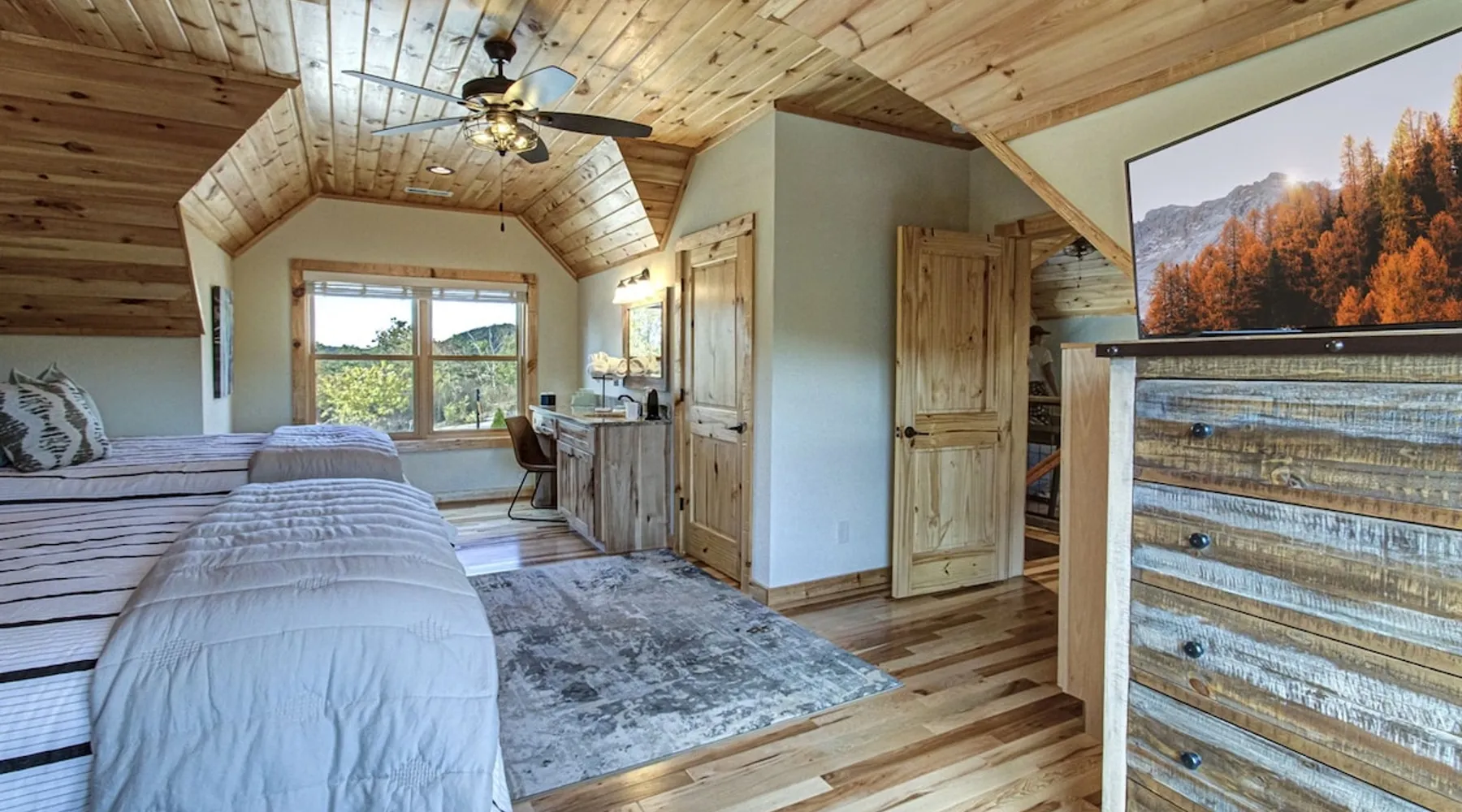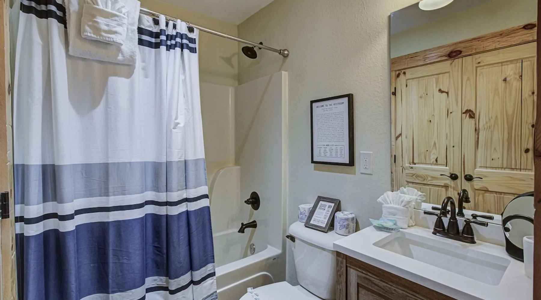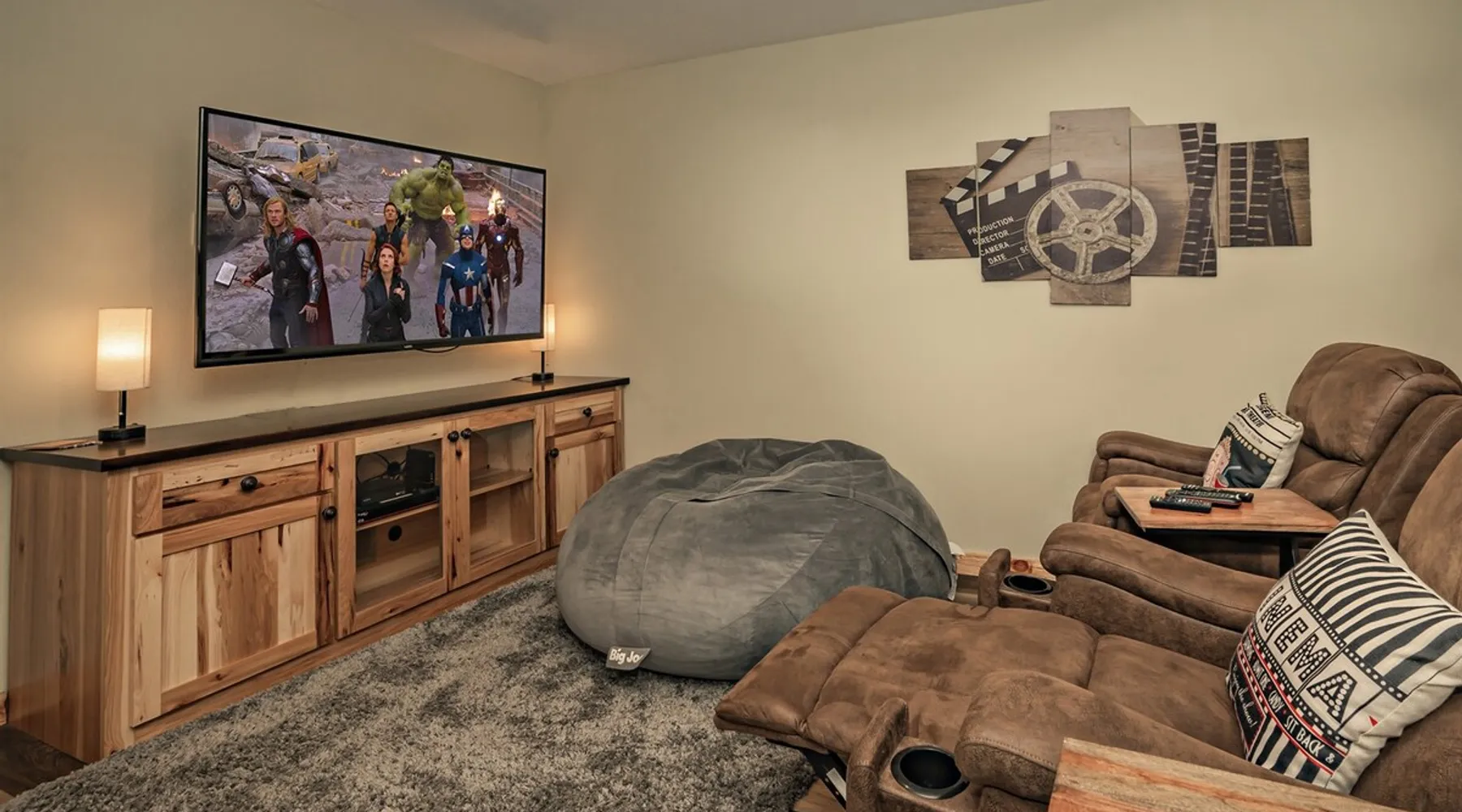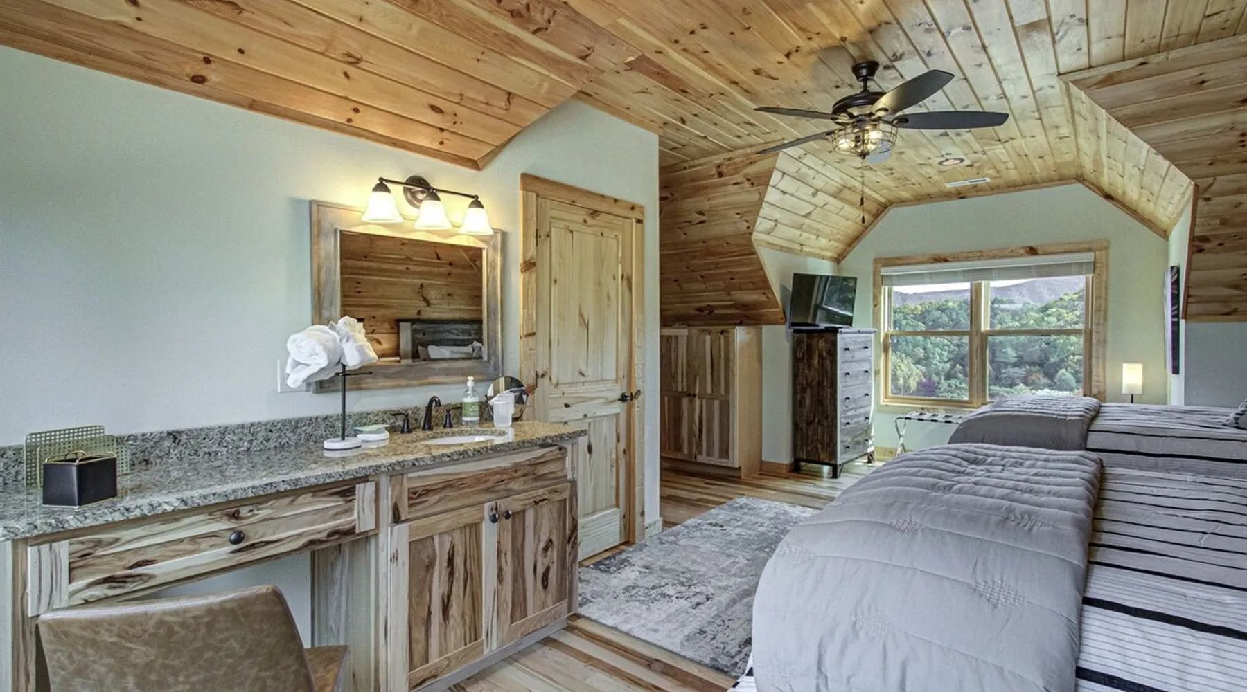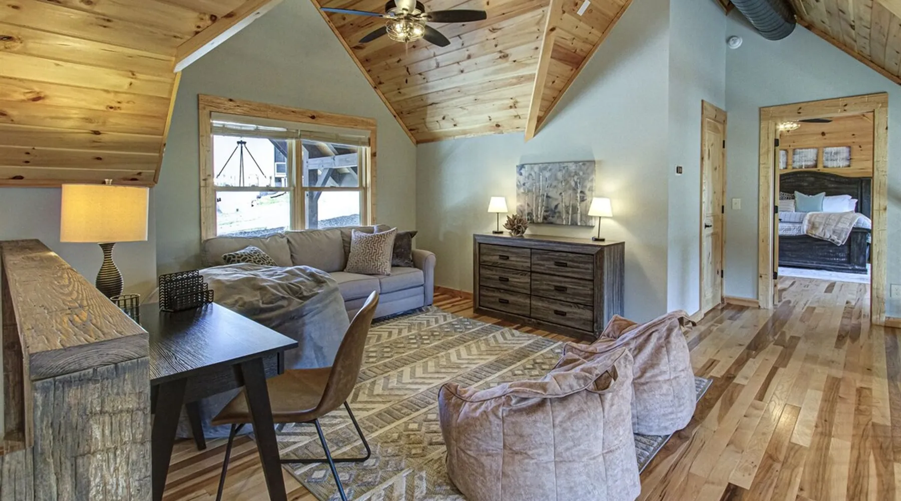 Luxury 5BR family cabin with stunning Smoky Mountain views! Located in the Thunder Mountain community near Pigeon Forge and Dollywood, this spacious retreat features a gourmet kitchen, game room, hot tub, fire pit, and over 2,000 sq. ft. of decks. Enjoy Starlink WiFi, Smart TVs, and easy access—no steep roads. Perfect for families and groups seeking comfort, fun, and unforgettable mountain views. The space 🌙 The Space Welcome to Moonlight Mountain Ridge, your luxury family retreat in the heart of the Smoky Mountains! This stunning 5-bedroom, 5.5-bath cabin combines upscale comfort with breathtaking panoramic views of Mount LeConte and the surrounding mountain range. Nestled in the prestigious Thunder Mountain community, the cabin offers easy access and no steep roads, making it ideal for families and groups seeking relaxation, adventure, and connection. 🏡 Spacious Luxury Cabin Designed for Families Step inside and you’ll be greeted by soaring ceilings, a wall of windows framing the Smoky Mountains, and warm wood finishes that blend rustic charm with modern luxury. The open-concept great room features a stone fireplace, plush seating, and a large Smart TV — the perfect space to unwind after a day of exploring. Each of the five bedrooms offers high-quality bedding and mountain-facing windows, allowing guests to wake up to stunning views. Bedroom 1 (Main Level): King bed, direct deck access Bedroom 2 (Upper Level): King bed, mountain view Bedroom 3 (Upper Level): 2 Queen beds, mountain view Bedroom 4 (Lower Level): King bed, mountain view Bedroom 5 (Lower Level): Two twin-over-full bunk beds, mountain view In total, the cabin comfortably sleeps up to 16 guests, offering the ideal setup for multi-generational families, reunions, or small groups traveling together. 🌄 Incredible Views from Every Level One of the standout features of Moonlight Mountain Ridge is the unobstructed panoramic view of the Smokies. You’ll enjoy spectacular sunrises, fiery sunsets, and star-filled nights from nearly every room. The cabin’s open layout and expansive windows ensure you’re never far from the scenery — whether you’re cooking breakfast, relaxing in the great room, or playing in the game room. 🍽️ Gourmet Kitchen & Family Dining Cook like a chef in the fully equipped gourmet kitchen, featuring granite countertops, stainless-steel appliances, and all the cookware and utensils you could need. A spacious dining area seats your entire group and overlooks the mountains — perfect for family dinners, game nights, or celebrating special occasions together. 🎮 Game Room & Entertainment The lower level is all about fun and relaxation! Challenge friends and family to a game of pool, shuffleboard, or classic arcade favorites. Settle in for movie night in the theater area with a 65" Smart TV and comfortable recliner seating. The cabin is equipped with Starlink high-speed WiFi, Dish Network, and Smart TVs in every major space, so everyone can stream, work, or relax seamlessly. 🪵 Outdoor Living at Its Best Step outside to enjoy more than 2,000 square feet of outdoor space designed to take full advantage of the mountain setting. Main deck: Rocking chairs and a covered sitting area for morning coffee or evening sunsets Lower deck: Hot tub with unobstructed views and outdoor seating Fire pit area: Wood-burning fire pit surrounded by Adirondack chairs, ideal for roasting s’mores or stargazing Yard games: Cornhole and Giant Jenga available for outdoor fun Whether it’s sunrise coffee or a night under the stars, this outdoor space truly captures the magic of the Smokies. 🛒 Convenient Grocery & Meal Delivery Skip the hassle of shopping! Instacart delivers groceries from Kroger and Publix, while DoorDash brings local favorites right to your doorstep. Enjoy the privacy of a cabin stay with the convenience of on-demand service. 📍 Prime Location Near Top Attractions Moonlight Mountain Ridge offers the best of both worlds — peace and privacy, yet close to all the action: Pigeon Forge: 4.5 mi Dollywood: 8.3 mi Gatlinburg: 11 mi Townsend: 17 mi Enjoy world-class dining, live shows, shopping, and outdoor adventures — all within a short, scenic drive. You’ll also have quick access to The Island in Pigeon Forge, Anakeesta, and the Great Smoky Mountains National Park. 🛏️ Sleep in Comfort Every bed at Moonlight Mountain Ridge features upgraded plush mattresses and high-quality linens to ensure a restful night’s sleep. With five bedrooms and five and a half baths, everyone in your group has plenty of room and privacy. 💻 Smart Home & Connectivity The cabin is equipped with Starlink Internet for fast, reliable WiFi that supports streaming, video calls, and remote work. Each TV is a Smart TV, so guests can log into their favorite streaming services. 🔥 Thoughtful Touches & Family Comfort We’ve designed this cabin to make every guest feel right at home. You’ll find thoughtful extras like: Washer and dryer with detergent provided Iron and ironing board Hair dryers in every bathroom Starter supplies (toilet paper, paper towels, soaps, trash bags, coffee) Pack ’n Play and high chair available upon request 🧭 Explore the Area Whether you’re craving adventure or relaxation, you’ll find it nearby: Great Smoky Mountains National Park: Endless hiking trails, waterfalls, and scenic drives Dollywood: Family fun, rides, and live entertainment The Island in Pigeon Forge: Shopping, dining, and attractions for all ages Ober Mountain: Skiing, tubing, and alpine adventures Townsend & Foothills Parkway: Peaceful drives and hidden gems off the beaten path 🧺 Laundry & Supplies A full-size washer and dryer are available for guest use, along with laundry detergent and essentials. ✨ Why Guests Love Moonlight Mountain Ridge ✔ Panoramic mountain views from nearly every room ✔ Spacious decks, hot tub, and fire pit for outdoor enjoyment ✔ Game room & theater area for all-ages entertainme