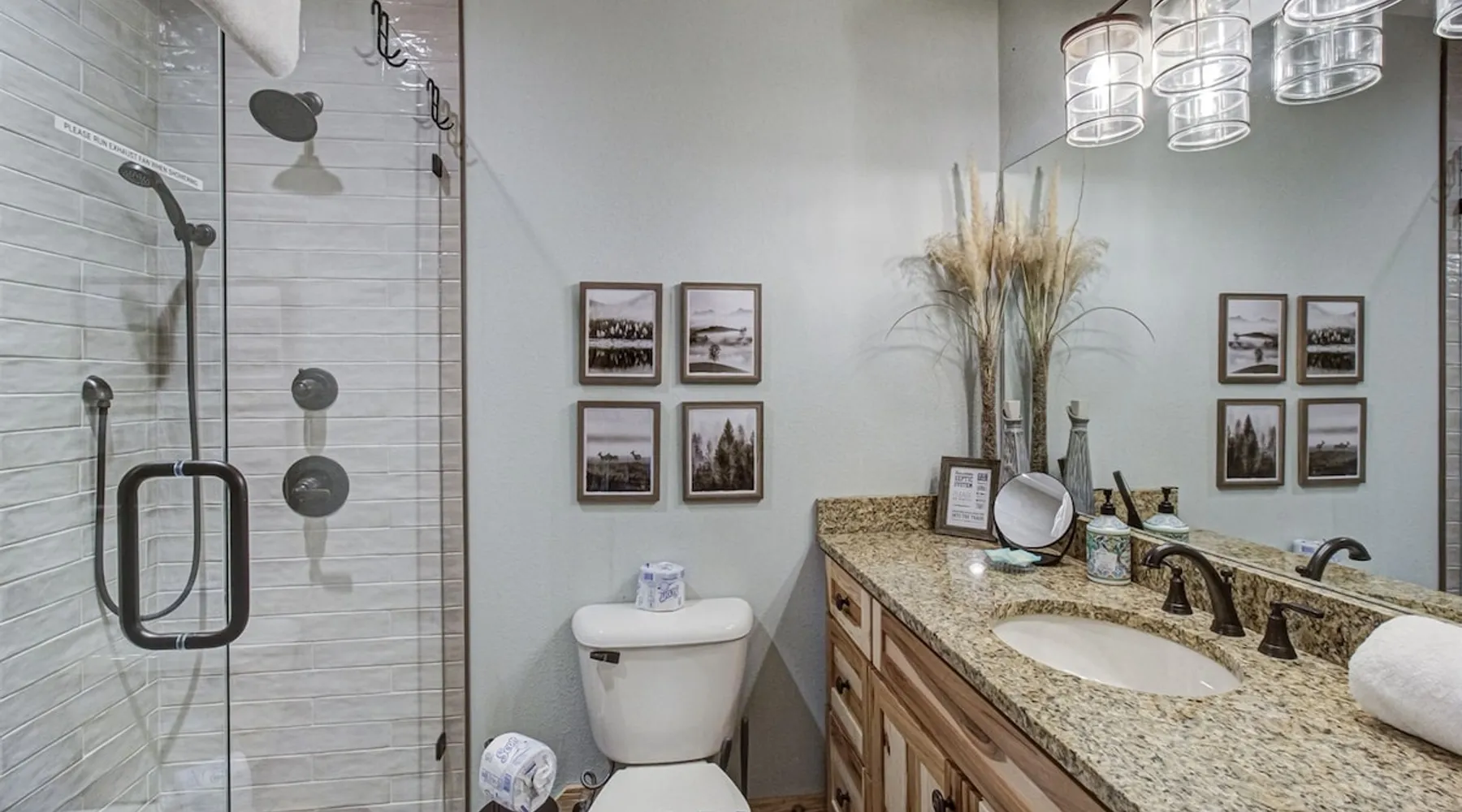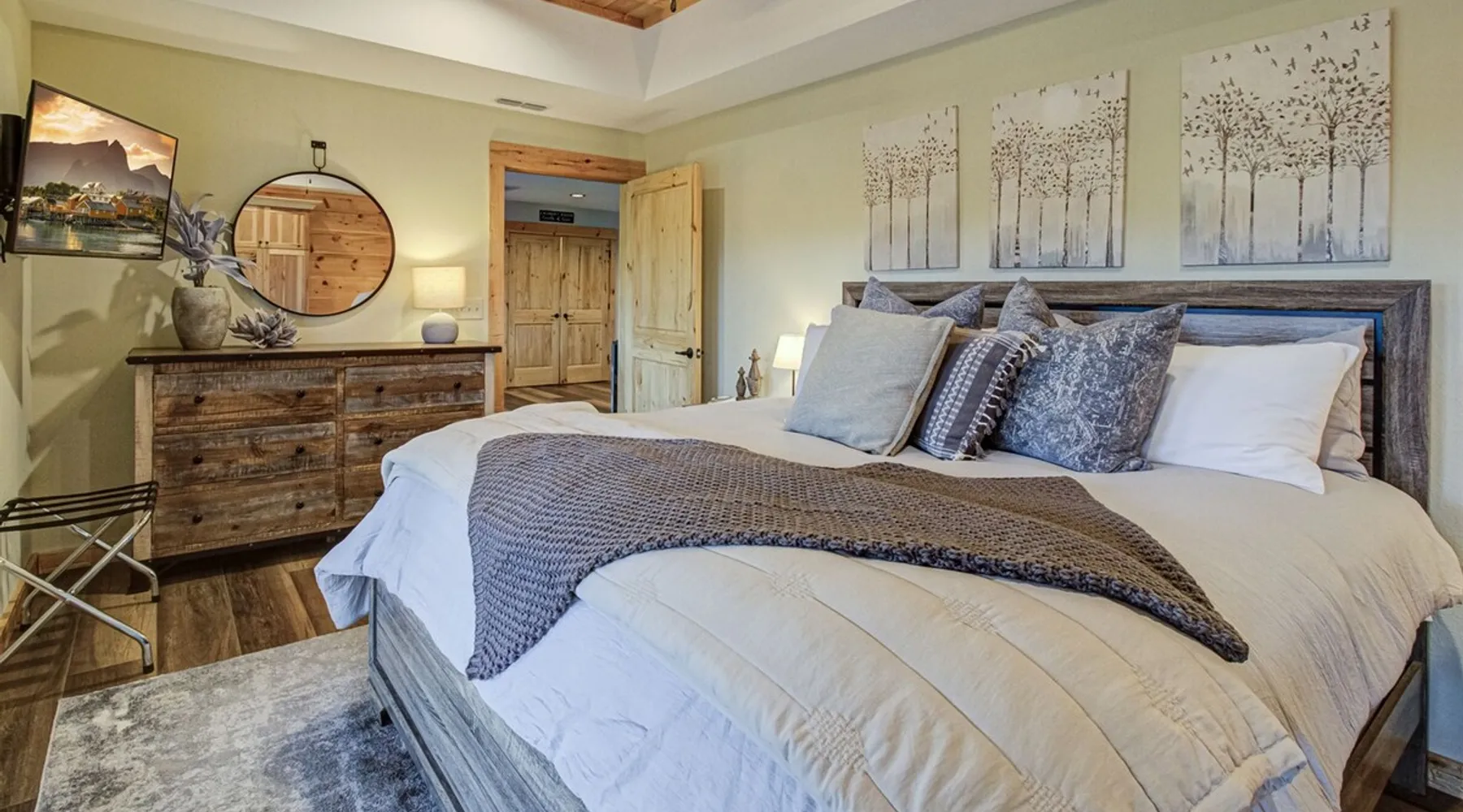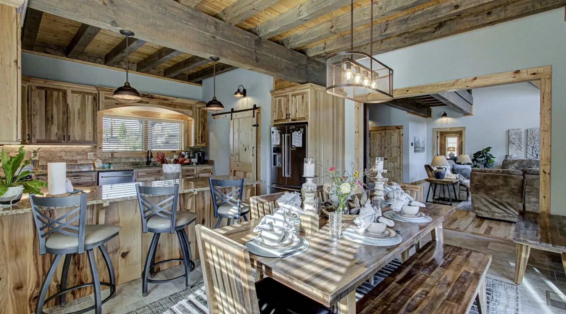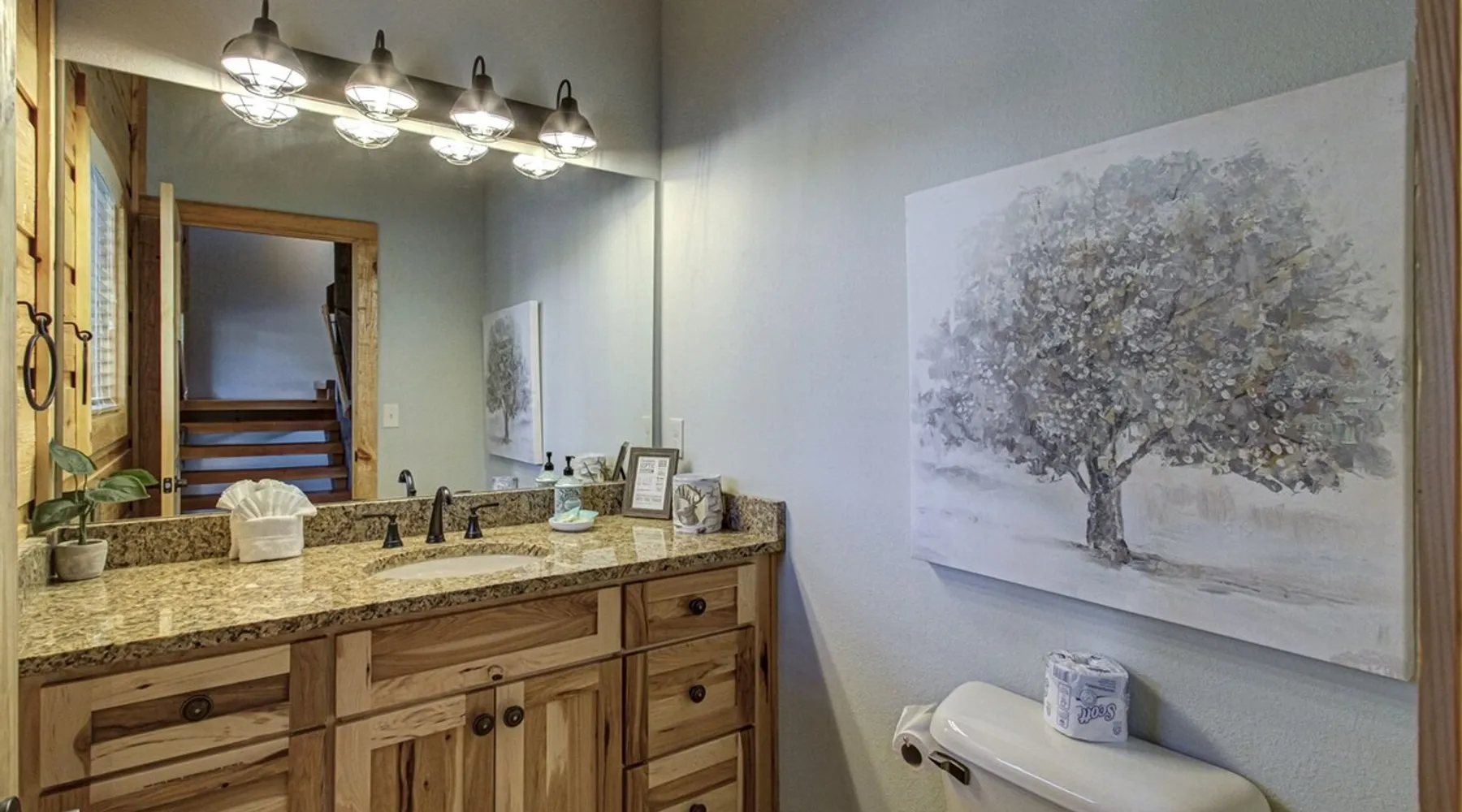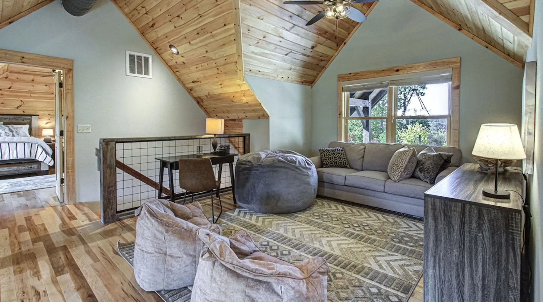 Luxury 5BR family cabin with stunning Smoky Mountain views! Located in the Thunder Mountain community near Pigeon Forge and Dollywood, this spacious retreat features a gourmet kitchen, game room, hot tub, fire pit, and over 2,000 sq. ft. of decks. Enjoy Starlink WiFi, Smart TVs, and easy access—no steep roads. Perfect for families and groups seeking comfort, fun, and unforgettable mountain views. The space 🌙 The Space Welcome to Moonlight Mountain Ridge, your luxury family retreat in the heart of the Smoky Mountains! This stunning 5-bedroom, 5.5-bath cabin combines upscale comfort with breathtaking panoramic views of Mount LeConte and the surrounding mountain range. Nestled in the prestigious Thunder Mountain community, the cabin offers easy access and no steep roads, making it ideal for families and groups seeking relaxation, adventure, and connection. 🏡 Spacious Luxury Cabin Designed for Families Step inside and you’ll be greeted by soaring ceilings, a wall of windows framing the Smoky Mountains, and warm wood finishes that blend rustic charm with modern luxury. The open-concept great room features a stone fireplace, plush seating, and a large Smart TV — the perfect space to unwind after a day of exploring. Each of the five bedrooms offers high-quality bedding and mountain-facing windows, allowing guests to wake up to stunning views. Bedroom 1 (Main Level): King bed, direct deck access Bedroom 2 (Upper Level): King bed, mountain view Bedroom 3 (Upper Level): 2 Queen beds, mountain view Bedroom 4 (Lower Level): King bed, mountain view Bedroom 5 (Lower Level): Two twin-over-full bunk beds, mountain view In total, the cabin comfortably sleeps up to 16 guests, offering the ideal setup for multi-generational families, reunions, or small groups traveling together. 🌄 Incredible Views from Every Level One of the standout features of Moonlight Mountain Ridge is the unobstructed panoramic view of the Smokies. You’ll enjoy spectacular sunrises, fiery sunsets, and star-filled nights from nearly every room. The cabin’s open layout and expansive windows ensure you’re never far from the scenery — whether you’re cooking breakfast, relaxing in the great room, or playing in the game room. 🍽️ Gourmet Kitchen & Family Dining Cook like a chef in the fully equipped gourmet kitchen, featuring granite countertops, stainless-steel appliances, and all the cookware and utensils you could need. A spacious dining area seats your entire group and overlooks the mountains — perfect for family dinners, game nights, or celebrating special occasions together. 🎮 Game Room & Entertainment The lower level is all about fun and relaxation! Challenge friends and family to a game of pool, shuffleboard, or classic arcade favorites. Settle in for movie night in the theater area with a 65" Smart TV and comfortable recliner seating. The cabin is equipped with Starlink high-speed WiFi, Dish Network, and Smart TVs in every major space, so everyone can stream, work, or relax seamlessly. 🪵 Outdoor Living at Its Best Step outside to enjoy more than 2,000 square feet of outdoor space designed to take full advantage of the mountain setting. Main deck: Rocking chairs and a covered sitting area for morning coffee or evening sunsets Lower deck: Hot tub with unobstructed views and outdoor seating Fire pit area: Wood-burning fire pit surrounded by Adirondack chairs, ideal for roasting s’mores or stargazing Yard games: Cornhole and Giant Jenga available for outdoor fun Whether it’s sunrise coffee or a night under the stars, this outdoor space truly captures the magic of the Smokies. 🛒 Convenient Grocery & Meal Delivery Skip the hassle of shopping! Instacart delivers groceries from Kroger and Publix, while DoorDash brings local favorites right to your doorstep. Enjoy the privacy of a cabin stay with the convenience of on-demand service. 📍 Prime Location Near Top Attractions Moonlight Mountain Ridge offers the best of both worlds — peace and privacy, yet close to all the action: Pigeon Forge: 4.5 mi Dollywood: 8.3 mi Gatlinburg: 11 mi Townsend: 17 mi Enjoy world-class dining, live shows, shopping, and outdoor adventures — all within a short, scenic drive. You’ll also have quick access to The Island in Pigeon Forge, Anakeesta, and the Great Smoky Mountains National Park. 🛏️ Sleep in Comfort Every bed at Moonlight Mountain Ridge features upgraded plush mattresses and high-quality linens to ensure a restful night’s sleep. With five bedrooms and five and a half baths, everyone in your group has plenty of room and privacy. 💻 Smart Home & Connectivity The cabin is equipped with Starlink Internet for fast, reliable WiFi that supports streaming, video calls, and remote work. Each TV is a Smart TV, so guests can log into their favorite streaming services. 🔥 Thoughtful Touches & Family Comfort We’ve designed this cabin to make every guest feel right at home. You’ll find thoughtful extras like: Washer and dryer with detergent provided Iron and ironing board Hair dryers in every bathroom Starter supplies (toilet paper, paper towels, soaps, trash bags, coffee) Pack ’n Play and high chair available upon request 🧭 Explore the Area Whether you’re craving adventure or relaxation, you’ll find it nearby: Great Smoky Mountains National Park: Endless hiking trails, waterfalls, and scenic drives Dollywood: Family fun, rides, and live entertainment The Island in Pigeon Forge: Shopping, dining, and attractions for all ages Ober Mountain: Skiing, tubing, and alpine adventures Townsend & Foothills Parkway: Peaceful drives and hidden gems off the beaten path 🧺 Laundry & Supplies A full-size washer and dryer are available for guest use, along with laundry detergent and essentials. ✨ Why Guests Love Moonlight Mountain Ridge ✔ Panoramic mountain views from nearly every room ✔ Spacious decks, hot tub, and fire pit for outdoor enjoyment ✔ Game room & theater area for all-ages entertainme