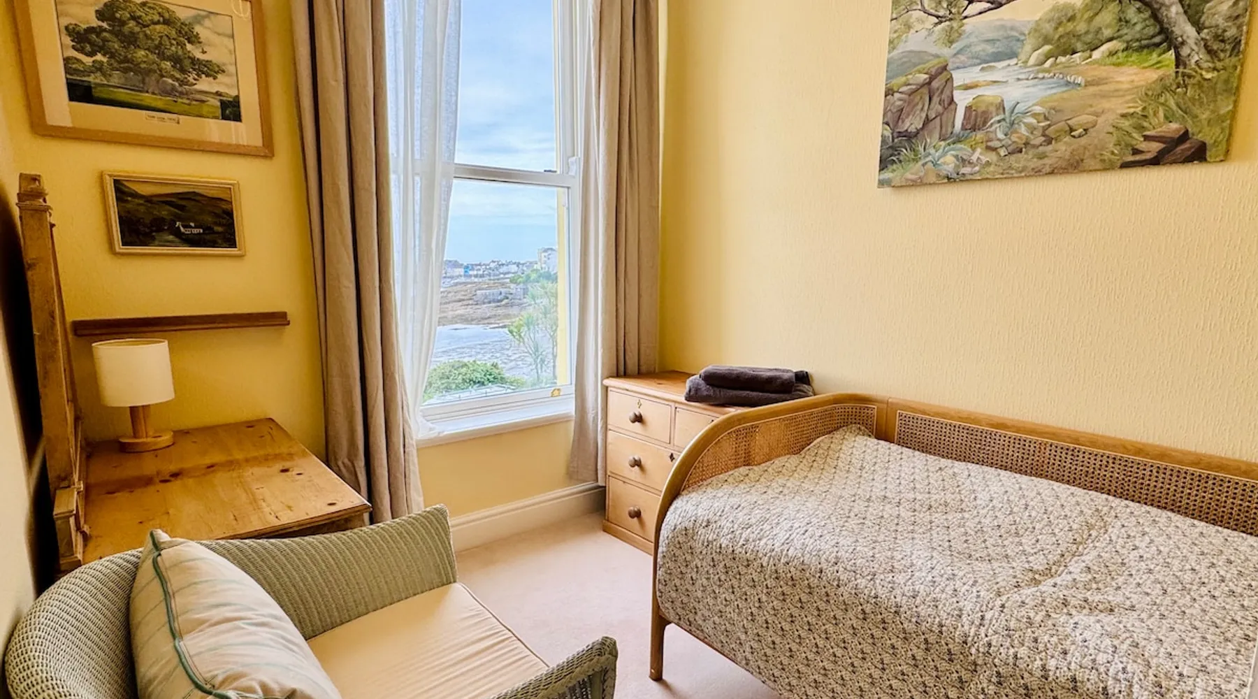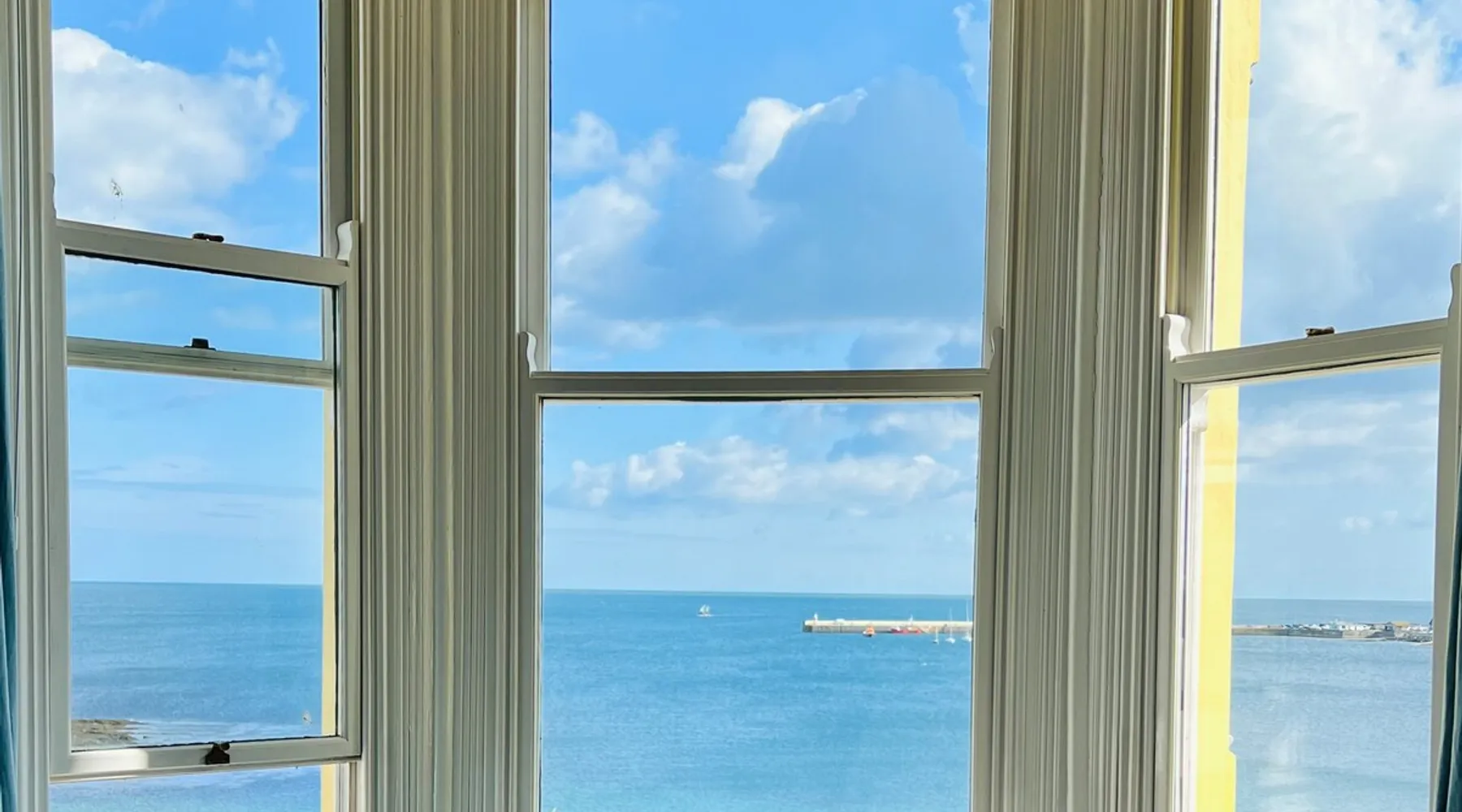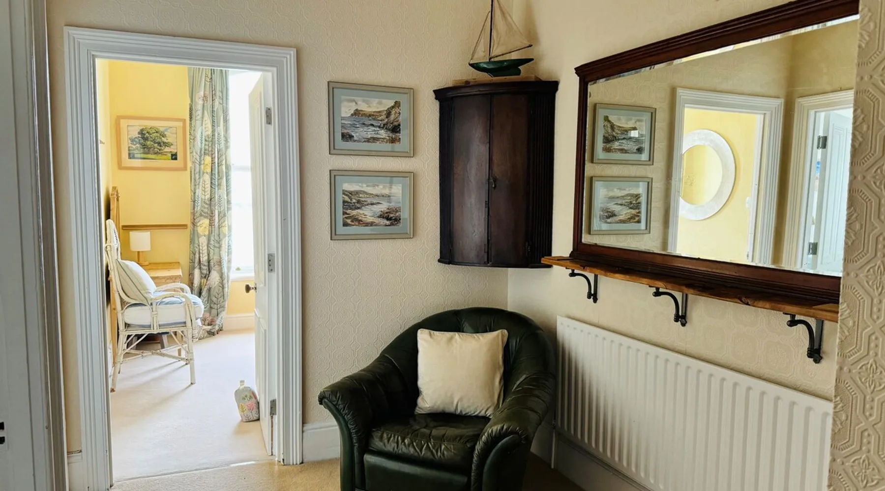 Stay by the sea on the Isle of Man. Enjoy the sea view (whatever the weather) of stunning Chapel beach, just 2 minutes stroll away. Access to coastal walks, and the beautiful setting of Port St Mary in a spacious, truly comfortable 2 storey apartment. Quality beds and linens, and all the things you need to spend time relaxing on holiday. You can book with confidence as we have achieved 5 stars Superhost with Airbnb but also 5 star Holiday Accommodation rating from Visit Isle of Man Tourism. The space Endfield House is the middle part of a large building with its own entrance set over 2 1/2 floors. A large comfortable sitting room with sea views, a dining room and separate kitchen and laundry/utility with WC make up the ground floor. The upper floor is on a split level with 3 good sized bedrooms and a single dressing room/ bedroom all with luxurious mattresses and high quality linens and towels. The master bedroom has a sea view and en-suite bathroom. There is a family bathroom too. A total of about 1600 sq ft of comfortable, welcoming, well equipped space . Guest access The whole apartment with its own front and back doors. Courtyard plus garage space beyond. Other things to note Please note: this large multi-floor apartment has an occupied apartment above on the very top floor and a holiday let basement apartment. It is not the whole building but a large central portion over 2 1/2 floors with its own entrance. So you may sometimes hear the neighbours. Also, note: The Master bedroom has a bed that’s slightly higher than usual. It’s a Hypnos base and all wool mattress. Access to Chapel Bay beach is by a sloped path leading down to the lower Promenade and then steps to the beach. 2 or 3 minutes walk. Registration Details 615500