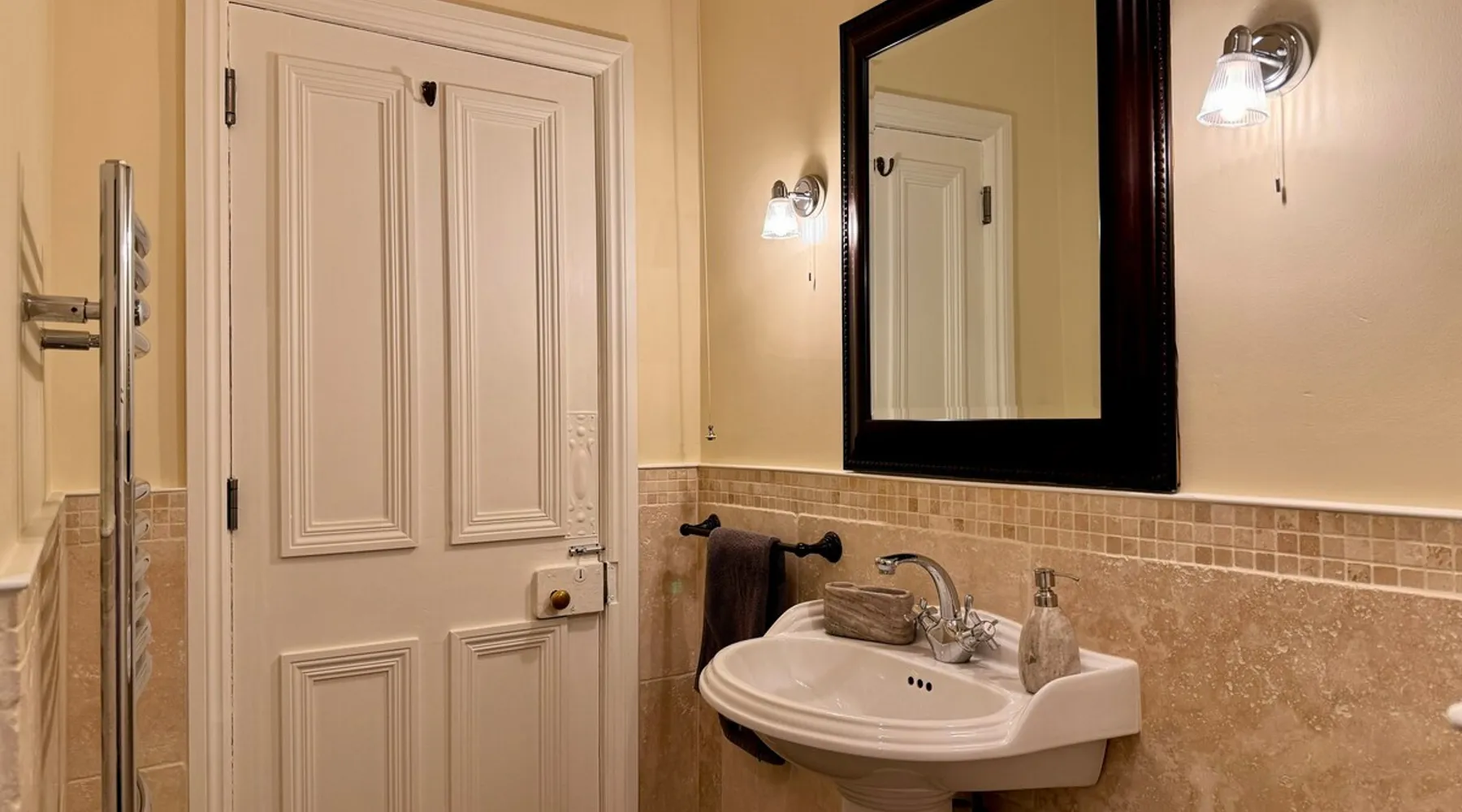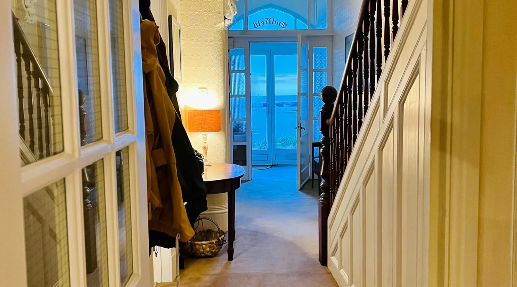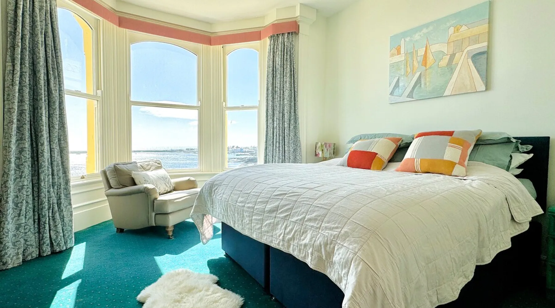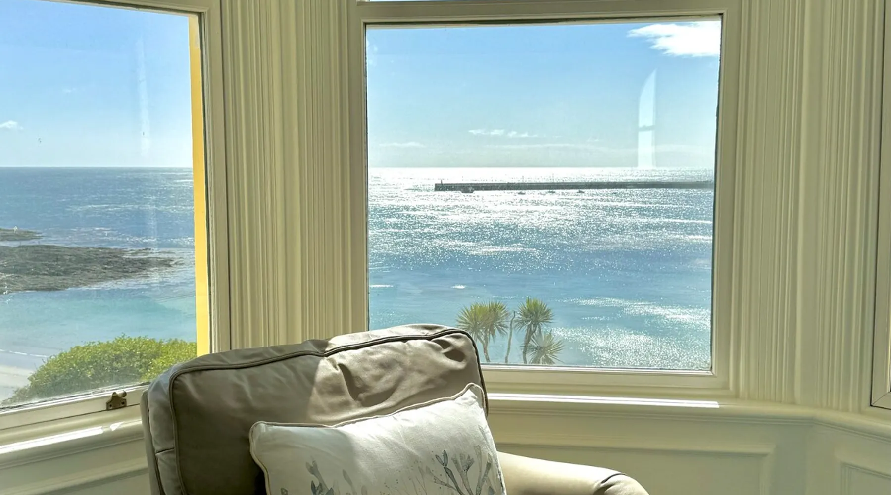 Stay by the sea on the Isle of Man. Enjoy the sea view (whatever the weather) of stunning Chapel beach, just 2 minutes stroll away. Access to coastal walks, and the beautiful setting of Port St Mary in a spacious, truly comfortable 2 storey apartment. Quality beds and linens, and all the things you need to spend time relaxing on holiday. You can book with confidence as we have achieved 5 stars Superhost with Airbnb but also 5 star Holiday Accommodation rating from Visit Isle of Man Tourism. The space Endfield House is the middle part of a large building with its own entrance set over 2 1/2 floors. A large comfortable sitting room with sea views, a dining room and separate kitchen and laundry/utility with WC make up the ground floor. The upper floor is on a split level with 3 good sized bedrooms and a single dressing room/ bedroom all with luxurious mattresses and high quality linens and towels. The master bedroom has a sea view and en-suite bathroom. There is a family bathroom too. A total of about 1600 sq ft of comfortable, welcoming, well equipped space . Guest access The whole apartment with its own front and back doors. Courtyard plus garage space beyond. Other things to note Please note: this large multi-floor apartment has an occupied apartment above on the very top floor and a holiday let basement apartment. It is not the whole building but a large central portion over 2 1/2 floors with its own entrance. So you may sometimes hear the neighbours. Also, note: The Master bedroom has a bed that’s slightly higher than usual. It’s a Hypnos base and all wool mattress. Access to Chapel Bay beach is by a sloped path leading down to the lower Promenade and then steps to the beach. 2 or 3 minutes walk. Registration Details 615500