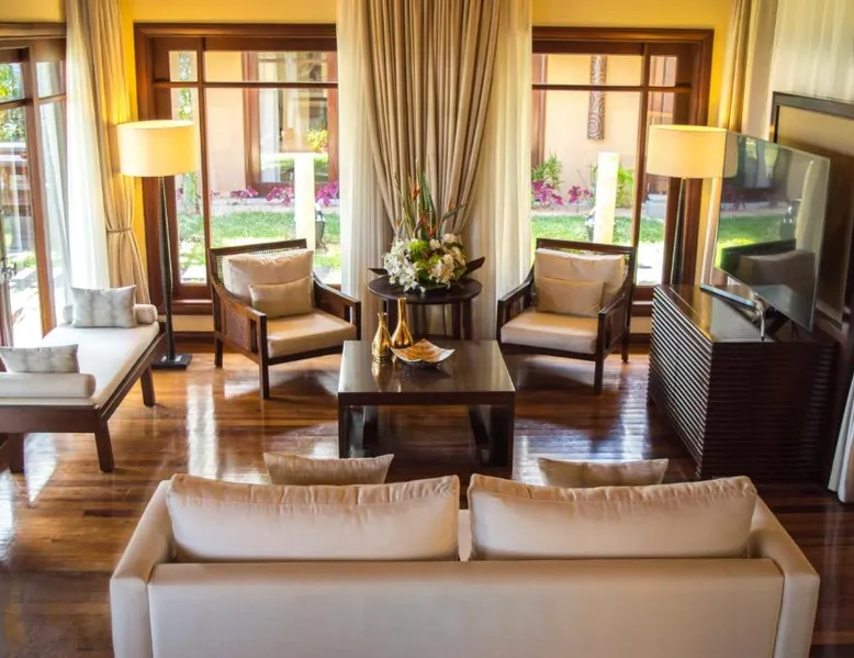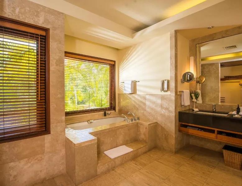 Located in the island of Mauritius, this resort is surrounded by coral reefs and dramatic mountains. Shanti Maurice - Hotel, Villas & Spa features ocean-facing luxurious villas and suites, surrounded by exotic gardens and terraces. Shanti Maurice - Hotel, Villas & Spa offers elegantly decorated suites and villas with a flat-screen cable TV. All villas have private pools and sun loungers. The hotel’s restaurant serves local dishes prepared with fresh ingredients from the ocean, the resort’s garden or the nearby farms. Beach barbecues, wok menus and special diet dishes are also available. Guests can choose from a variety of activities, including cycling, Pilates, fishing and snorkeling. They can also visit the resort’s spa or fitness center. Sir Seewoosagur Ramgoolam International Airport is 15 mi from Shanti Maurice - Hotel, Villas & Spa and car rental services are available. A tour desk and free private parking are also available. Settled in the midst of the trees in a lush, over 36 acres estate of exotic beauty, Shanti Maurice Resort & Spa is a five-star boutique lifestyle beach resort, one of the world's first of its kind. A collection of 61 Suites and Villas designed to blend in with nature and harmoniously blend with the landscape. Gain a sense of complete well-being at Shanti Spa, our 75,000 ft2 haven of pure bliss with 25 treatment rooms including dedicated Ayurveda, Yoga, Tea, and Meditation pavilions as well as a fully equipped fitness and Pilates area. Our in-house Spa Doctor offers wellness consultation, personalized wellness meal plans with our Wellness Chef, and authentic Ayurveda treatments. Tantalize your taste buds with our authentic and truly exceptional experience through up to 4 restaurants with a choice of 7 different cuisines with a leading dine-around option. Rum Shed Bar & Grill restaurant is the ideal place to enjoy grilled food and rum-based cocktail from a collection of over 250 types of rum from 36 countries. A family-style sharing menu is available as well as a large outdoor cinema experience. Indulge in our extraordinary private dining experience with our private butler, part of our Shanti Moments, overlooking the natural high waves from the Indian Ocean. Our Explorers Kids Club is spread over 2,000m2, and entertainment and daycare programs for little ones are designed to develop skills and inspire imagination. Our Kids Club welcomes our young guests from 4 months to 11.99 years. This luxurious villa features a temperature-controlled private swimming pool, deck, built-in Jacuzzi, two outdoor showers and a private dining pavilion. It has a spacious living room, plasma TV, mini-bar, Nespresso machine and tea-and-coffee-making facilities.