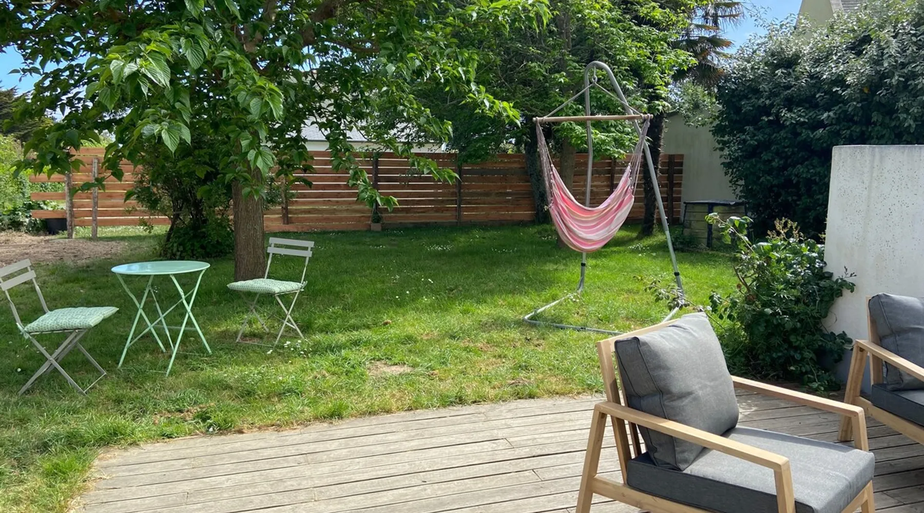 Agence Cocoonr/Book&Pay offers you this charming, typically Belle-Iloise house in the village of Borlagadec in the commune of Bangor, less than a kilometer from the beach. With a surface area of 100 m², it can accommodate up to 6 travelers. It comprises a 40 m² living room, an open-plan fitted kitchen, three bedrooms, a shower room and a 1,000 m² garden. Sheets and towels included. We're waiting for you! The space The accommodation is composed as follows: On the first floor: - A living room of 40 m² with TV, Wifi, sofa and dining area. - An open kitchen equipped with electric kettle, oven, microwave oven, toaster, dishwasher, cooking plates... - A shower room with shower, separate toilet at the end of the shower room. - A second shower room called "summer" benefiting from an outside entrance with shower and WC. - A laundry room at the bottom of the garage. On the first floor : - Bedroom 1 : a queen-size bed (160×200). - Bedroom 2: a double bed (140×190). - Bedroom 3: a double bed (140×190). For even more comfort: barbecue, high chair, washing machine, cot, dryer, ironing board and iron. Exterior: - A beautiful plot of about 1,000 m² with a shady, wooded garden area located in front of the house, fenced. Possibility in the back garden partly fenced (hedge in progress) to park cars, play, a shed is also present with 4 adult bicycles available including locks. - A wooden terrace of about 18 m² in front of the house, facing south with furniture to enjoy the beautiful days and protected by a low wall behind which are hydrangeas. The house is ideally located, in a very pleasant environment. You will be close to all essential stores but also to boutiques, restaurants, bars, market... Activities : - Hiking along the 80 km of coastal paths. - Discover the beaches, the wild coast, water sports on the beach of Grands Sables, surfing in Donnant, the life of Sarah Bernhardt, the market of Bangor, the port of Sauzon, the Citadelle Vauban in Palais... (small personalized guide available in the accommodation). Transportation: - You will be able to park directly on the grounds of the house. - Nearest train station: Palais ferry station located at about 10 minutes by car and 20 minutes by bike. - Nearest airport: Nantes Atlantique at about 3h04 minutes by car. To reach Belle Ile, you can sail from the ports of Quiberon, Vannes and Lorient. You can book your ticket with the company Océane. Other remarks : - Bed linen and towels are not included and can be provided on request, in addition (rental and payment to be made with our partner on site). The rates given are for information only, subject to change by our partner. 35€ sheets 2 persons + towels; 25€ sheets 1 person + towels. - The end of stay cleaning includes the preparation of the accommodation for future visitors. Please leave it in a clean and tidy condition and clean the appliances after use. - Free Wifi available. - Pets are not allowed in the accommodation. - The garage is not usable for parking. - Any request for arrival or departure outside the indicated hours is subject to availability of the person in charge of reception. An additional fee may be requested. Do not hesitate to contact us for further information. Other things to note Other remarks : - Bed linen and towels included (excluding beach towels). - The end of stay cleaning includes the preparation of the accommodation for future visitors. Please leave it in a clean and tidy condition and clean the appliances after use. - Free Wifi available. - Pets are not allowed in the accommodation. - The garage is not usable for parking. - Any request for arrival or departure outside the indicated hours is subject to availability of the person in charge of reception. An additional fee may be requested. Do not hesitate to contact us for further information. Registration Details 560090000226G
