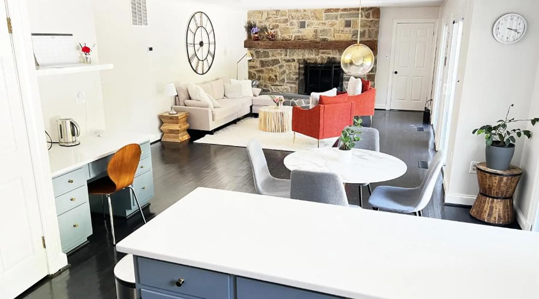 Spacious Accommodations: Potomac Zen With A Pool in North Potomac offers a spacious villa with one bedroom and four bathrooms. The property features a sun terrace, garden, seasonal outdoor swimming pool, and free WiFi. Leisure Facilities: Guests can enjoy an indoor and outdoor play area, outdoor seating, and a kids' pool. The villa includes family rooms, ensuring comfort for all visitors. Convenient Amenities: The villa provides air-conditioning, a terrace, washing machine, kitchen, fireplace, private pool, tea and coffee maker, garden views, hairdryer, refrigerator, work desk, microwave, dishwasher, TV, private entrance, oven, and stovetop. Nearby Attractions: Ronald Reagan Washington National Airport is 24 mi away. Points of interest include the US Marine Corps War Memorial, Vietnam Veterans Memorial, and White House, each 20 mi from the property. This villa features a private pool and a fireplace. In the well-equipped kitchen, guests will find a stovetop, a refrigerator, a dishwasher and an oven. The spacious air-conditioned villa features a flat-screen TV, a washing machine, a private entrance, a tea and coffee maker as well as garden views. The unit has 1 bed.