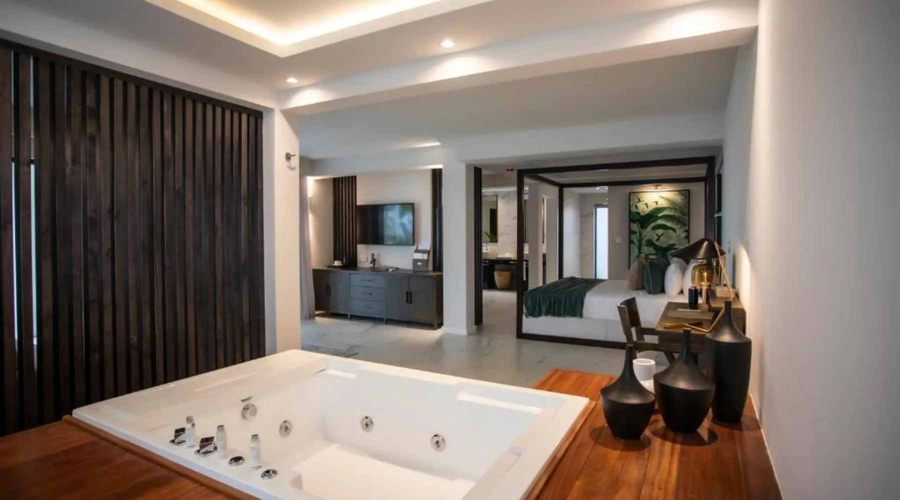 Prime Beachfront Location: Sea Diamond Boutique Hotel & Spa by Sea Resorts in Grand Gaube offers a private beach area and beachfront access. Guests enjoy an infinity swimming pool, sun terrace, and free WiFi throughout the resort. Comfortable Accommodations: Rooms feature air-conditioning, private bathrooms, and garden views. Additional amenities include balconies, mini-bars, and soundproofing, ensuring a relaxing stay. Exceptional Facilities: The resort provides spa facilities, a fitness center, and water sports. Free bicycles are available for exploring the surroundings, and a paid airport shuttle service is provided. Dining Experience: A family-friendly restaurant serves local and international cuisines with vegetarian, vegan, and gluten-free options. Breakfast includes fresh pastries, local specialties, and a variety of beverages. This suite's special feature is the pool with a view. This spacious suite consists of 1 living room, 1 separate bedroom and 1 bathroom with a shower and free toiletries. The air-conditioned suite provides a flat-screen TV with satellite channels, soundproof walls, a mini-bar, a tea and coffee maker as well as garden views. The unit offers 1 bed.