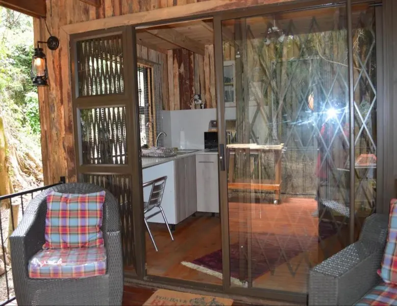 Charming Chalet in Plettenberg Bay: SHABBY FUFU LIFESTYLE FARM offers a serene retreat in Plettenberg Bay. Guests enjoy a beautiful garden, a cozy restaurant, and a relaxing bar. Comfortable Accommodations: The chalet features a terrace, balcony, and a fully equipped kitchenette. Each room includes a private bathroom with a walk-in shower, bathrobes, and free toiletries. Leisure Facilities: Guests can unwind by the outdoor fireplace, enjoy live music, and barbecue in the outdoor dining area. The property also provides free on-site private parking and a TV. Nearby Attractions: Located 8.7 mi from Plettenberg Bay Airport, the chalet is close to Goose Valley Golf Club (7.5 mi) and Robberg Nature Reserve (11 mi). Highly rated for its convenience and quietness. The fireplace is a top feature of this bungalow. Boasting a private entrance, this spacious bungalow also comes with 1 bedroom, a seating area and 1 bathroom with a walk-in shower and a bath. Guests will find a stovetop, a refrigerator, kitchenware and a microwave in the well-fitted kitchen. The bungalow also includes a barbecue. Featuring a terrace with garden views, this bungalow also features a dining area and a flat-screen TV. The unit has 1 bed.