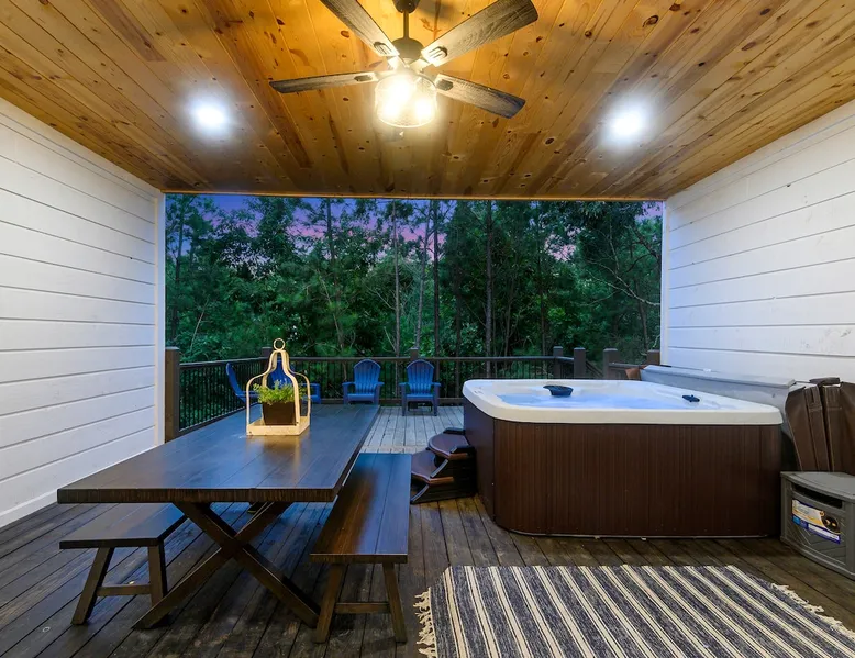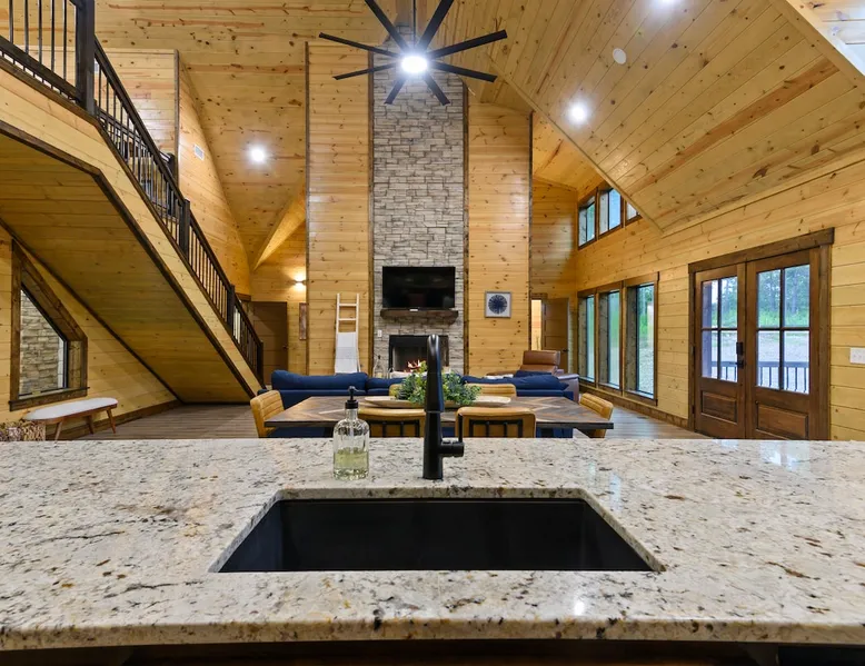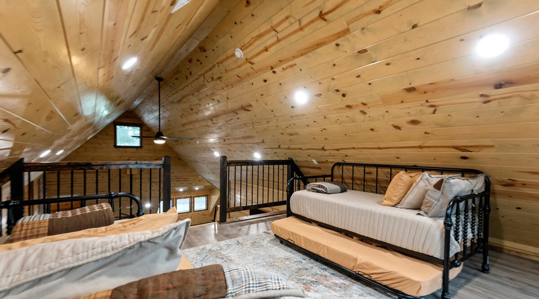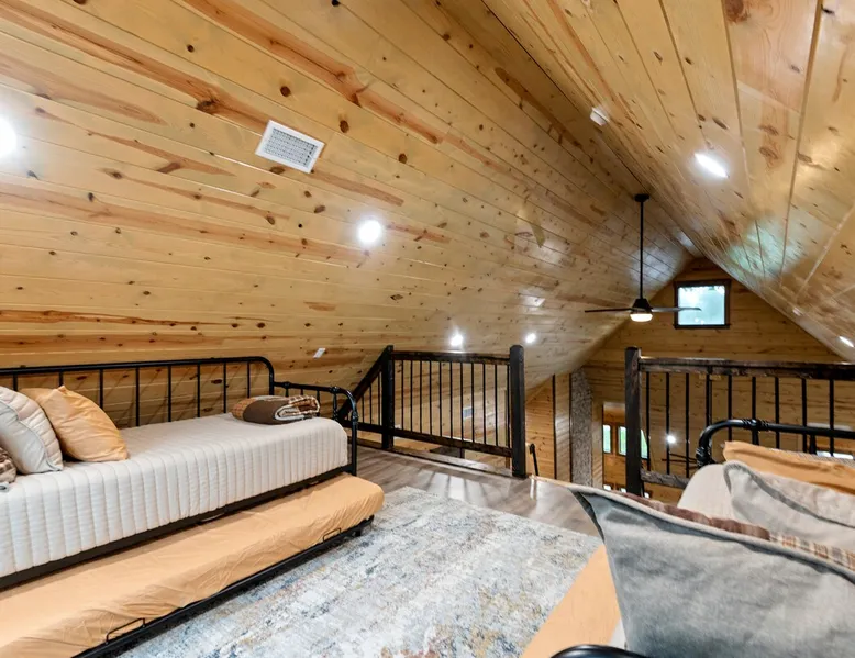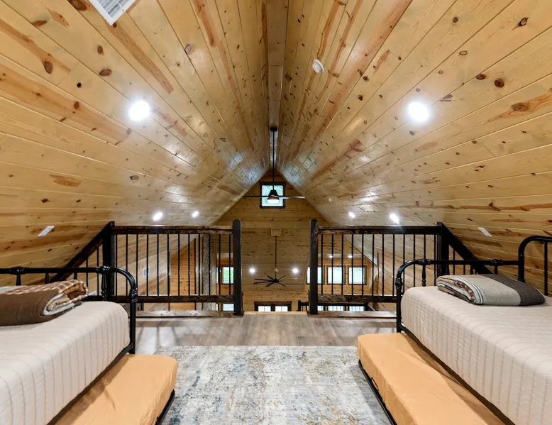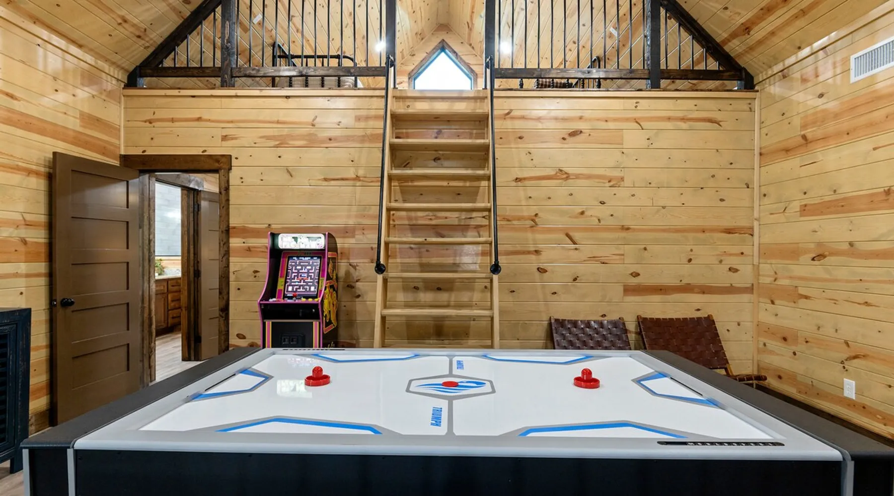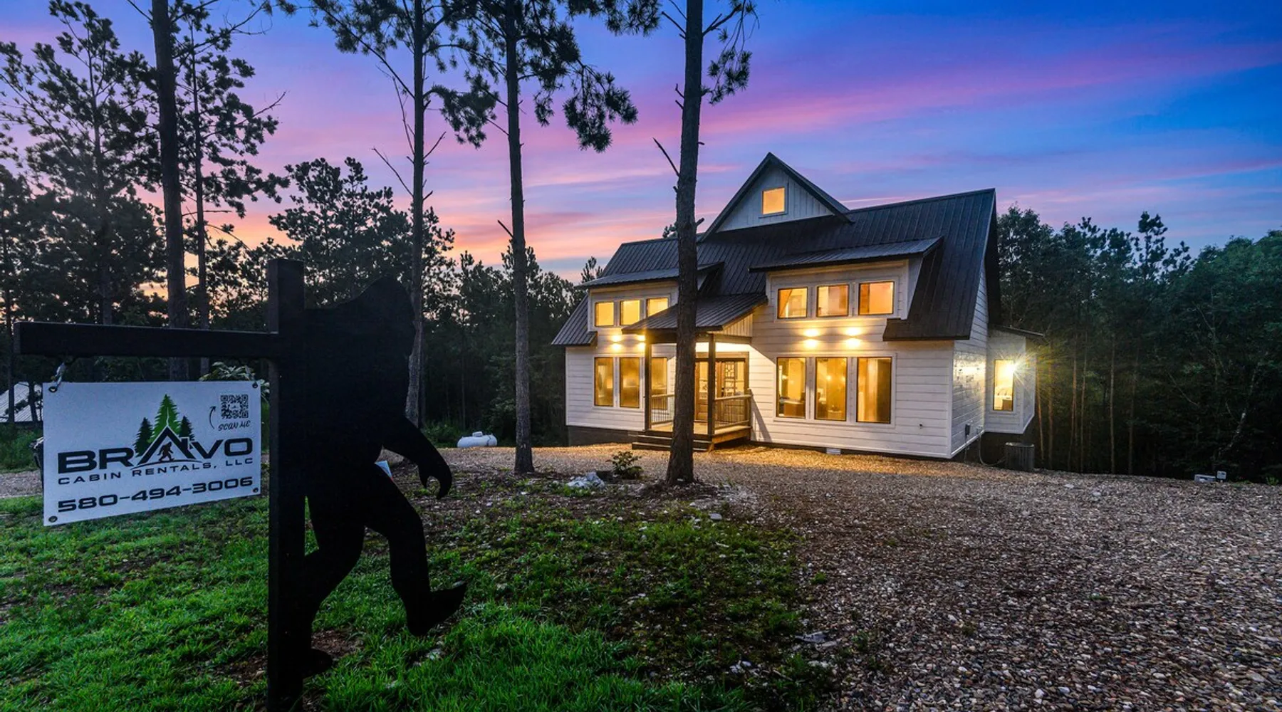 🏡 Welcome to A Day Away Escape to A Day Away, your relaxing home base in Broken Bow. This family-friendly cabin is packed with entertainment and comfort. Whether you're soaking in the hot tub, playing in the game room, or unwinding by the fire pit under a starlit sky, this getaway offers something for everyone. The space 🛋️ Living Room Comfort meets entertainment: Section sofa Accent chair and two poufs Gas fireplace Big-screen TV Soft throw blankets for extra comfort 🍽️ Kitchen & Dining Fully equipped and ready for any culinary adventure: Standard appliances Keurig K-Cup coffee maker & traditional coffee pot Waffle maker, toaster, standard mixer Full knife set, grilling tools Flatware, drinkware, dishware Dining table with seating for 6 Kitchen island with seating for 6 🛏️ Bedrooms & Sleeping Arrangements 2 Master Suites (Main Level) King-size bed Nightstands & large dresser Accent chair & throw blankets Big-screen TV Ensuite bathrooms with: Soaker tub Walk-in shower Private toilet Direct access to the back patio Robes & portable fans in closets Queen Double Room (Upper Level) Two queen-size beds Nightstand, dresser, and big-screen TV Ensuite bathroom with walk-in shower and single vanity Bunk Loft (Upper-Level Overlooking Game Room) Two twin-size beds with trundle beds (sleep up to 4) Perfect for kids or the young at heart 🎮 Game Room Fun for the whole group: Air hockey Ms. Pac-Man arcade game Board games Convertible pool/ping pong table Tall top table seating area 🌳 Outdoor Living Enjoy the outdoors without leaving home: Hot tub Gas grill (hard-lined to the main tank of the house) Back deck for dining & lounging Fire pit for roasting marshmallows and making memories 🐾 Pet Friendly Up to 2 dogs under 50 lbs. each $125 per pet fee applies 📌 Additional Info Full-size washer & dryer Iron & ironing board provided Free Wi-Fi Seasonal fireplaces: Available Oct–May 15 Max occupancy: 12 guests – NO EXCEPTIONS Guest access Entire cabin Other things to note It is located near all the best restaurants, activities, and park amenities. It is just a short drive to Broken Bow Lake, Beavers Bend State Park, popular hiking trails, restaurants, breweries, wineries and downtown Hochatown and access to all the outdoors activities you want – boating, hiking, fly-fishing, kayaking, zip-lining, ATV trails, horseback riding, Cedar Creek Golf Course, Choctaw Landing Casino, mini-golf, helicopter rides, mining for gold, train rides, go-carts, and a great petting zoo. Don’t forget these items when you come to visit: • Rain gear and light jackets (Our average rainfall is 55″-60″ each year). • We have beautiful scenic trails; good hiking boots are a must. • Water shoes for our vast shorelines and streams. • Insect repellent, sunblock, and other first-aid supplies. • Coffee and filters – enjoy this while sitting on the deck in the early morning. • Condiments --A starter supply of coffee/filters, salt/pepper, paper towels, toilet paper, bath soap, dish soap, dishwasher tablets, trash bags, and laundry soap is provided. Still, guests may need to bring additional supplies. For your convenience, we can help you arrange: • Special requests (i.e., flowers, wine, etc.) • In-cabin chef recommendations • In-cabin massages recommendations If we are missing something or you have a question we haven't answered, please feel free to reach out to us directly at Bravo Cabin Rentals and we will personally respond as soon as possible. We look forward to making your next vacation in Broken Bow/Hochatown one you won’t forget!