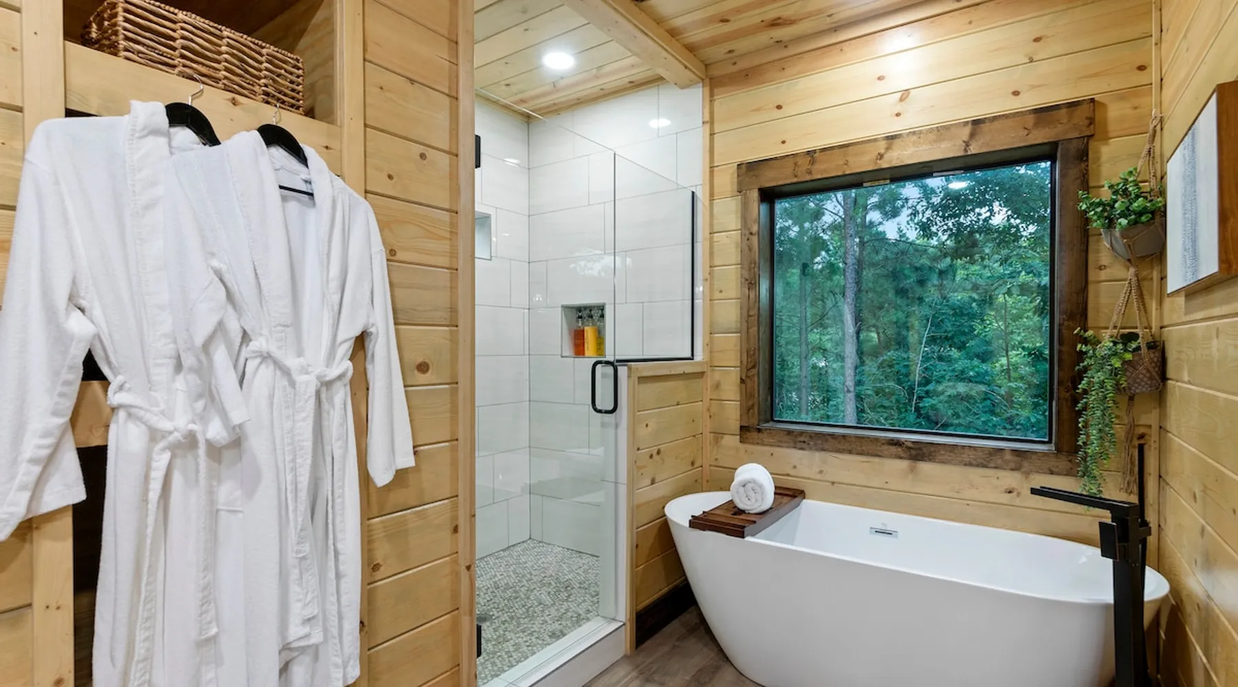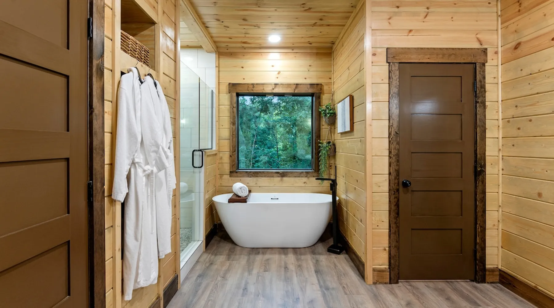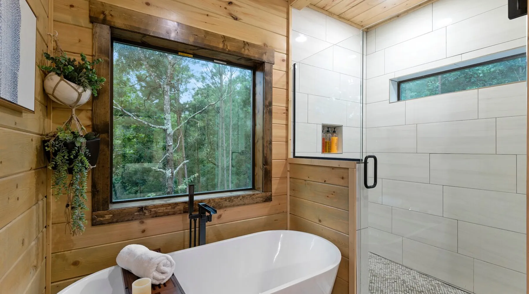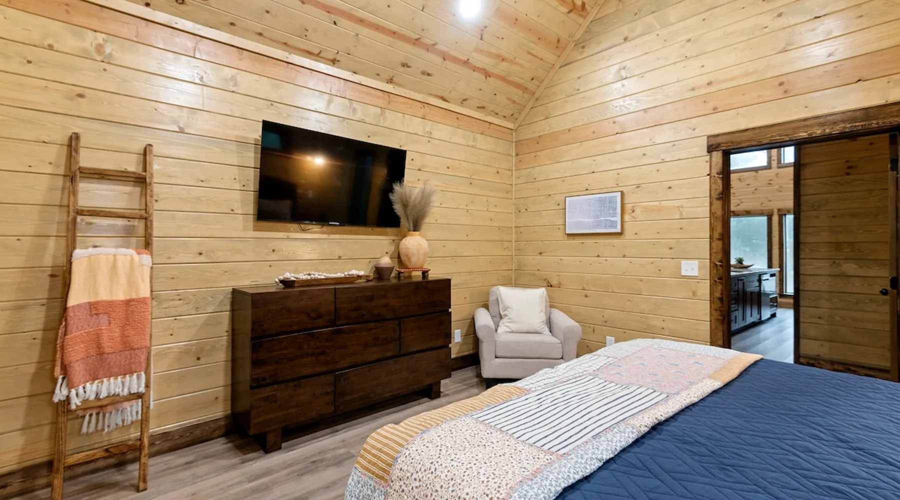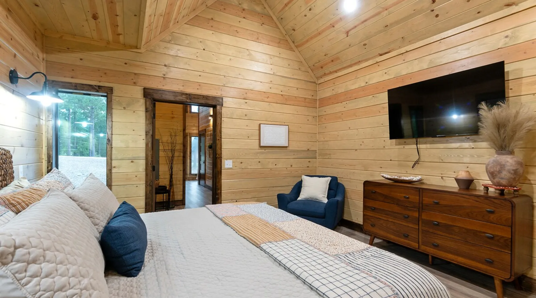 🏡 Welcome to A Day Away Escape to A Day Away, your relaxing home base in Broken Bow. This family-friendly cabin is packed with entertainment and comfort. Whether you're soaking in the hot tub, playing in the game room, or unwinding by the fire pit under a starlit sky, this getaway offers something for everyone. The space 🛋️ Living Room Comfort meets entertainment: Section sofa Accent chair and two poufs Gas fireplace Big-screen TV Soft throw blankets for extra comfort 🍽️ Kitchen & Dining Fully equipped and ready for any culinary adventure: Standard appliances Keurig K-Cup coffee maker & traditional coffee pot Waffle maker, toaster, standard mixer Full knife set, grilling tools Flatware, drinkware, dishware Dining table with seating for 6 Kitchen island with seating for 6 🛏️ Bedrooms & Sleeping Arrangements 2 Master Suites (Main Level) King-size bed Nightstands & large dresser Accent chair & throw blankets Big-screen TV Ensuite bathrooms with: Soaker tub Walk-in shower Private toilet Direct access to the back patio Robes & portable fans in closets Queen Double Room (Upper Level) Two queen-size beds Nightstand, dresser, and big-screen TV Ensuite bathroom with walk-in shower and single vanity Bunk Loft (Upper-Level Overlooking Game Room) Two twin-size beds with trundle beds (sleep up to 4) Perfect for kids or the young at heart 🎮 Game Room Fun for the whole group: Air hockey Ms. Pac-Man arcade game Board games Convertible pool/ping pong table Tall top table seating area 🌳 Outdoor Living Enjoy the outdoors without leaving home: Hot tub Gas grill (hard-lined to the main tank of the house) Back deck for dining & lounging Fire pit for roasting marshmallows and making memories 🐾 Pet Friendly Up to 2 dogs under 50 lbs. each $125 per pet fee applies 📌 Additional Info Full-size washer & dryer Iron & ironing board provided Free Wi-Fi Seasonal fireplaces: Available Oct–May 15 Max occupancy: 12 guests – NO EXCEPTIONS Guest access Entire cabin Other things to note It is located near all the best restaurants, activities, and park amenities. It is just a short drive to Broken Bow Lake, Beavers Bend State Park, popular hiking trails, restaurants, breweries, wineries and downtown Hochatown and access to all the outdoors activities you want – boating, hiking, fly-fishing, kayaking, zip-lining, ATV trails, horseback riding, Cedar Creek Golf Course, Choctaw Landing Casino, mini-golf, helicopter rides, mining for gold, train rides, go-carts, and a great petting zoo. Don’t forget these items when you come to visit: • Rain gear and light jackets (Our average rainfall is 55″-60″ each year). • We have beautiful scenic trails; good hiking boots are a must. • Water shoes for our vast shorelines and streams. • Insect repellent, sunblock, and other first-aid supplies. • Coffee and filters – enjoy this while sitting on the deck in the early morning. • Condiments --A starter supply of coffee/filters, salt/pepper, paper towels, toilet paper, bath soap, dish soap, dishwasher tablets, trash bags, and laundry soap is provided. Still, guests may need to bring additional supplies. For your convenience, we can help you arrange: • Special requests (i.e., flowers, wine, etc.) • In-cabin chef recommendations • In-cabin massages recommendations If we are missing something or you have a question we haven't answered, please feel free to reach out to us directly at Bravo Cabin Rentals and we will personally respond as soon as possible. We look forward to making your next vacation in Broken Bow/Hochatown one you won’t forget!