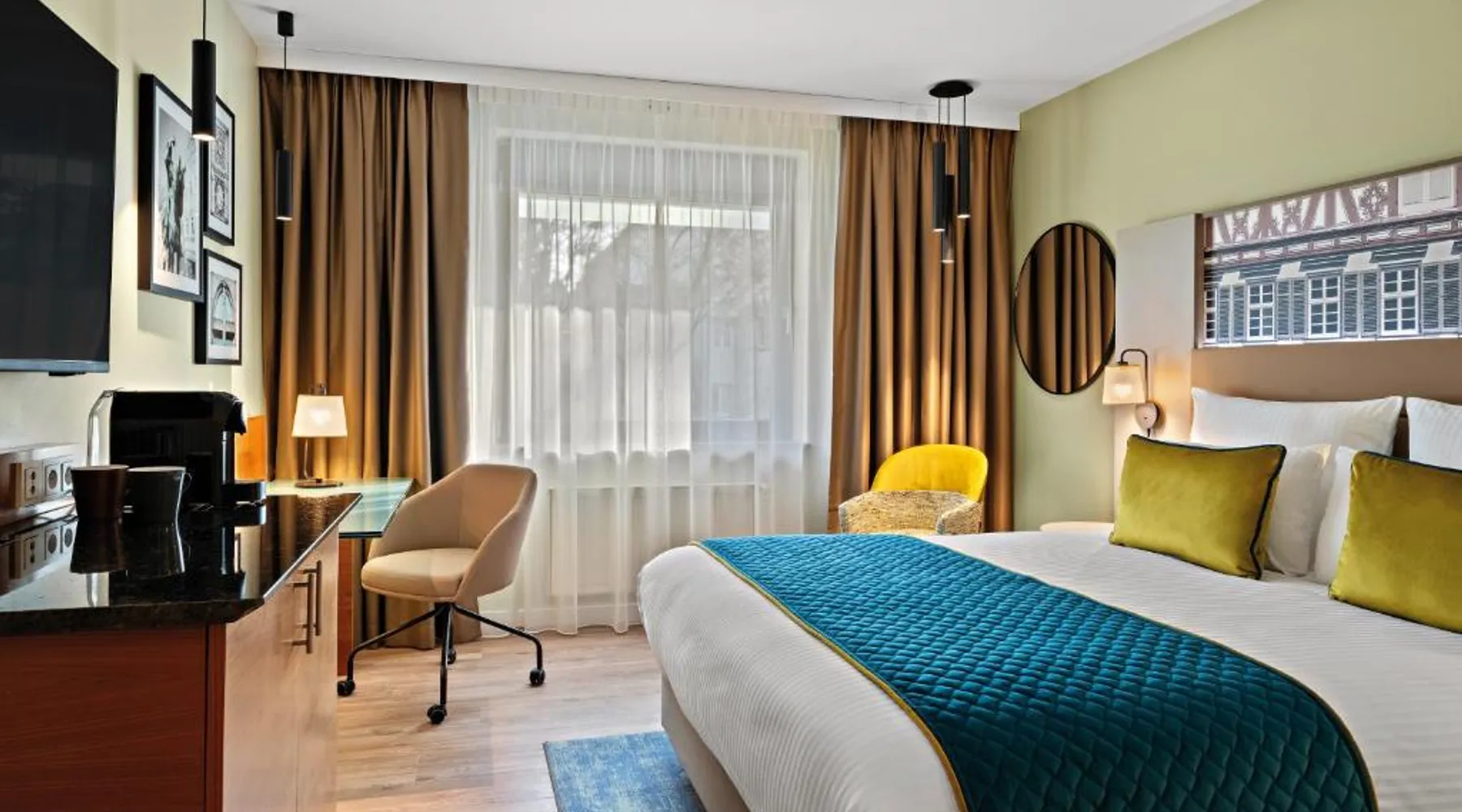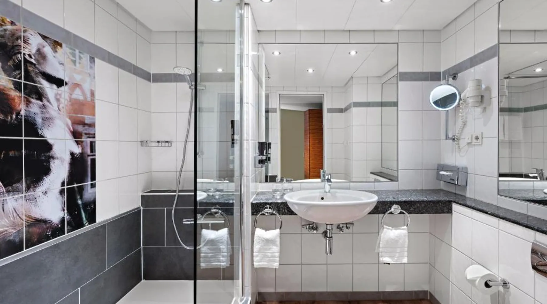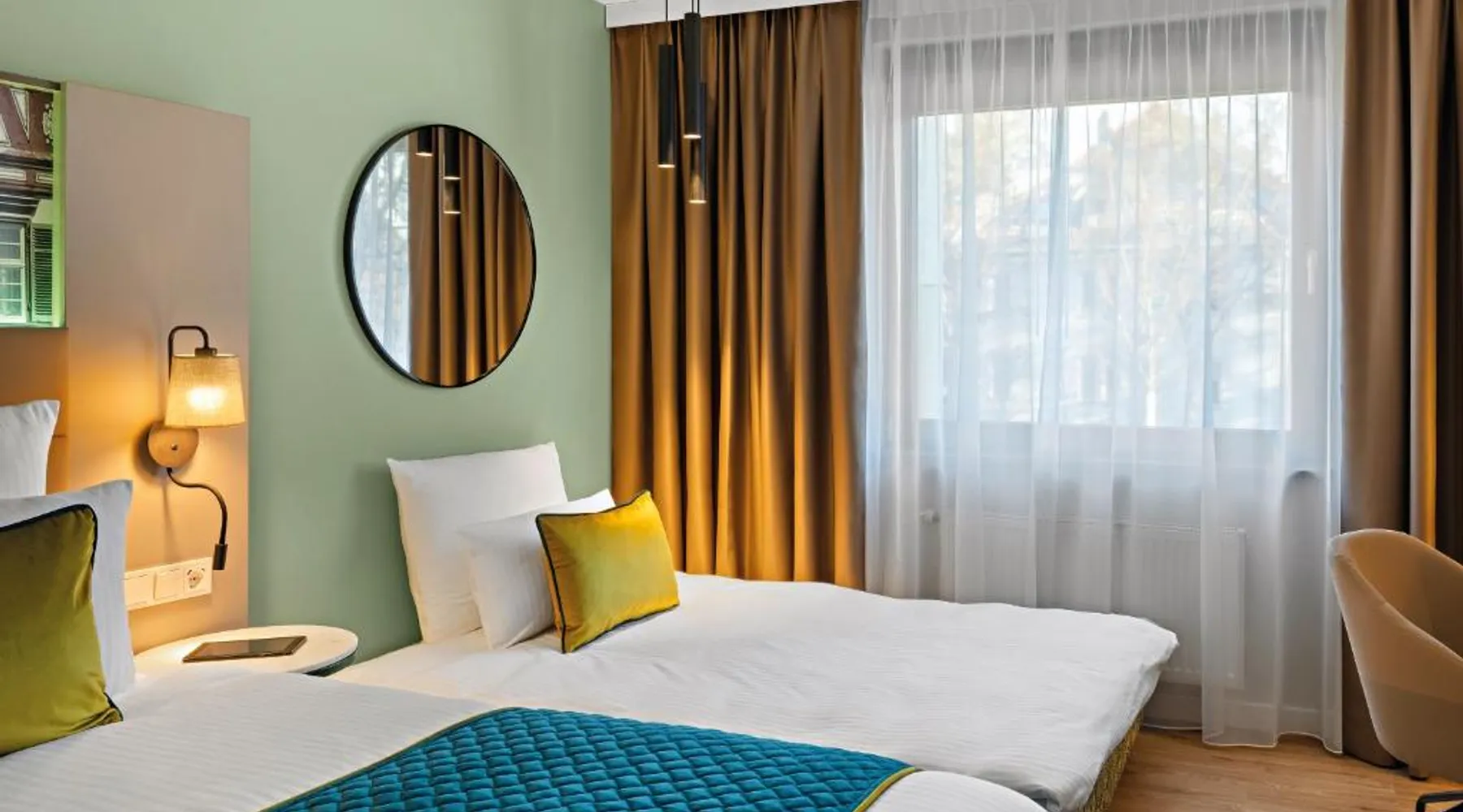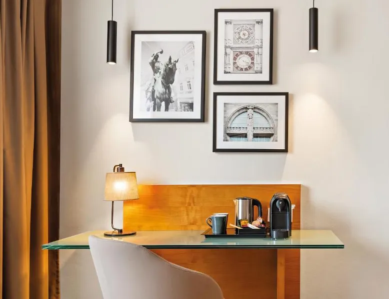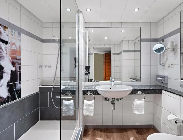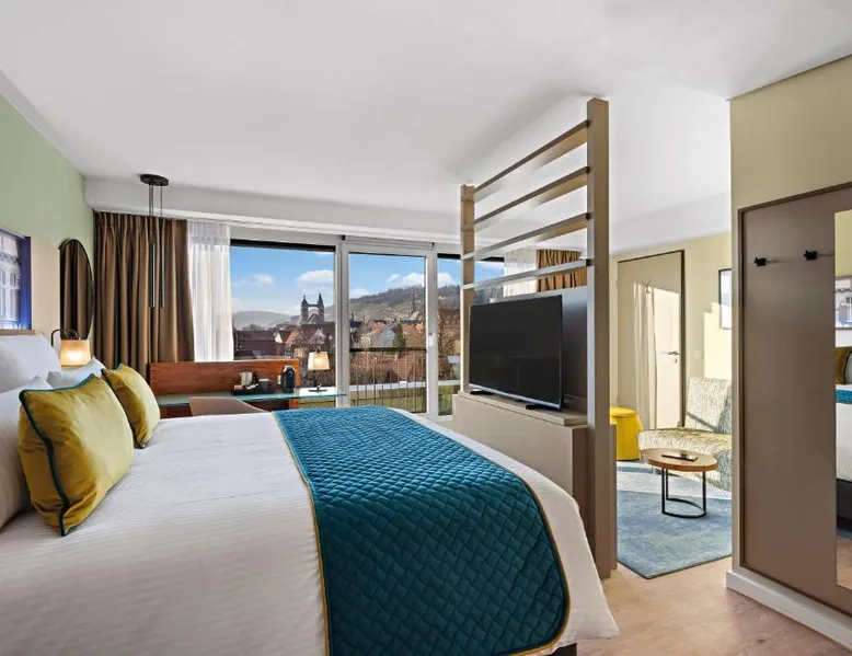 This hotel is located on the edge of Esslingen’s beautiful Old Town, only 9.3 mi from Stuttgart city center. It is surrounded by vineyards and offers views of Esslingen Castle. The 4-star estimated by Booking.com Leonardo Hotel Esslingen offers spacious, comfortable rooms. All rooms provide free wired internet, and Wi-Fi is free in public areas. The Leonardo Hotel Esslingen is a wonderful choice thanks to its generous selection of food and drinks. For breakfast, the restaurant offers a buffet with fresh produce and hot dishes. During the day and in the evening, you can choose from the extensive menu to satisfy your appetite, or order a drink at the bar and enjoy the cozy atmosphere by the fireplace. You can also use the rooftop bar on the 5th floor to relax and have fun with your travel companions. By car, guests can reach Stuttgart city center, Stuttgart Main Station and Stuttgart Airport in about 20 minutes. Revitalizing our spaces! The rooftop bar, sauna and fitness area are currently closed. We appreciate your understanding and are looking forward to unveil the exciting new amenities. The twin room offers a tea and coffee maker, a safe deposit box, as well as a private bathroom featuring a shower and a hairdryer. This twin room provides a TV. The unit offers 2 beds.
