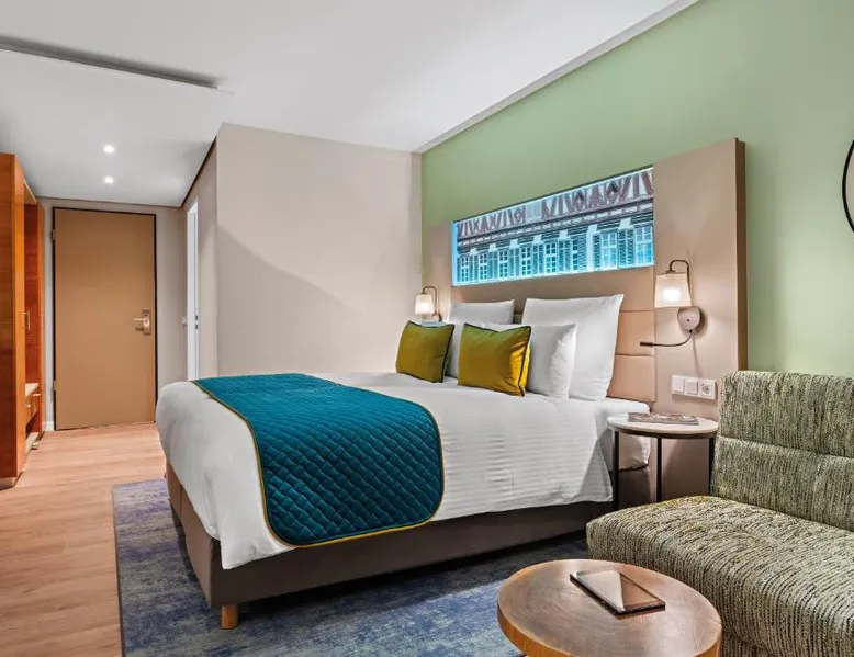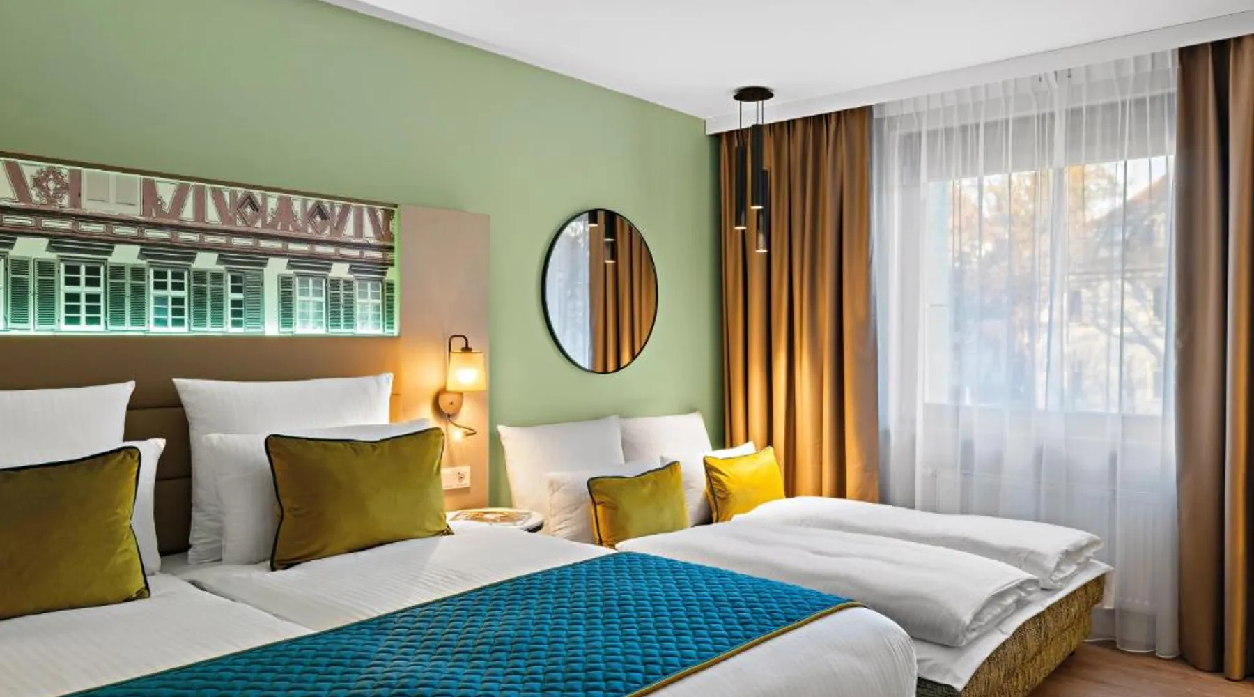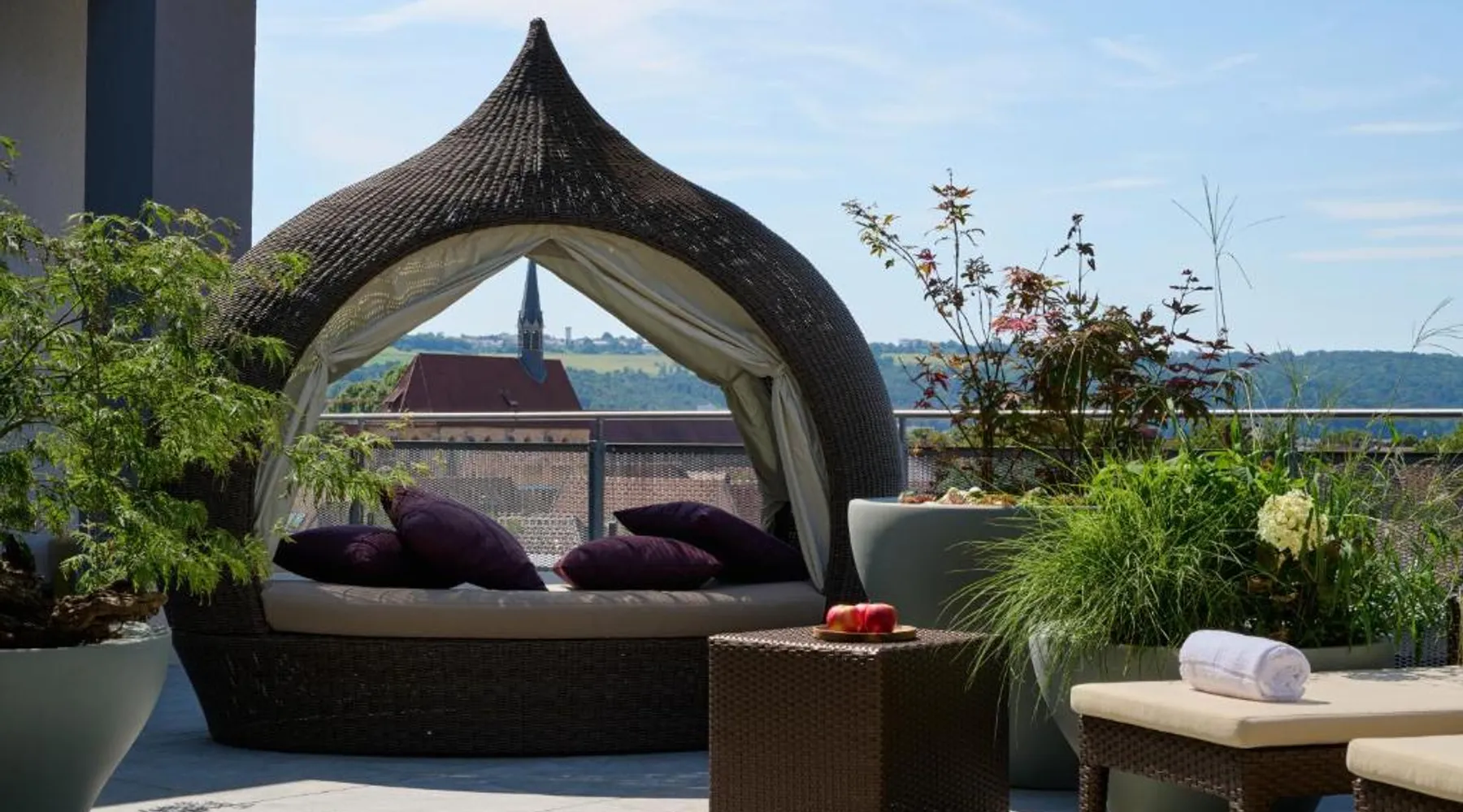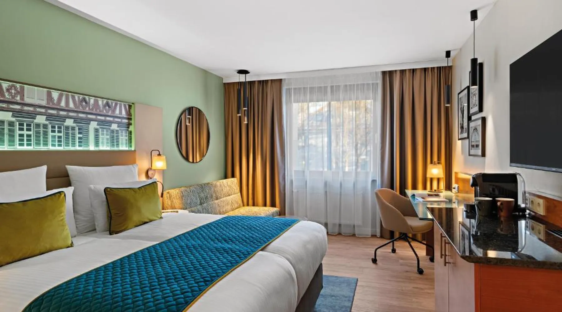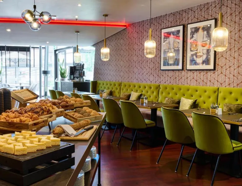 This hotel is located on the edge of Esslingen’s beautiful Old Town, only 9.3 mi from Stuttgart city center. It is surrounded by vineyards and offers views of Esslingen Castle. The 4-star estimated by Booking.com Leonardo Hotel Esslingen offers spacious, comfortable rooms. All rooms provide free wired internet, and Wi-Fi is free in public areas. The Leonardo Hotel Esslingen is a wonderful choice thanks to its generous selection of food and drinks. For breakfast, the restaurant offers a buffet with fresh produce and hot dishes. During the day and in the evening, you can choose from the extensive menu to satisfy your appetite, or order a drink at the bar and enjoy the cozy atmosphere by the fireplace. You can also use the rooftop bar on the 5th floor to relax and have fun with your travel companions. By car, guests can reach Stuttgart city center, Stuttgart Main Station and Stuttgart Airport in about 20 minutes. Revitalizing our spaces! The rooftop bar, sauna and fitness area are currently closed. We appreciate your understanding and are looking forward to unveil the exciting new amenities. The twin room offers a tea and coffee maker, a safe deposit box, as well as a private bathroom featuring a shower and a hairdryer. This twin room provides a TV. The unit offers 2 beds.