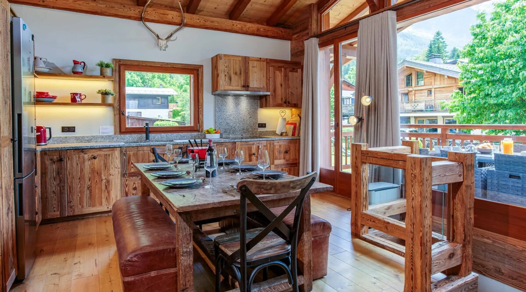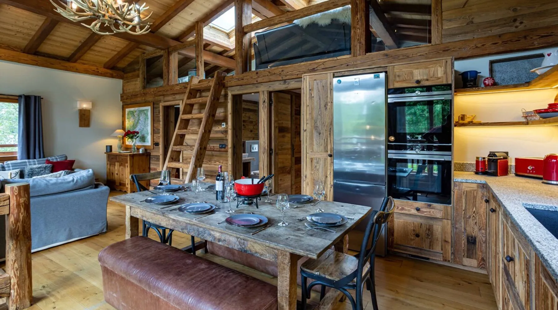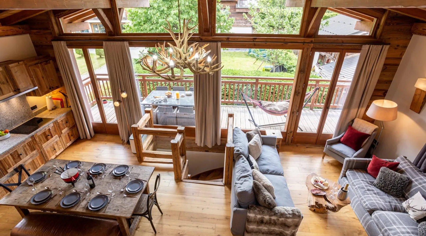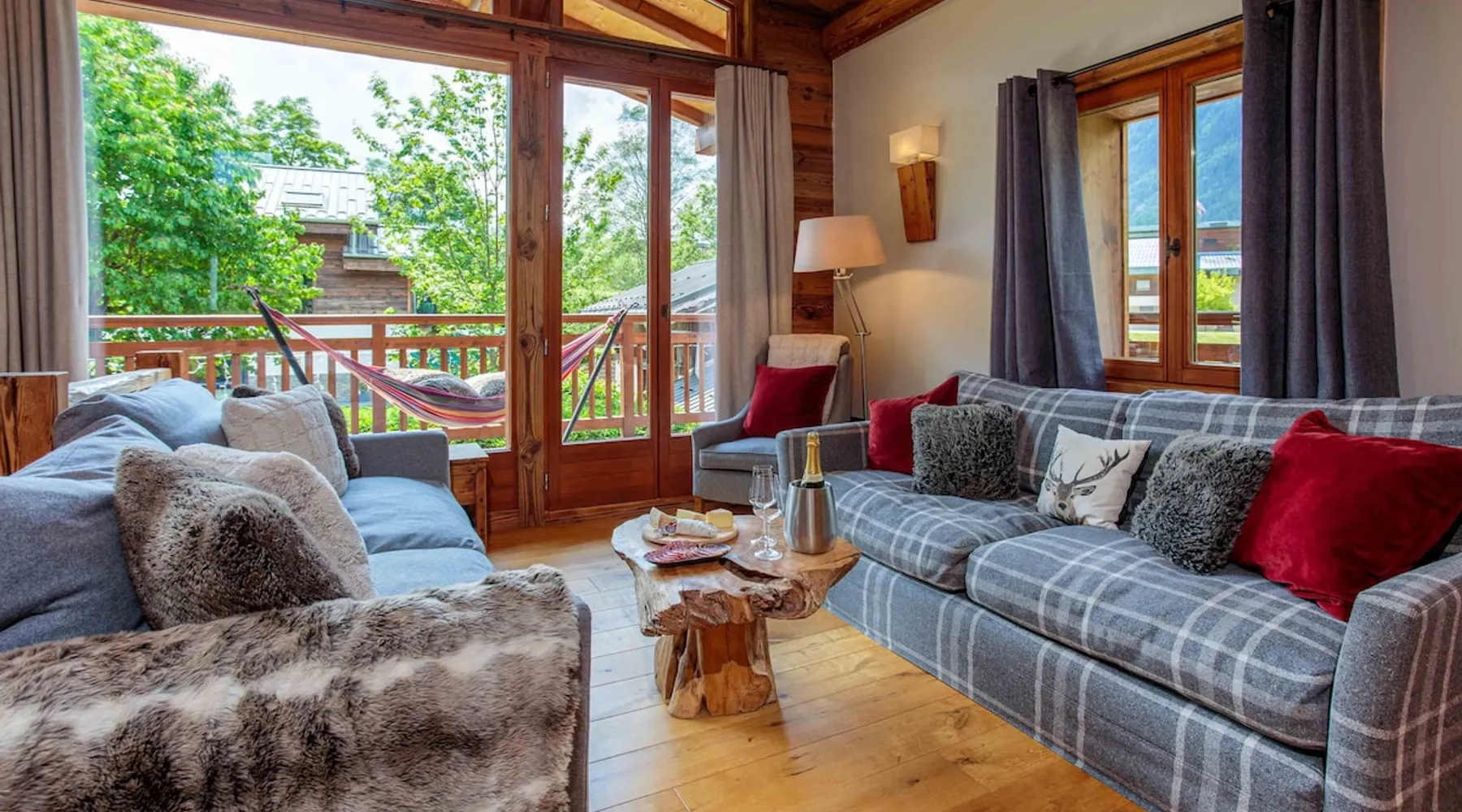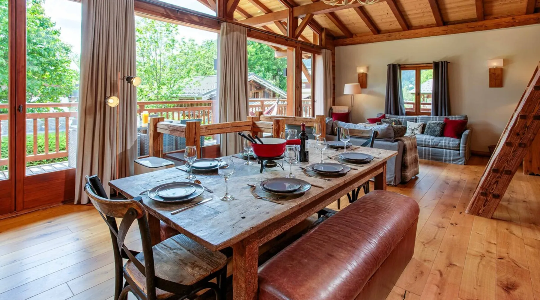 Chalet du Dard is a beautiful Chamonix chalet, that sleeps 8 in 4 bedrooms, 3 bathrooms, garden, hot tub, Mont Blanc views, parking and wifi. Chalet du Dard is a beautiful chalet in Chamonix, sleeping 8 people in 4 bedrooms, 3 bathrooms, garden, jacuzzi, view of Mont Blanc, parking and wifi. See more info or click 'Book online' to réserver. The space Chalet du Dard is a beautiful traditional alpine chalet, named after the Cascade du Dard which is a beautiful 20 minute woodland walk from the chalet. Set in a lovely quiet area, only 5-6 minute's walk to the centre of Chamonix and the Aiguille du Midi this Chamonix chalet is ideally located for the perfect holiday destination for families or groups of friends alike. Chalet du Dard boasts a beautiful garden with BBQ, hot tub, and plenty of space for kids to run around and play on the trampoline while you sit on the balcony taking in the stunning views of Mont Blanc with an aperitif. Inside the chalet you will find 4 bedrooms offering flexible sleeping arrangements. Downstairs there is a master double en-suite bedroom and a further double bedroom plus a TV snug. Upstairs off the open plan living dining kitchen are two further bedrooms, a twin/king bedroom and a bedroom with bunk beds. There is a family bathroom here too. There is a mezzanine above the lounge that offers another TV snug and an extra double bed, this is accessed from steep ladders and is very reduced in height. The large open-plan living area hosts a well-equipped kitchen with a large fridge freezer, oven, dishwasher, Nespresso coffee machine, and fondue kit, perfect for enjoying a cosy night in. The dining table seats 8 comfortably and there are two comfortable couches for relaxing in after a hard day up the mountain. Floor-to-ceiling windows link the living space onto the large balcony where there is a table & chairs for dining alfresco and a hammock for the ultimate relaxation. There is a boot room with boot warmer, washing machine & tumble dryer, wifi and parking outside the chalet for 2 cars. Key Features 130 sqm Sleeps 8 Master double bedroom with ensuite bathroom Second double bedroom with private bathroom King/Twin bedroom Bunk bedroom Mezzanine with TV snug & double bed if needed Family bathroom with bath & shower Hot tub SMART TV with Netflix and Sky TV Fibre Wifi internet access Well-equipped kitchen with oven, microwave, dishwasher, Nespresso coffee machine & fondue kit Dining table and chairs/benches for 8 Private garden with trampoline Large balcony with table & chairs Washing machine Tumble Dryer Parking for 2 cars Other things to note myCAY loyalty programme All Chamonix All Year guests are invited to join myCAY, our loyalty programme which gets more rewarding the longer you’re with us. Once you have booked to stay with us, as a valued guest you can join to unlock a host of benefits and rewards, including money can’t buy services, discount exclusives and the best of Chamonix All Year for all the family and friends to enjoy too. The more you stay, the more rewards you get, and as you move up the tiers, some of the benefits include free upgrades such as free early or late check-ins and check-outs. Check-in times Normal check-in time is from 5pm, if you are arriving after 10pm please let us know in advance. Check-out times Normal check-out time is by 10am. Flexible check-in / check-out times If these times don’t suit your holiday arrangements, you can book our flexible early check-in / late check-out service (subject to availability). This must be booked with us in advance, and may be subject to a fee of 40€ for apartments and 80€ for chalets so that we can prepare the property in time. Children Travel cots & high chairs / booster seats can be hired through us for 35€ to include cot mattress, bed linen and a towel. You can add this to your booking at the time of booking. What's included One set of bed linen and towels is provided at your accommodation for your stay. If you are staying for 2 weeks or more you will have a mid-stay linen change. Tourist guest cards will be left in the property for you on arrival to give you free travel on the local train and buses and more. End of stay cleaning is included at your accommodation, but we do expect you to follow our check out instructions on departure. Cards accepted Chamonix All Year Resort Shop Order everything you need for your Chamonix holiday now via our Chamonix Resort Shop: Geneva Airport transfers Chamonix lift passes Discounted ski hire Additional Accommodation Details Pets Pets are welcome at this property but permission must be obtained in advance and a charge will be applied at time of booking. The additional fee is 40€. Mezzanine Note that the mezzanine to TV area and 5th sleeping area is up steep ladders and the bed is under a very low ceiling. Registration Details 74056002157M5