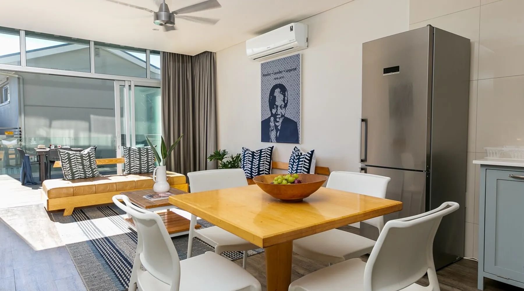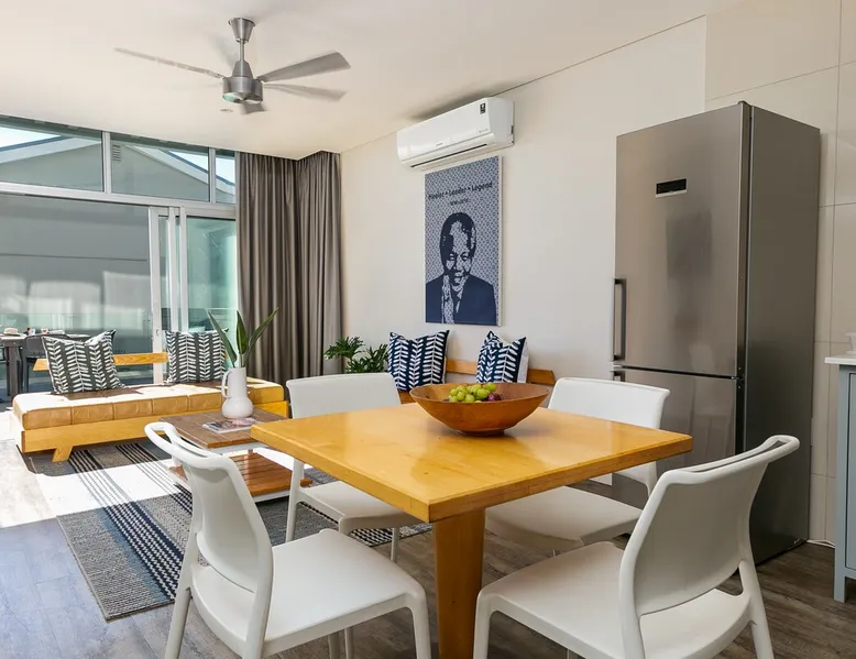 Welcome to our stunning apartment in Camps Bay! This modern apartment offers a comfortable and luxurious stay with its two bedrooms and two bathrooms. The overall design is sleek and contemporary, providing a stylish ambiance for guests. Whether you're looking for a beach getaway, a romantic retreat, or a family vacation, this Airbnb listing in Camps Bay has it all. With its modern amenities, stunning views, and prime location, it's the perfect choice for an unforgettable stay in Cape Town. The space As you enter, you'll be greeted by an open plan layout that seamlessly combines the kitchen, lounge, and dining area. The kitchen is fully equipped with modern appliances, allowing you to prepare your favorite meals with ease. Whether you're a seasoned chef or just want to whip up a quick snack, this kitchen has everything you need. The lounge area is designed for relaxation and entertainment. Sink into the plush sofas and unwind while enjoying your favorite shows on the flat-screen TV. Large windows let in plenty of natural light, creating a bright and inviting atmosphere. One of the highlights of this apartment is the private deck, accessible from both the lounge and the main bedroom. Step outside and you'll be greeted by breathtaking views of the mountains. It's the perfect spot to sip your morning coffee, enjoy a glass of wine in the evening, or simply soak up the beauty of the surroundings. The apartment is located on the third floor of a secure complex, ensuring your safety and peace of mind during your stay. Camps Bay Beach is just across the road, offering you easy access to the pristine sands and crystal-clear waters. Guest access Guests have access to 2 on-site swimming pools. Uncapped wifi is available throughout the property. Communal laundry room located just across the road at Stone Cottages, guests need to bring their own detergents. On-site parking is available by prior arrangement at a fee of R130 a day. Other things to note Loadshedding Friendly Your apartment has a back up power inverter which allows for the lights, wifi and certain appliances to remain on during loadshedding. The stove and oven would not work on the inverter, we thus still recommend tracking the schedule and planning accordingly. You can download the “EskomSePush” app to keep up to date with load shedding schedules. Please note that the TV is a Smart TV with own content streaming - you can thus log into your own DSTV, Netflix, Youtube or Showmax accounts during your stay. Do remember to log out on the day of departure. Secure on-site parking available at R130 a day. “We offer a complimentary full service clean on your 4th day with us. This will include linen change and a full clean of the apartment. Should you wish to arrange for a specific time, please let us know so that we may do our best to accommodate you.”