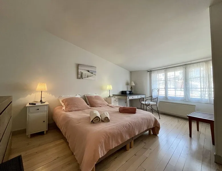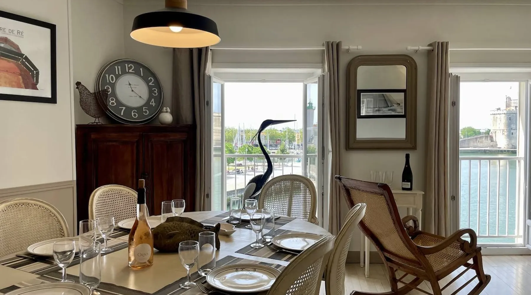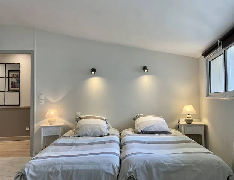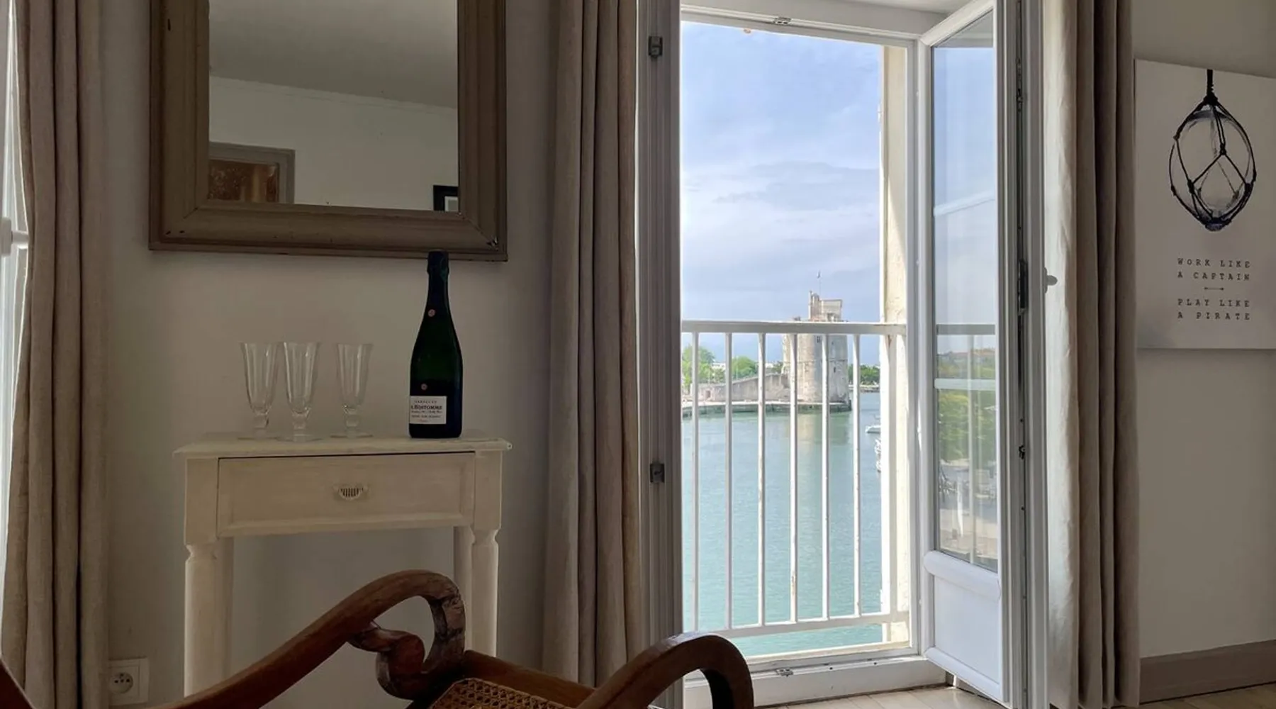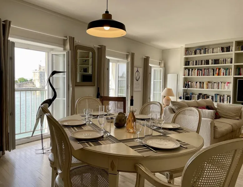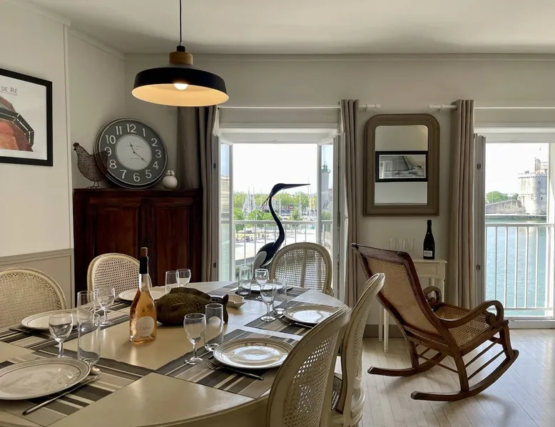 Few words can describe the unique atmosphere of this discreet apartment, suspended above the most beautiful place in La Rochelle. More than 100 m2 of exceptional space, featuring 3 bedrooms each with their own bathrooms and a large living room with exceptional views of the Old Port and the Towers, mythical emblem of La Rochelle and its magnificent lights at any time of the day. The bedrooms are on the courtyard, ensuring quiet nights. The space Come and enjoy a unique experience in this magnificent 105 m² apartment, located on the 3rd and top floor of a building on the Old Port of La Rochelle. Composed of an entrance with storage, a large hallway serving 3 bedrooms, a toilet and a laundry room, two first bedrooms with 2 single beds and each with its own shower room, and a third master bedroom with a double bed, a bathroom and toilet. A fully-equipped kitchen with serving hatch and a large living room, very bright thanks to its 3 large windows, offering a breathtaking view of the Old Port and its Towers. Bed and bath linens are provided for 6 people. Open and closed public parking is less than a 5-minute walk away, Place Saint-Michel at Carré Amelot. During your stay, we can offer you additional services. Long-term rental possible. - Public transit info Buses: The city of La Rochelle is served by the Yélo bus network of the La Rochelle area. Several bus lines pass nearby. You can check Yélo's website for specific schedules and lines. Bike: The Yélo self-service bike service offers several self-service bike stations in and around La Rochelle. You can rent a bike for short or long trips. Registration Details 1730000563997