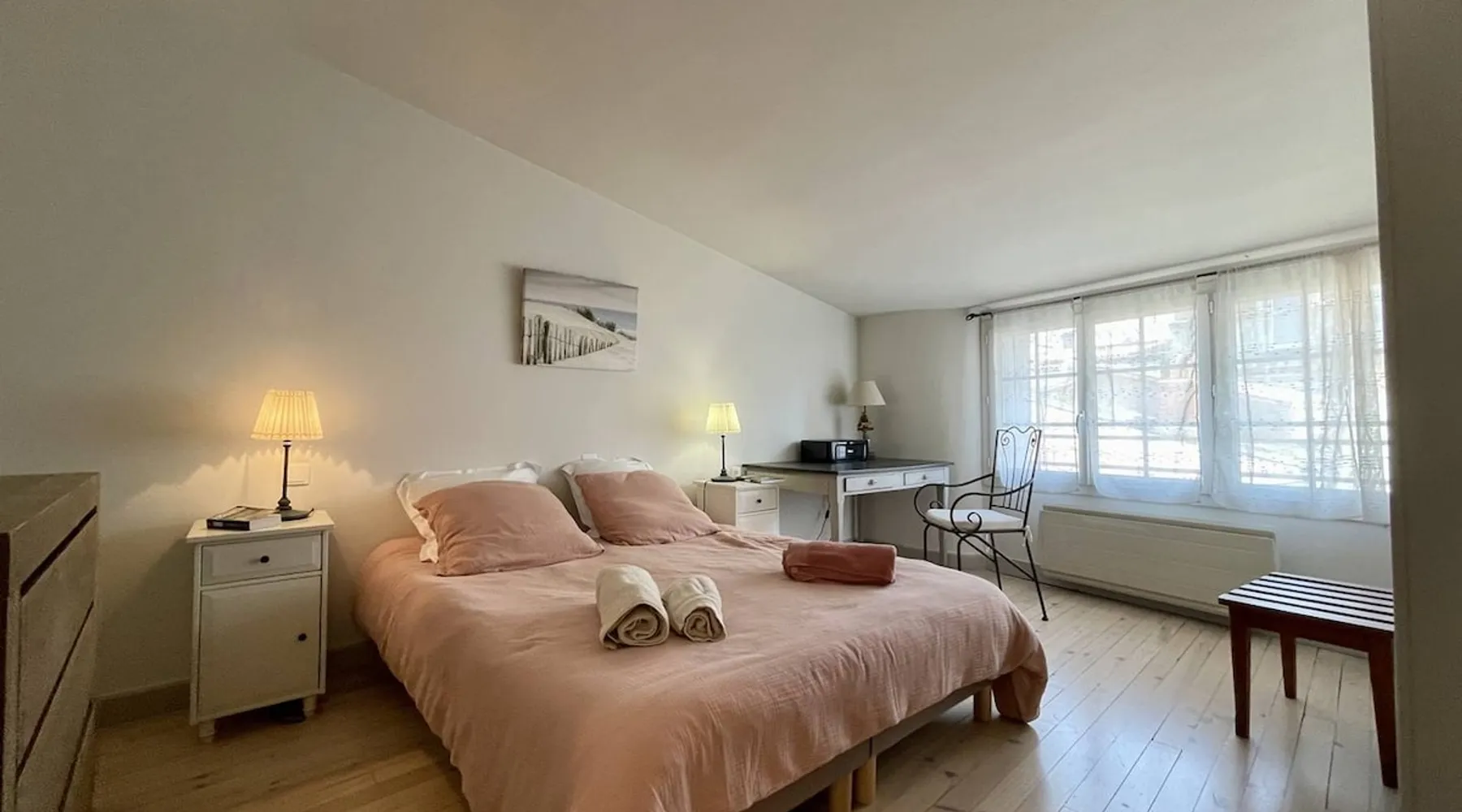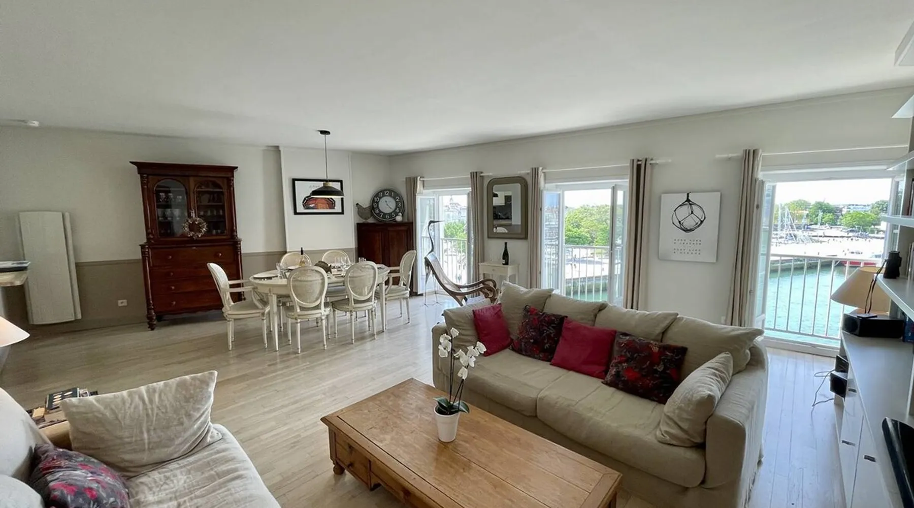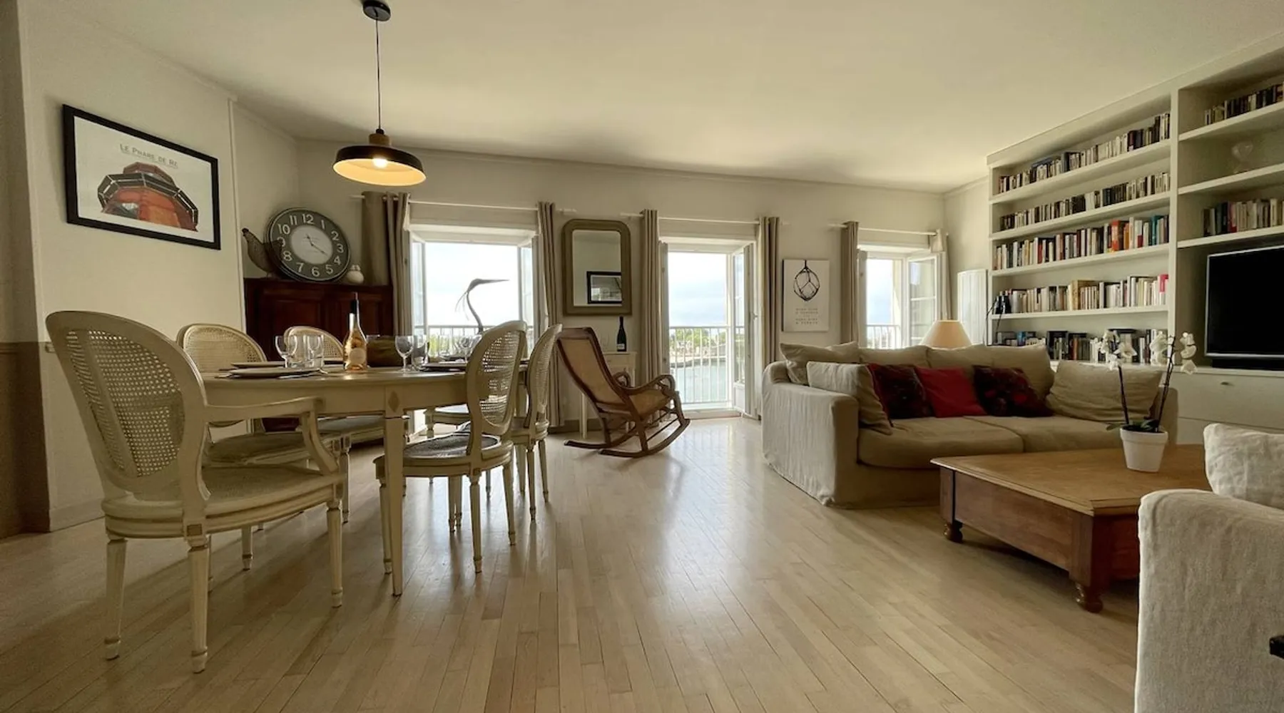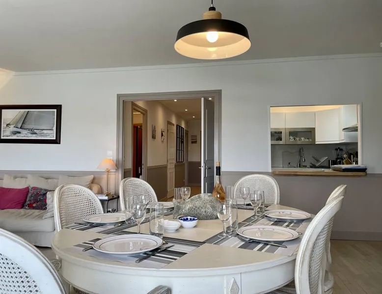 Few words can describe the unique atmosphere of this discreet apartment, suspended above the most beautiful place in La Rochelle. More than 100 m2 of exceptional space, featuring 3 bedrooms each with their own bathrooms and a large living room with exceptional views of the Old Port and the Towers, mythical emblem of La Rochelle and its magnificent lights at any time of the day. The bedrooms are on the courtyard, ensuring quiet nights. The space Come and enjoy a unique experience in this magnificent 105 m² apartment, located on the 3rd and top floor of a building on the Old Port of La Rochelle. Composed of an entrance with storage, a large hallway serving 3 bedrooms, a toilet and a laundry room, two first bedrooms with 2 single beds and each with its own shower room, and a third master bedroom with a double bed, a bathroom and toilet. A fully-equipped kitchen with serving hatch and a large living room, very bright thanks to its 3 large windows, offering a breathtaking view of the Old Port and its Towers. Bed and bath linens are provided for 6 people. Open and closed public parking is less than a 5-minute walk away, Place Saint-Michel at Carré Amelot. During your stay, we can offer you additional services. Long-term rental possible. - Public transit info Buses: The city of La Rochelle is served by the Yélo bus network of the La Rochelle area. Several bus lines pass nearby. You can check Yélo's website for specific schedules and lines. Bike: The Yélo self-service bike service offers several self-service bike stations in and around La Rochelle. You can rent a bike for short or long trips. Registration Details 1730000563997