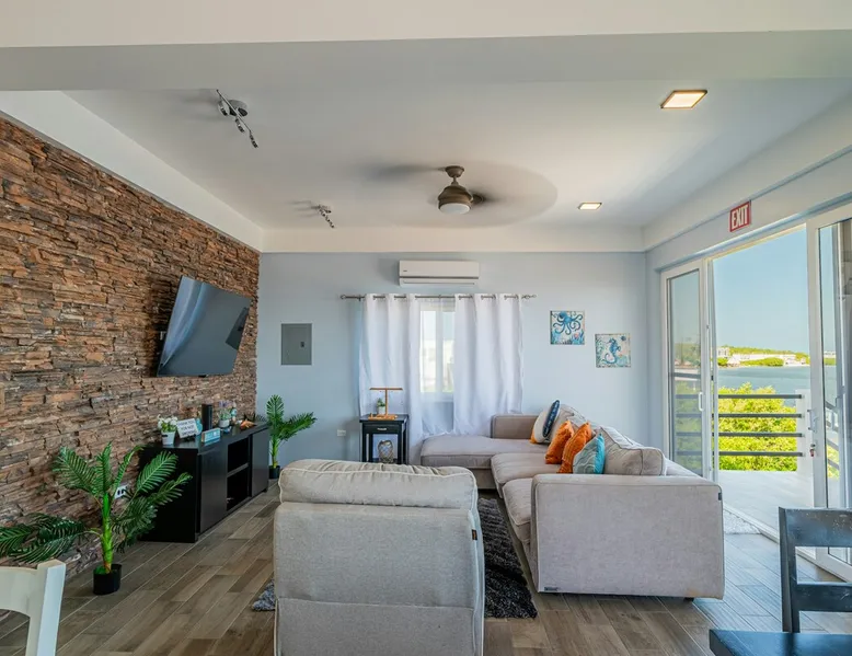 Ocean view stay with a balcony, private pool, full kitchen, AC, and washer/dryer
