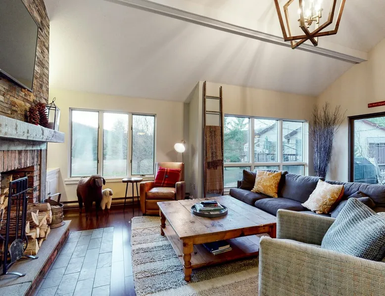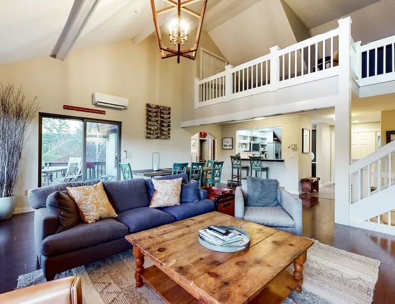 The space Dartmouth Place Retreat Location, location, location, and recent renovations make this Dartmouth Village townhouse truly one of the best in all of Quechee, VT! This beautiful home offers wonderful privacy as an end unit and marvelous views of the Vermont landscape. This extraordinary townhouse has recently undergone major upgrades including a brand new contemporary kitchen, hardwood floors, stone fireplace, new carpet, and fresh paint throughout. Two primary bedrooms with full baths (including one on the main level), a fun bunkroom, a generously-sized fourth bedroom, and a separate TV/gaming room on the lower level provide a variety of great accommodation options. The living room with vaulted ceilings, a loft, large bay windows, wonderful natural light, and a cozy fireplace makes this townhome the perfect getaway and truly one of the best rental properties in Quechee. You will only be a chip shot from both championship golf courses, next to a private tennis court, and a short walk to the Quechee Clubhouse, Lake Pinneo Beach, indoor/outdoor pools, and the Ski Mountain. You can be on the ski mountain or the first tee in less than 10 minutes! Whatever time of year you decide to visit Vermont, you will enjoy Quechee’s spectacular views, convenience to recreational activities, and a comfortable feeling of luxury and seclusion. While offering the best of Vermont vacations, Quechee is convenient to Boston, New York, Albany, cultural and entertainment events, and nearby world-class health care (Dartmouth Hitchcock Medical Center). The Quechee Club boasts two championship golf courses (Highland and Lakeland) in the summer which, in the winter, provide groomed Nordic skiing trails. In addition, Quechee offers tennis, paddle tennis, skiing, and an array of options for swimmers, hikers, and fishermen. The Club House has multiple dining options as well as a state-of-the-art fitness facility with indoor and outdoor pools. These Quechee Club amenities require rental packages and are available upon request from the Quechee Club directly. Quechee is centrally located between Woodstock, Vermont, and Hanover, New Hampshire (home of Dartmouth College). Hanover and Woodstock combine the quaintness of beautiful New England villages with the cultural sophistication of a college town. Galleries, unique shops, museums, and a variety of excellent and unique dining experiences are available. Killington and Pico are approximately 30 minutes from Quechee and offer world-class skiing, mountain biking, golf, and other year-round activities. THINGS TO KNOW No dog(s) are welcome in this home. No other animals are allowed without specific Vacasa approval. Parking notes: There is free parking available for 3 vehicles. Please note: this home resides in a noise-sensitive area and the owners participate in our Good Neighbor protection program. Our smart home technology will alert our team if excessive decibel or occupancy levels are detected, allowing us to reach out directly with a reminder of maximun occupancy and quiet hours. This technology is privacy compliant, and only monitors the presence of decibels and devices -not any personal conversation or information. Thank you for supporting our efforts to be good neighbors! Damage waiver: The total cost of your reservation for this Property includes a damage waiver fee which covers you for up to $3,000 of accidental damage to the Property or its contents (such as furniture, fixtures, and appliances) as long as you report the incident to the host prior to checking out. More information can be found from the "Additional rules" on the checkout page. Due to local laws or HOA requirements, guests must be at least 21 years of age to book. Guests under 21 must be accompanied by a parent or legal guardian for the duration of the reservation.