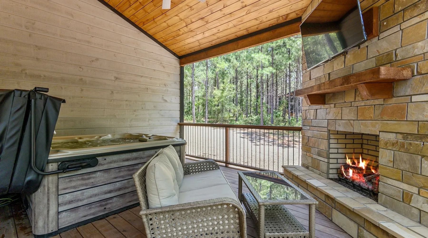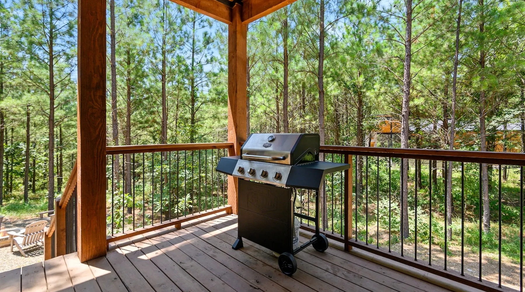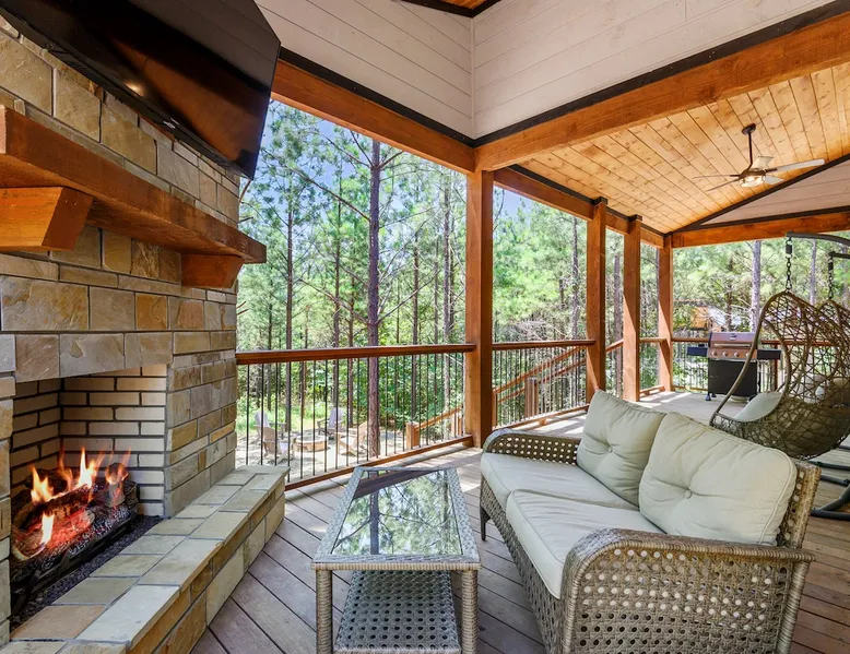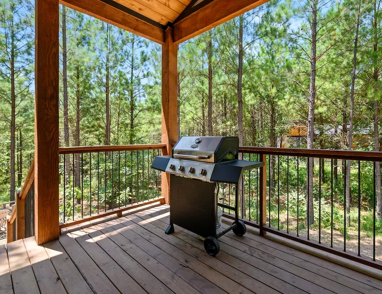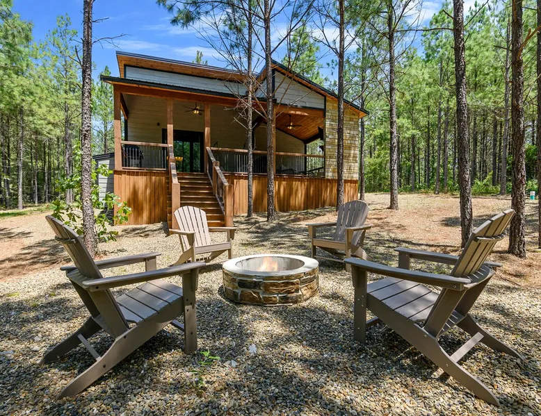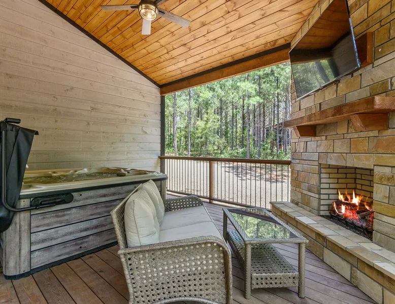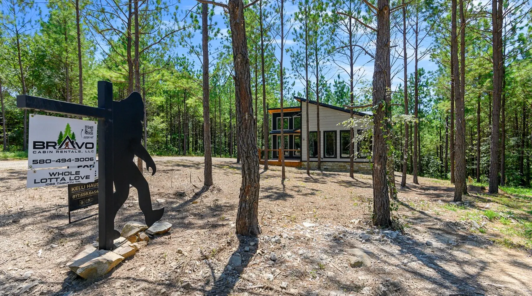 Whole Lotta Love - Bravo Cabin Rentals, LLC Experience a romantic getaway at Bravo Cabin Rentals' Whole Lotta Love cabin in Hochatown, offering a secluded and intimate setting among the towering pine trees. The single-bedroom cabin provides ultimate privacy for you and your loved one to enjoy a peaceful nature retreat. The space The cabin features a full-service kitchen equipped with all the necessary appliances for cooking, along with a dining area bathed in natural light where you can savor your meals together. After dinner, cozy up in the living room with a leather sofa, gas fireplace, and big-screen HDTV for a movie night by the crackling fire. The master bedroom boasts a king-size bed, nightstands, a bench, a closet with hangers, a big-screen HDTV, and direct access to the patio. The ensuite bathroom features double vanity sinks, a large soaker tub, and a walk-in shower with double shower heads for a luxurious experience. Outdoor living spaces include patio furniture for two, a gas fireplace, a big screen HDTV, swinging egg chairs, a gas grill, a hot tub, and a fire pit with seating for four, providing ample opportunities for relaxation and enjoyment during your stay at this charming cabin. General - Full-size washer and dryer available in the laundry closet. An EV outlet is available, but guests will need to provide their own charger. Gas fireplaces are seasonally available (October-May 15th). Any cancellations processed in which a refund is due to the guest will incur a $50 processing fee. The maximum occupancy for this cabin is 2, with no exceptions. Guest access Entire cabin Other things to note It is located near all the best restaurants, activities, and park amenities. It is just a short drive to Broken Bow Lake, Beavers Bend State Park, popular hiking trails, restaurants, breweries, wineries, and downtown Hochatown, and access to all the outdoors activities you want – boating, hiking, fly-fishing, kayaking, zip-lining, ATV trails, horseback riding, Cedar Creek Golf Course, Choctaw Landing Casino, mini-golf, helicopter rides, mining for gold, train rides, go-carts, and a great petting zoo. Don’t forget these items when you come to visit: • Rain gear and light jackets (Our average rainfall is 55″-60″ each year). • We have beautiful scenic trails; good hiking boots are a must. • Water shoes for our vast shorelines and streams. • Insect repellent, sunblock, and other first-aid supplies. • Coffee and filters – enjoy this while sitting on the deck in the early morning. • Condiments --A starter supply of coffee/filters, salt/pepper, paper towels, toilet paper, bath soap, dish soap, dishwasher tablets, trash bags, and laundry soap is provided. Still, guests may need to bring additional supplies. If we are missing something or you have a question we haven't answered, please feel free to reach out to us directly at Bravo Cabin Rentals and we will personally respond as soon as possible. We look forward to making your next vacation in Broken Bow/Hochatown one you won’t forget!