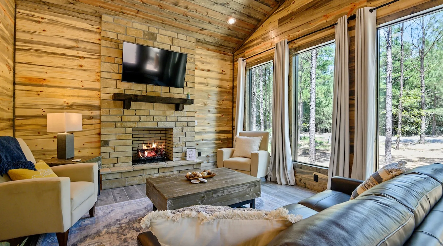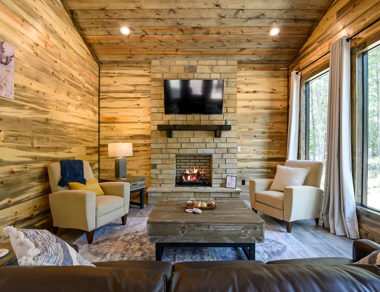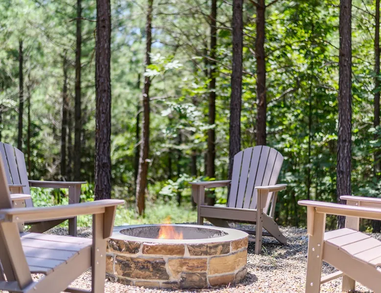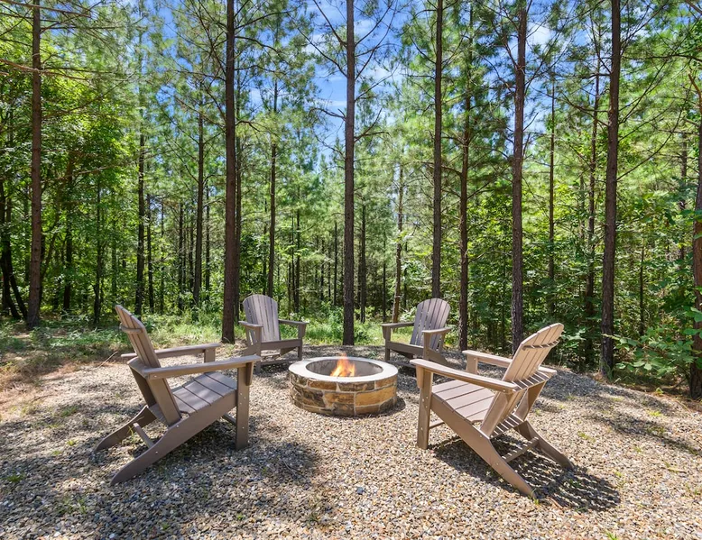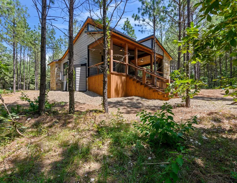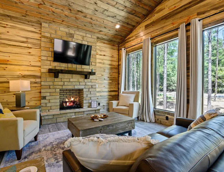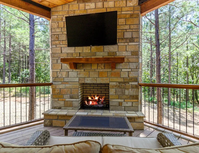 Whole Lotta Love - Bravo Cabin Rentals, LLC Experience a romantic getaway at Bravo Cabin Rentals' Whole Lotta Love cabin in Hochatown, offering a secluded and intimate setting among the towering pine trees. The single-bedroom cabin provides ultimate privacy for you and your loved one to enjoy a peaceful nature retreat. The space The cabin features a full-service kitchen equipped with all the necessary appliances for cooking, along with a dining area bathed in natural light where you can savor your meals together. After dinner, cozy up in the living room with a leather sofa, gas fireplace, and big-screen HDTV for a movie night by the crackling fire. The master bedroom boasts a king-size bed, nightstands, a bench, a closet with hangers, a big-screen HDTV, and direct access to the patio. The ensuite bathroom features double vanity sinks, a large soaker tub, and a walk-in shower with double shower heads for a luxurious experience. Outdoor living spaces include patio furniture for two, a gas fireplace, a big screen HDTV, swinging egg chairs, a gas grill, a hot tub, and a fire pit with seating for four, providing ample opportunities for relaxation and enjoyment during your stay at this charming cabin. General - Full-size washer and dryer available in the laundry closet. An EV outlet is available, but guests will need to provide their own charger. Gas fireplaces are seasonally available (October-May 15th). Any cancellations processed in which a refund is due to the guest will incur a $50 processing fee. The maximum occupancy for this cabin is 2, with no exceptions. Guest access Entire cabin Other things to note It is located near all the best restaurants, activities, and park amenities. It is just a short drive to Broken Bow Lake, Beavers Bend State Park, popular hiking trails, restaurants, breweries, wineries, and downtown Hochatown, and access to all the outdoors activities you want – boating, hiking, fly-fishing, kayaking, zip-lining, ATV trails, horseback riding, Cedar Creek Golf Course, Choctaw Landing Casino, mini-golf, helicopter rides, mining for gold, train rides, go-carts, and a great petting zoo. Don’t forget these items when you come to visit: • Rain gear and light jackets (Our average rainfall is 55″-60″ each year). • We have beautiful scenic trails; good hiking boots are a must. • Water shoes for our vast shorelines and streams. • Insect repellent, sunblock, and other first-aid supplies. • Coffee and filters – enjoy this while sitting on the deck in the early morning. • Condiments --A starter supply of coffee/filters, salt/pepper, paper towels, toilet paper, bath soap, dish soap, dishwasher tablets, trash bags, and laundry soap is provided. Still, guests may need to bring additional supplies. If we are missing something or you have a question we haven't answered, please feel free to reach out to us directly at Bravo Cabin Rentals and we will personally respond as soon as possible. We look forward to making your next vacation in Broken Bow/Hochatown one you won’t forget!