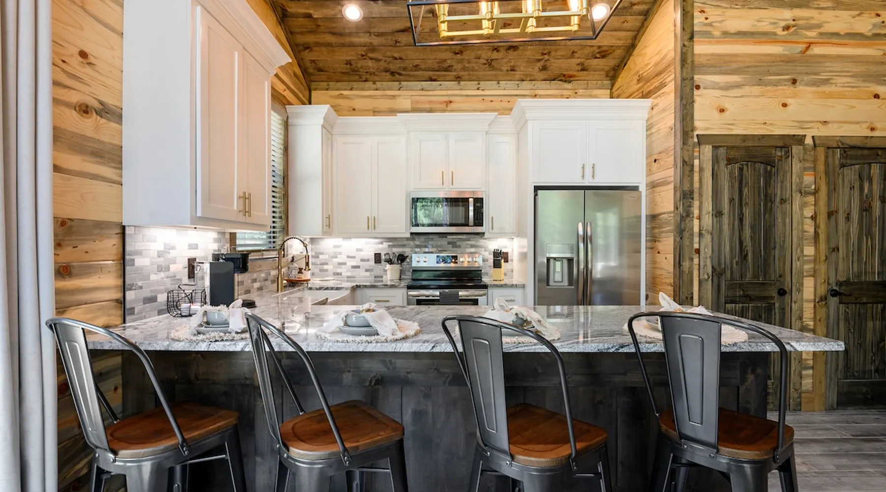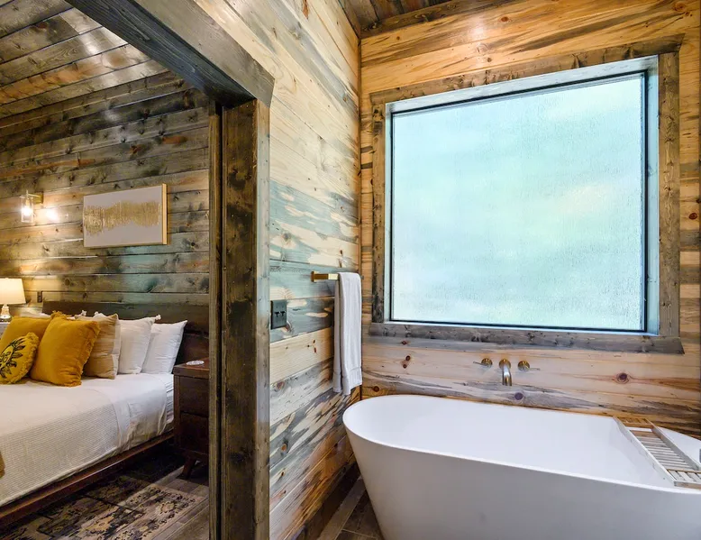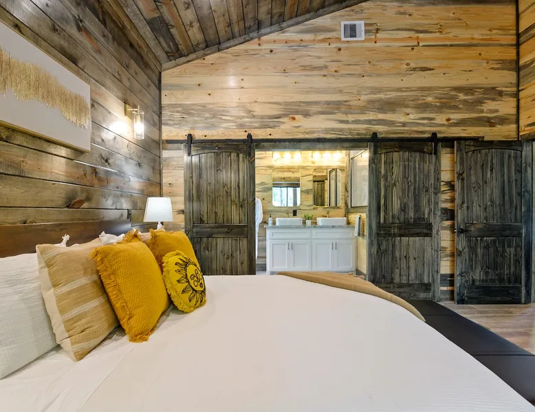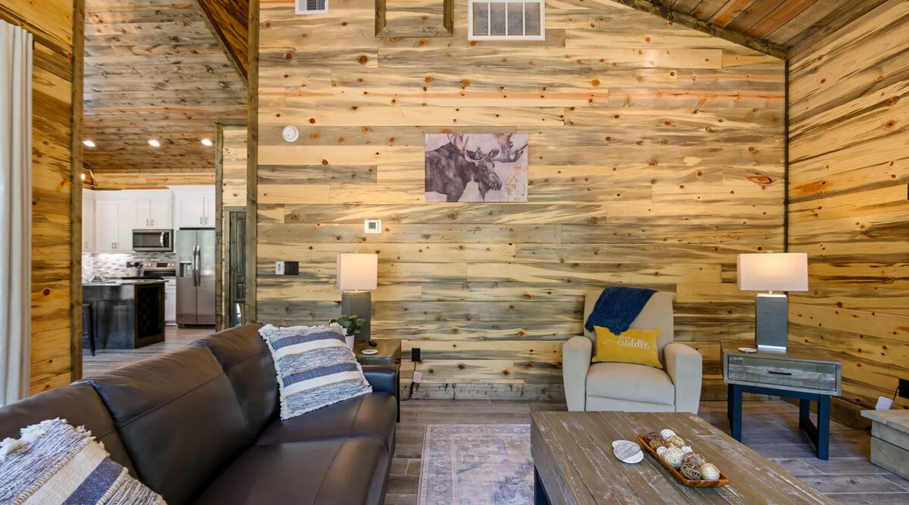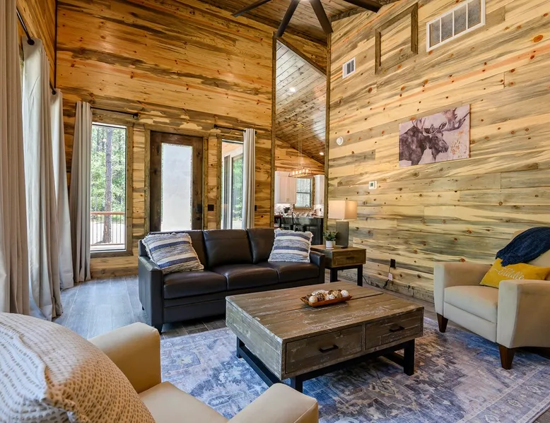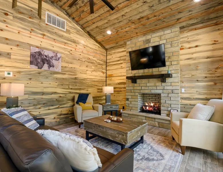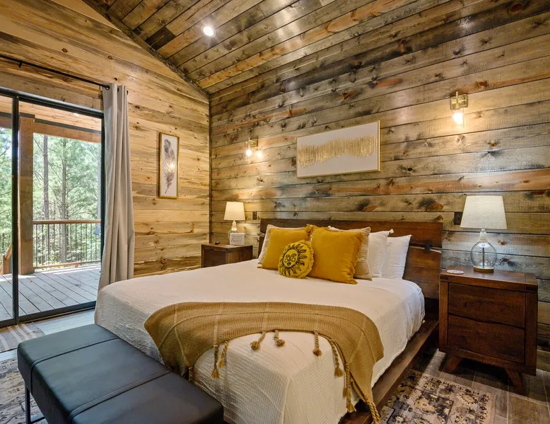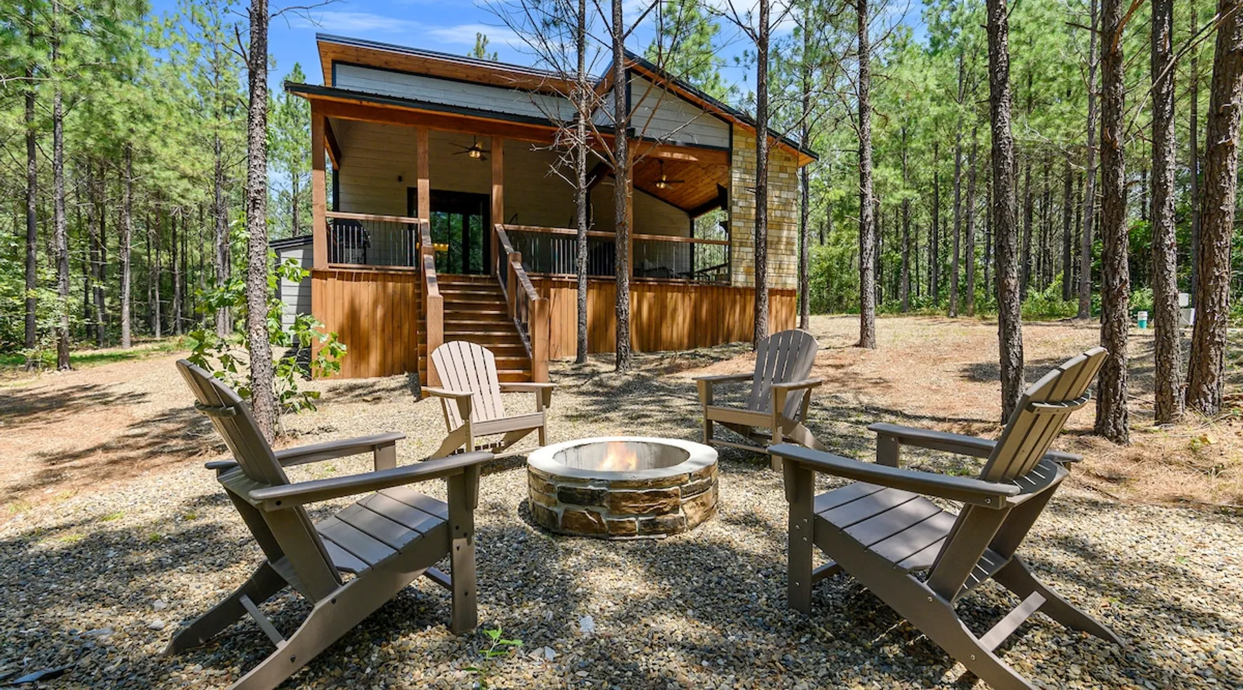 Whole Lotta Love - Bravo Cabin Rentals, LLC Experience a romantic getaway at Bravo Cabin Rentals' Whole Lotta Love cabin in Hochatown, offering a secluded and intimate setting among the towering pine trees. The single-bedroom cabin provides ultimate privacy for you and your loved one to enjoy a peaceful nature retreat. The space The cabin features a full-service kitchen equipped with all the necessary appliances for cooking, along with a dining area bathed in natural light where you can savor your meals together. After dinner, cozy up in the living room with a leather sofa, gas fireplace, and big-screen HDTV for a movie night by the crackling fire. The master bedroom boasts a king-size bed, nightstands, a bench, a closet with hangers, a big-screen HDTV, and direct access to the patio. The ensuite bathroom features double vanity sinks, a large soaker tub, and a walk-in shower with double shower heads for a luxurious experience. Outdoor living spaces include patio furniture for two, a gas fireplace, a big screen HDTV, swinging egg chairs, a gas grill, a hot tub, and a fire pit with seating for four, providing ample opportunities for relaxation and enjoyment during your stay at this charming cabin. General - Full-size washer and dryer available in the laundry closet. An EV outlet is available, but guests will need to provide their own charger. Gas fireplaces are seasonally available (October-May 15th). Any cancellations processed in which a refund is due to the guest will incur a $50 processing fee. The maximum occupancy for this cabin is 2, with no exceptions. Guest access Entire cabin Other things to note It is located near all the best restaurants, activities, and park amenities. It is just a short drive to Broken Bow Lake, Beavers Bend State Park, popular hiking trails, restaurants, breweries, wineries, and downtown Hochatown, and access to all the outdoors activities you want – boating, hiking, fly-fishing, kayaking, zip-lining, ATV trails, horseback riding, Cedar Creek Golf Course, Choctaw Landing Casino, mini-golf, helicopter rides, mining for gold, train rides, go-carts, and a great petting zoo. Don’t forget these items when you come to visit: • Rain gear and light jackets (Our average rainfall is 55″-60″ each year). • We have beautiful scenic trails; good hiking boots are a must. • Water shoes for our vast shorelines and streams. • Insect repellent, sunblock, and other first-aid supplies. • Coffee and filters – enjoy this while sitting on the deck in the early morning. • Condiments --A starter supply of coffee/filters, salt/pepper, paper towels, toilet paper, bath soap, dish soap, dishwasher tablets, trash bags, and laundry soap is provided. Still, guests may need to bring additional supplies. If we are missing something or you have a question we haven't answered, please feel free to reach out to us directly at Bravo Cabin Rentals and we will personally respond as soon as possible. We look forward to making your next vacation in Broken Bow/Hochatown one you won’t forget!