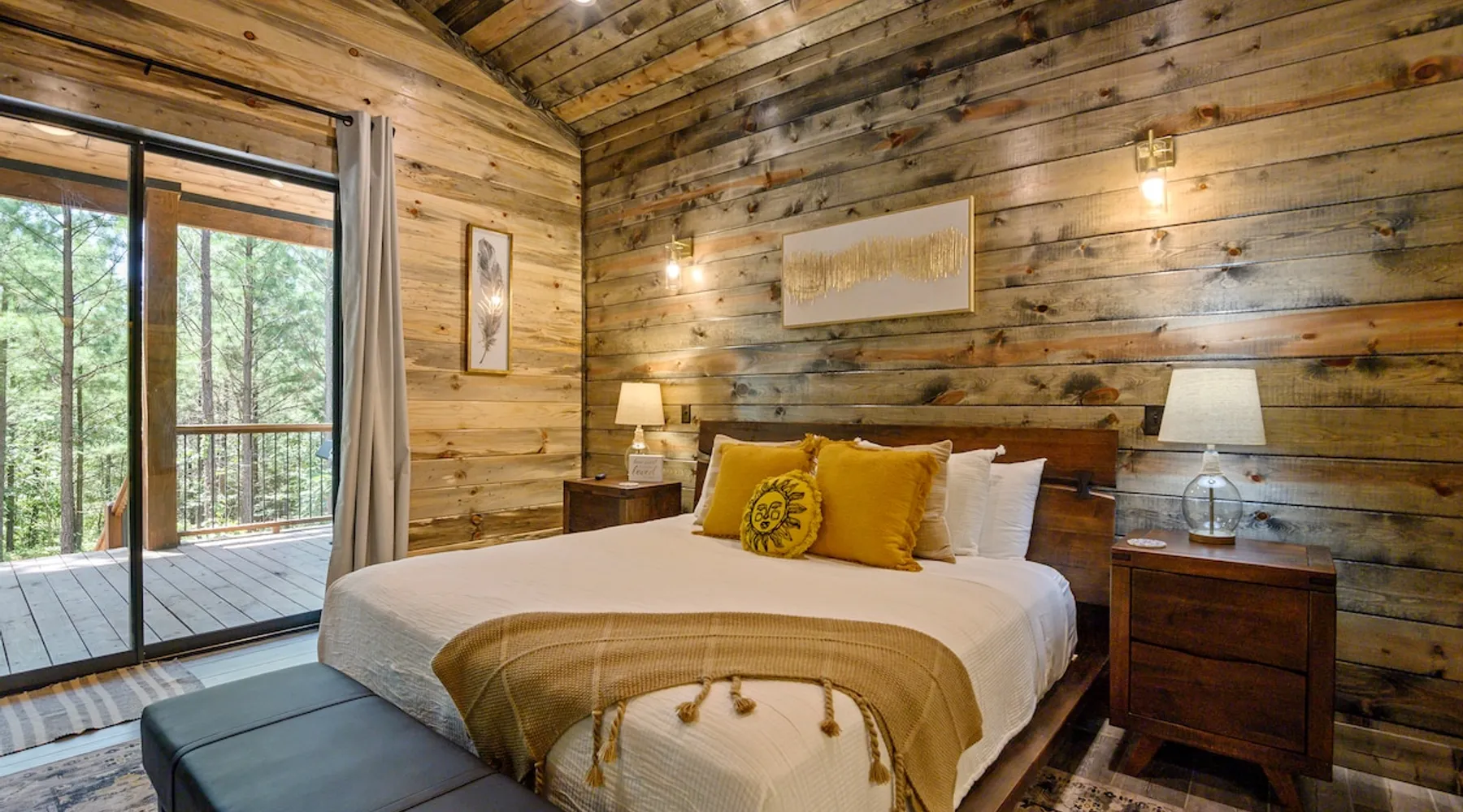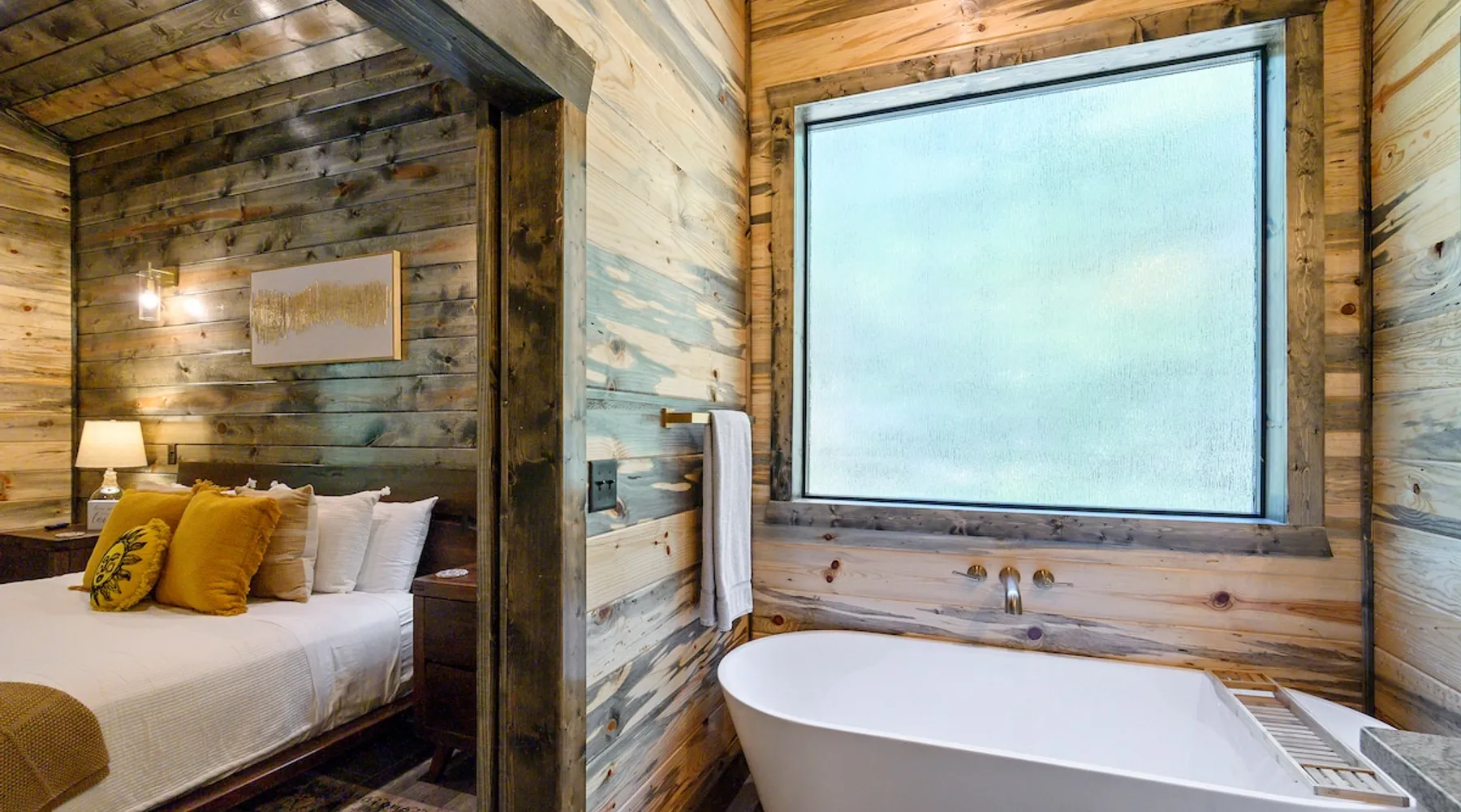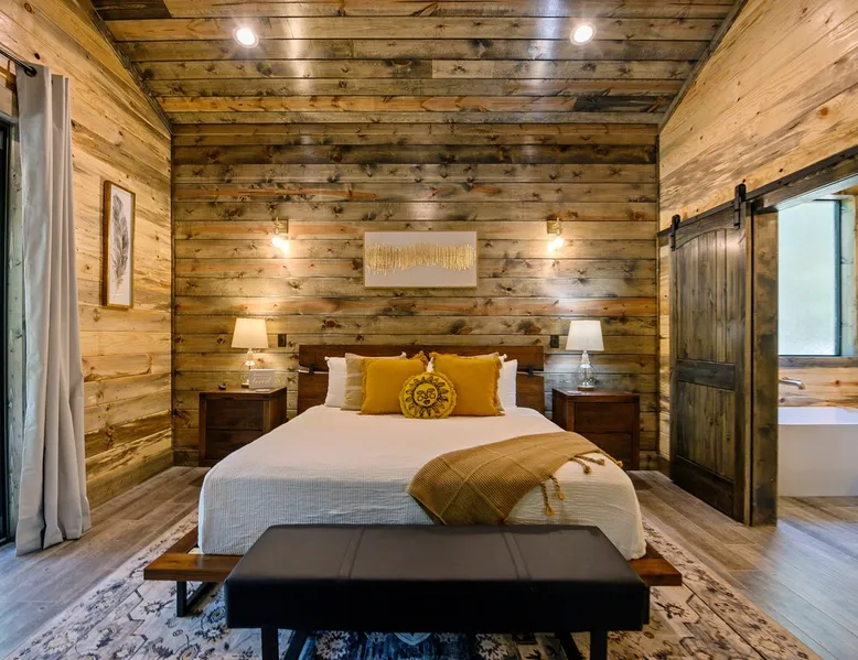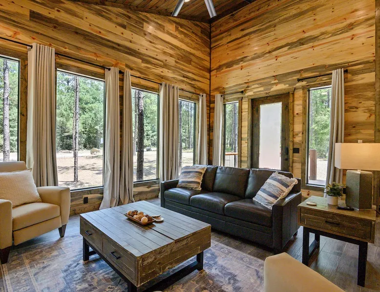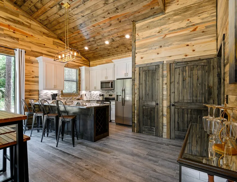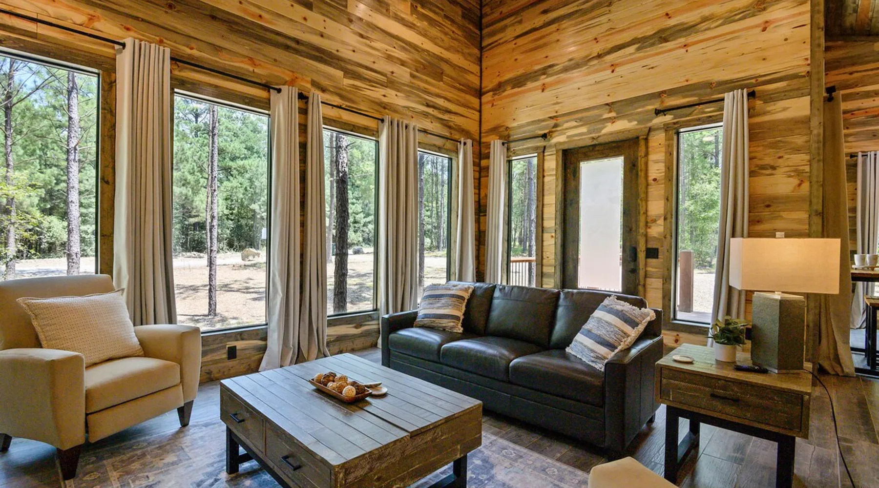 Whole Lotta Love - Bravo Cabin Rentals, LLC Experience a romantic getaway at Bravo Cabin Rentals' Whole Lotta Love cabin in Hochatown, offering a secluded and intimate setting among the towering pine trees. The single-bedroom cabin provides ultimate privacy for you and your loved one to enjoy a peaceful nature retreat. The space The cabin features a full-service kitchen equipped with all the necessary appliances for cooking, along with a dining area bathed in natural light where you can savor your meals together. After dinner, cozy up in the living room with a leather sofa, gas fireplace, and big-screen HDTV for a movie night by the crackling fire. The master bedroom boasts a king-size bed, nightstands, a bench, a closet with hangers, a big-screen HDTV, and direct access to the patio. The ensuite bathroom features double vanity sinks, a large soaker tub, and a walk-in shower with double shower heads for a luxurious experience. Outdoor living spaces include patio furniture for two, a gas fireplace, a big screen HDTV, swinging egg chairs, a gas grill, a hot tub, and a fire pit with seating for four, providing ample opportunities for relaxation and enjoyment during your stay at this charming cabin. General - Full-size washer and dryer available in the laundry closet. An EV outlet is available, but guests will need to provide their own charger. Gas fireplaces are seasonally available (October-May 15th). Any cancellations processed in which a refund is due to the guest will incur a $50 processing fee. The maximum occupancy for this cabin is 2, with no exceptions. Guest access Entire cabin Other things to note It is located near all the best restaurants, activities, and park amenities. It is just a short drive to Broken Bow Lake, Beavers Bend State Park, popular hiking trails, restaurants, breweries, wineries, and downtown Hochatown, and access to all the outdoors activities you want – boating, hiking, fly-fishing, kayaking, zip-lining, ATV trails, horseback riding, Cedar Creek Golf Course, Choctaw Landing Casino, mini-golf, helicopter rides, mining for gold, train rides, go-carts, and a great petting zoo. Don’t forget these items when you come to visit: • Rain gear and light jackets (Our average rainfall is 55″-60″ each year). • We have beautiful scenic trails; good hiking boots are a must. • Water shoes for our vast shorelines and streams. • Insect repellent, sunblock, and other first-aid supplies. • Coffee and filters – enjoy this while sitting on the deck in the early morning. • Condiments --A starter supply of coffee/filters, salt/pepper, paper towels, toilet paper, bath soap, dish soap, dishwasher tablets, trash bags, and laundry soap is provided. Still, guests may need to bring additional supplies. If we are missing something or you have a question we haven't answered, please feel free to reach out to us directly at Bravo Cabin Rentals and we will personally respond as soon as possible. We look forward to making your next vacation in Broken Bow/Hochatown one you won’t forget!